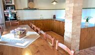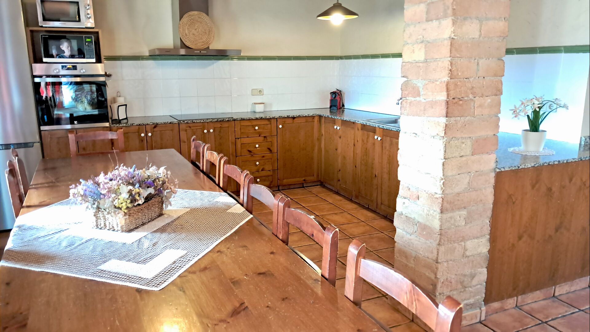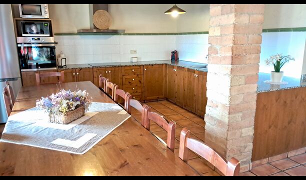La cocina es grande, abierta y bien equipada y se conecta con la larga y hermosa mesa de comedor de madera. Desde aquí, hay vistas del impresionante valle. La cocina tiene, entre otros, nevera y congelador, horno, microondas, cafetera y lavadora.