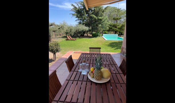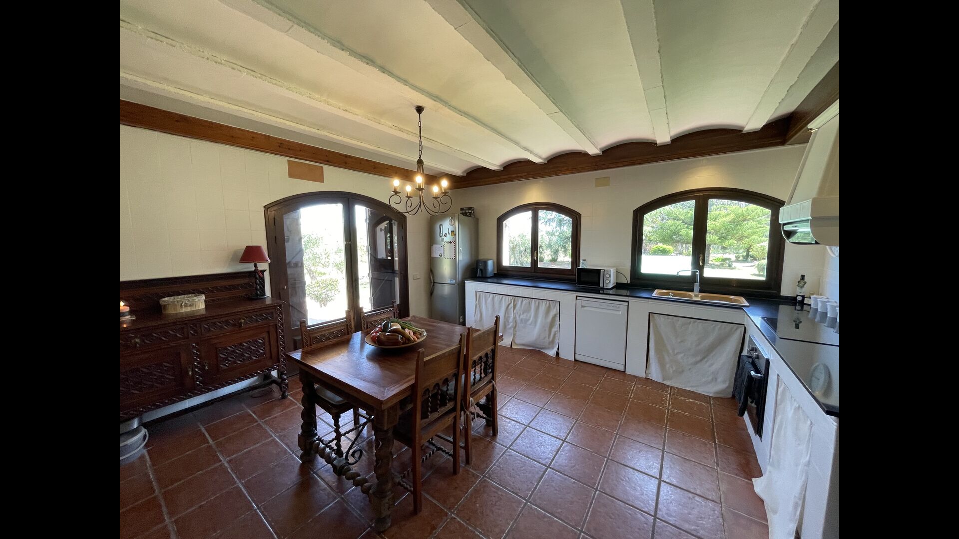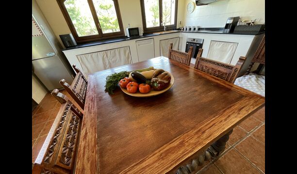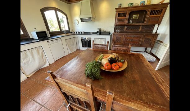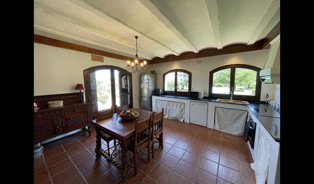 Esta clásica casa catalana de piedra caliza está bellamente decorada, conservando la historia de la casa, pero también con un toque moderno. En la planta baja se encuentran todas las instalaciones comunes. Tiene una gran cocina de estilo rústico, que está convenientemente situada, con acceso directo a la terraza cubierta, desde donde se puede ver la piscina.