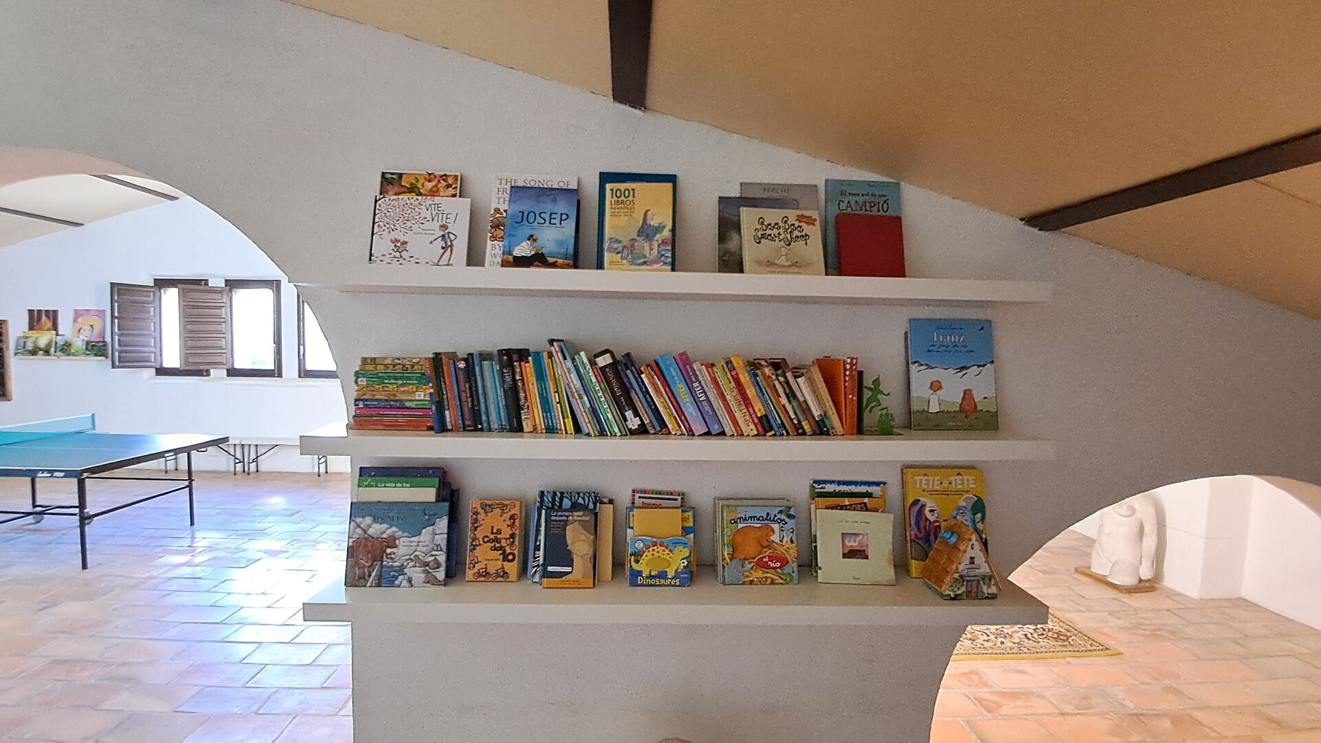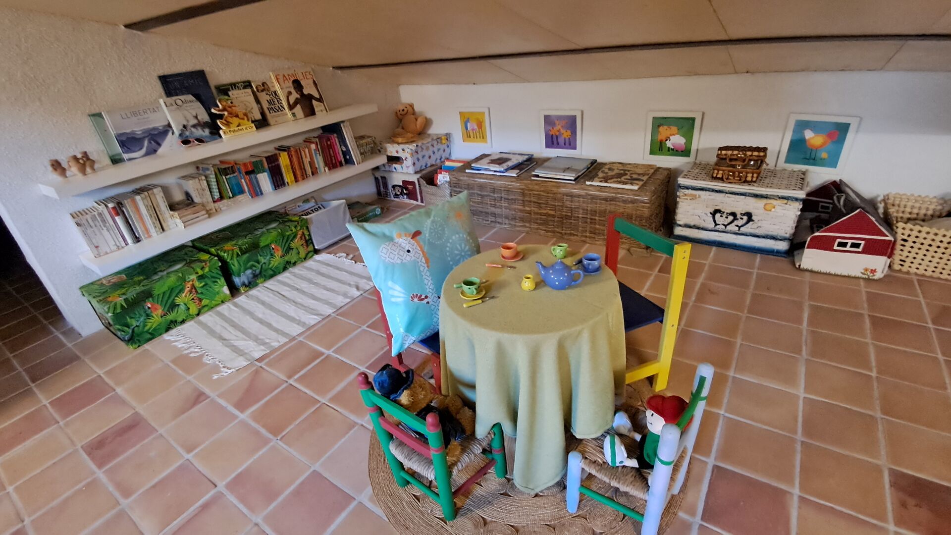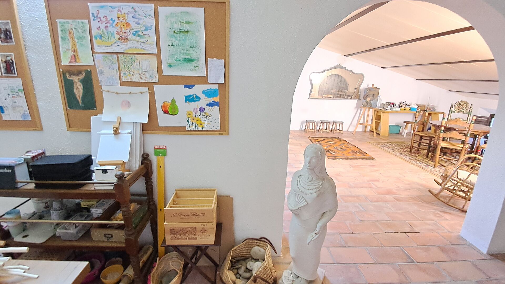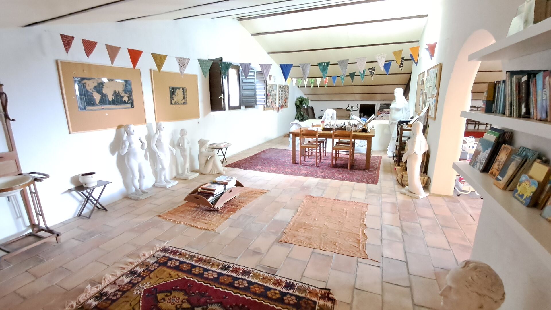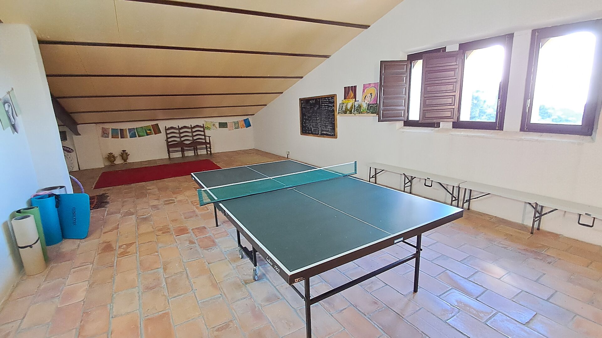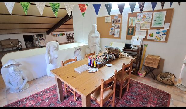Toda la segunda planta, bajo el tejado, está dedicada a ser un espacio creativo para pintar, practicar yoga, jugar al ping-pong o simplemente sentarse en el rincón del futón, tomar una taza de té y charlar. Se pueden usar materiales si se desea.Asegúrese de realizar un pago correspondiente a los materiales utilizados.