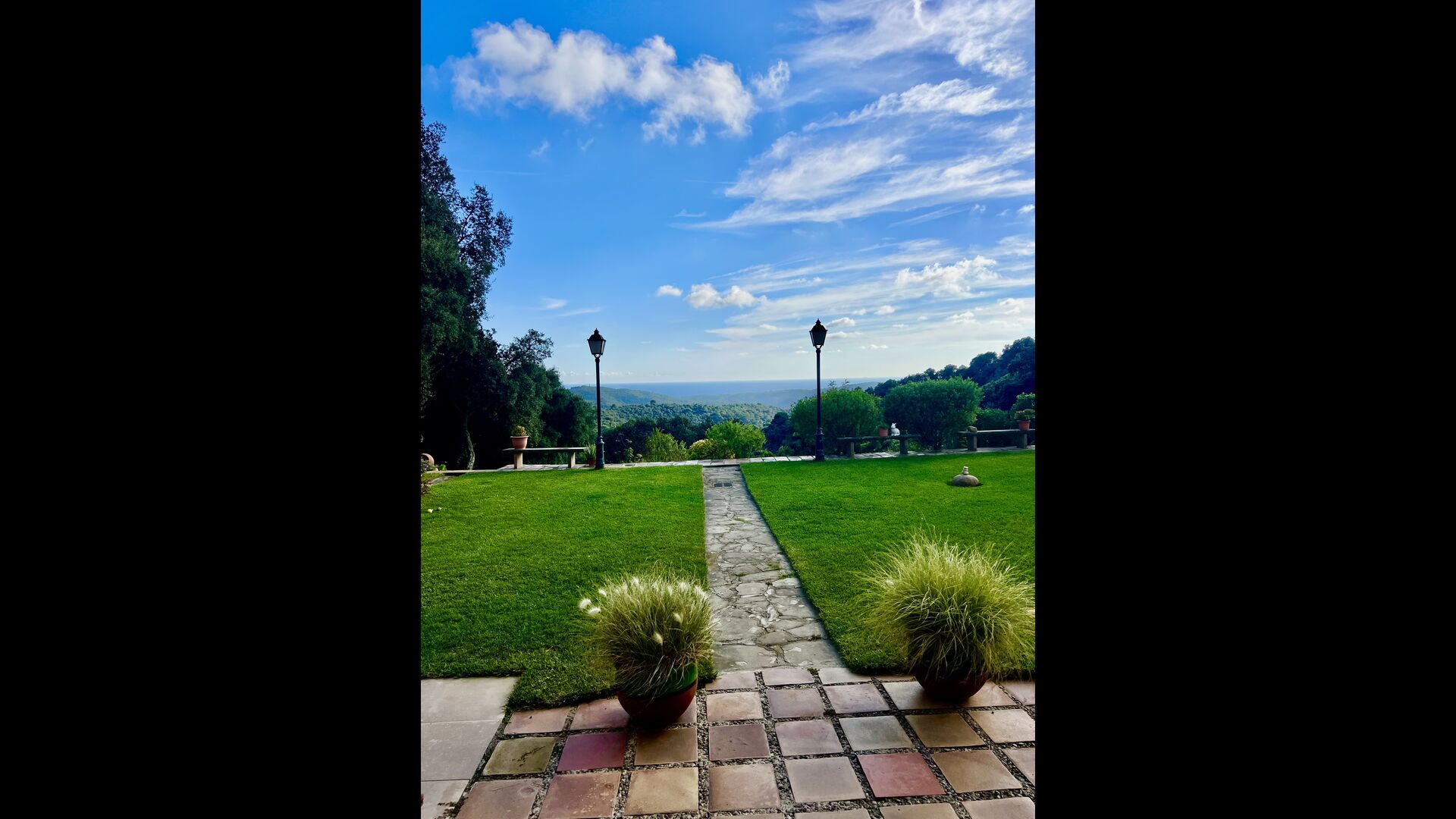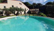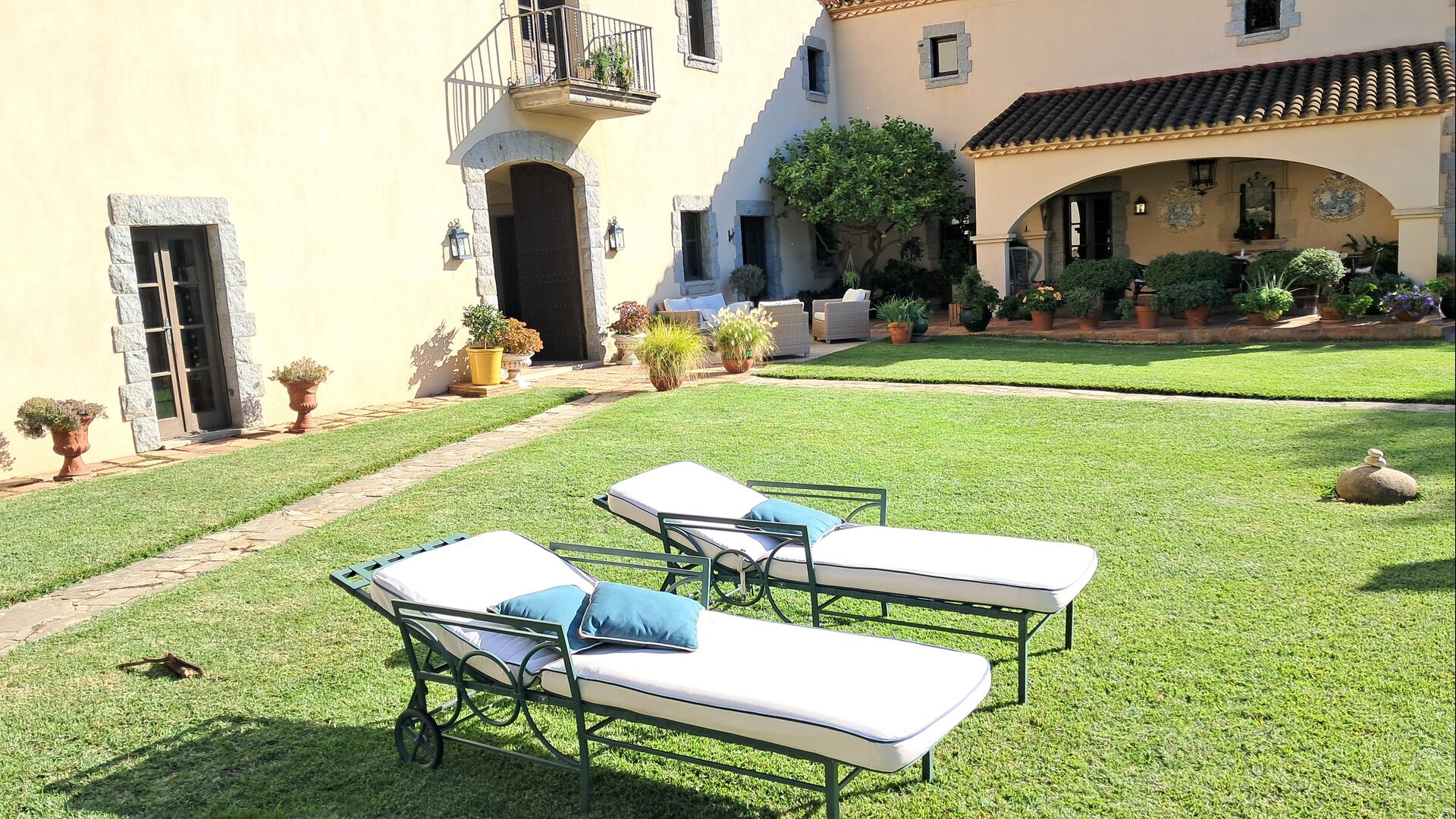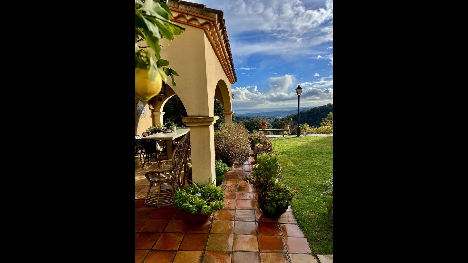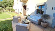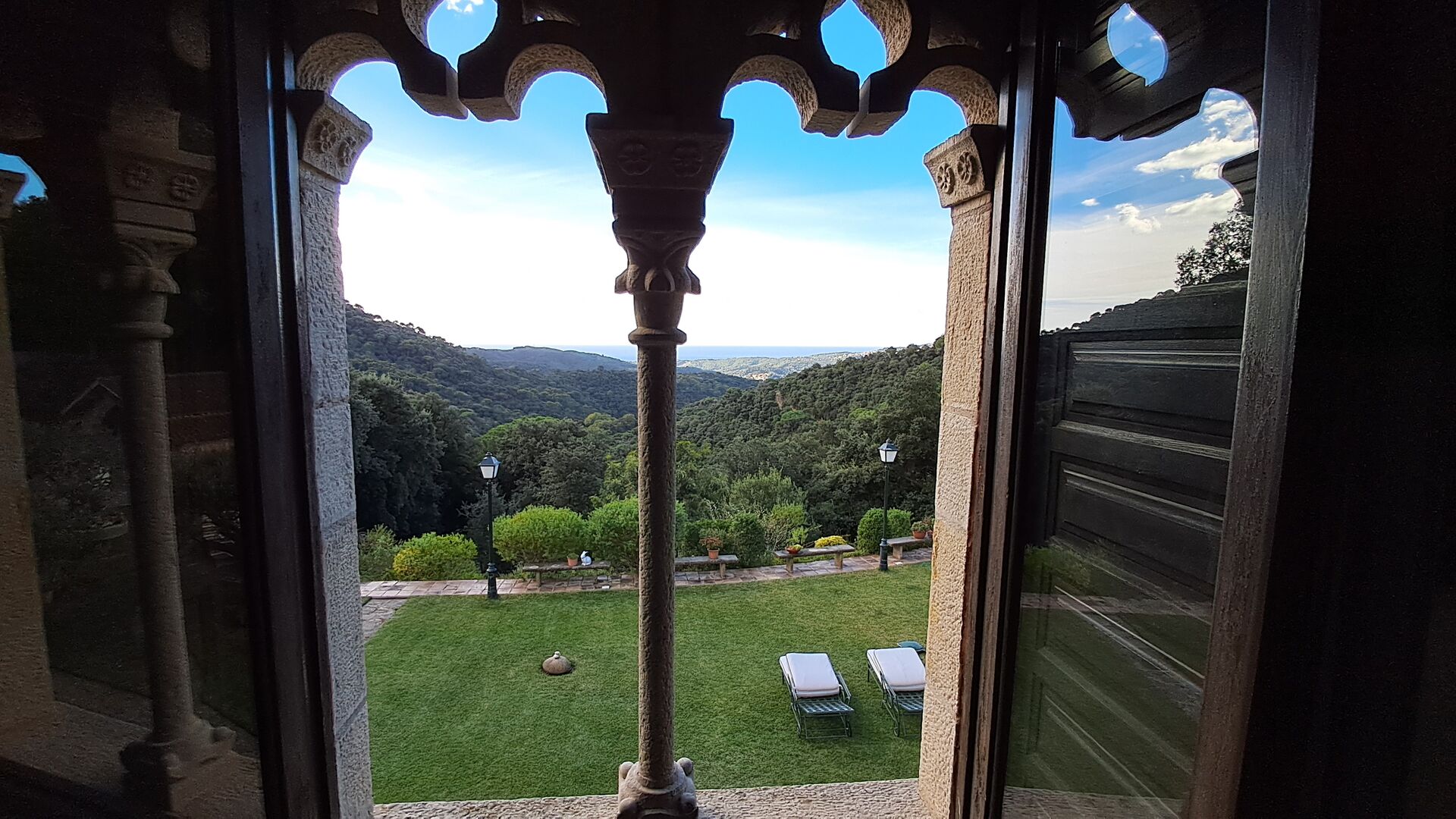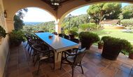 En el exterior, el césped con tumbonas, la terraza y el rincón con sofá junto a la piscina, lo convierten en un lugar fantástico, sobre todo por las impresionantes vistas al bosque y al mar Mediterráneo.