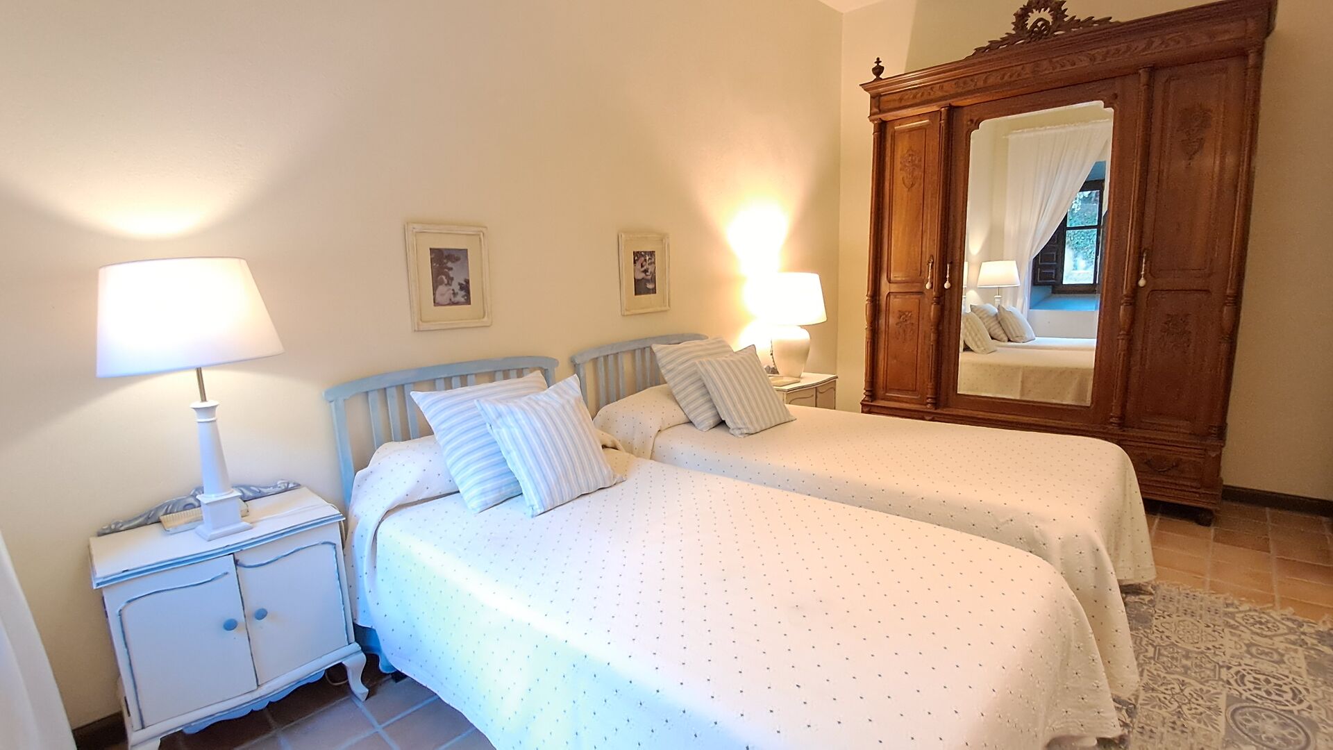 En cuanto a la capacidad, dado que el comedor y la terraza tienen capacidad para 12 personas, y también debido al suministro de agua de la casa, podemos recibir un máximo de 12 personas. Puede utilizar las siete habitaciones como desee; todas están incluidas en el alquiler.