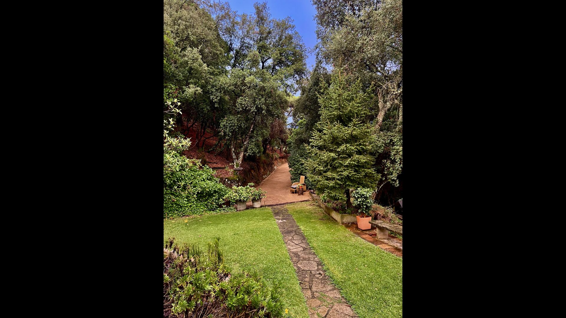 Como se ha descrito, se puede acceder a la casa por carreteras asfaltadas, pero si viene en un coche no muy bajo, puede tomar fácilmente el camino de grava que baja a través del bosque y llegar más rápido al mar y a la autopista de Barcelona. Yo lo hice en un Opel Mocca sin ningún problema. Tardará unos 15 minutos. Aquí encontrará un acogedor pueblo costero con una bonita playa, tiendas, cafeterías y restaurantes. También hay una estación de tren, por si prefiere viajar a Barcelona en tren.