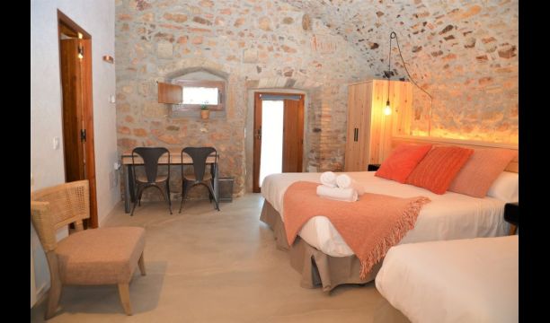 Lo que llamamos castillo fue originalmente un lugar de relevancia religiosa. El edificio consta de un monasterio franciscano y una iglesia que se remonta a 1690 y fue utilizado activamente por los monjes hasta 1822. Partes del monasterio y la iglesia fueron reconstruidas en el siglo XIX. El edificio bien conservado contiene una increíble cantidad de historia, que también se nota cuando caminas por los terrenos. La casa de vacaciones ahora está decorada con muebles y herramientas modernas. Junto con el exterior antiguo, la casa de vacaciones logra una combinación perfecta de lo antiguo e histórico y lo nuevo y moderno. La gran parte de esto es que obtienes una emocionante experiencia cultural sin perder el acceso a nuevos dispositivos inteligentes como WiFi-Internet. Las habitaciones en La Monastir de Santes han sido especialmente diseñadas por una joven diseñadora.