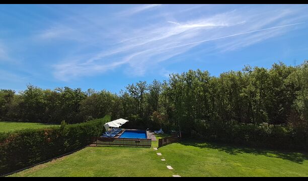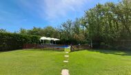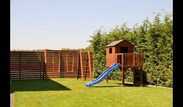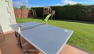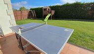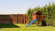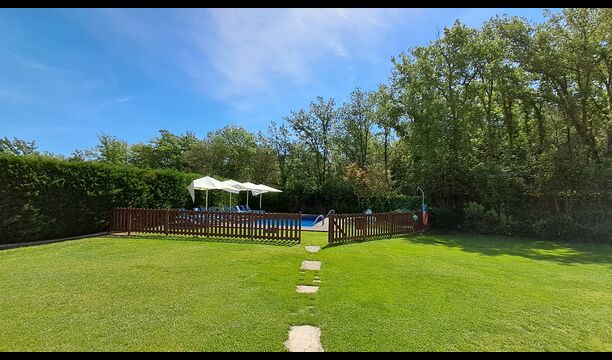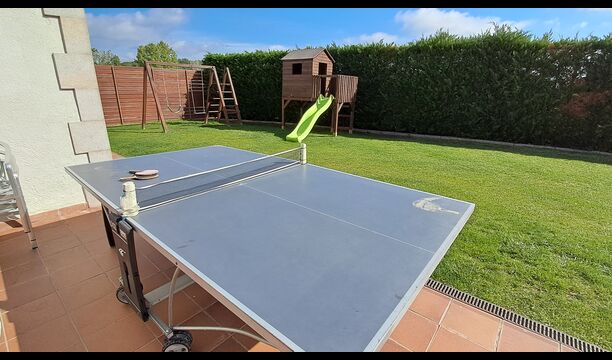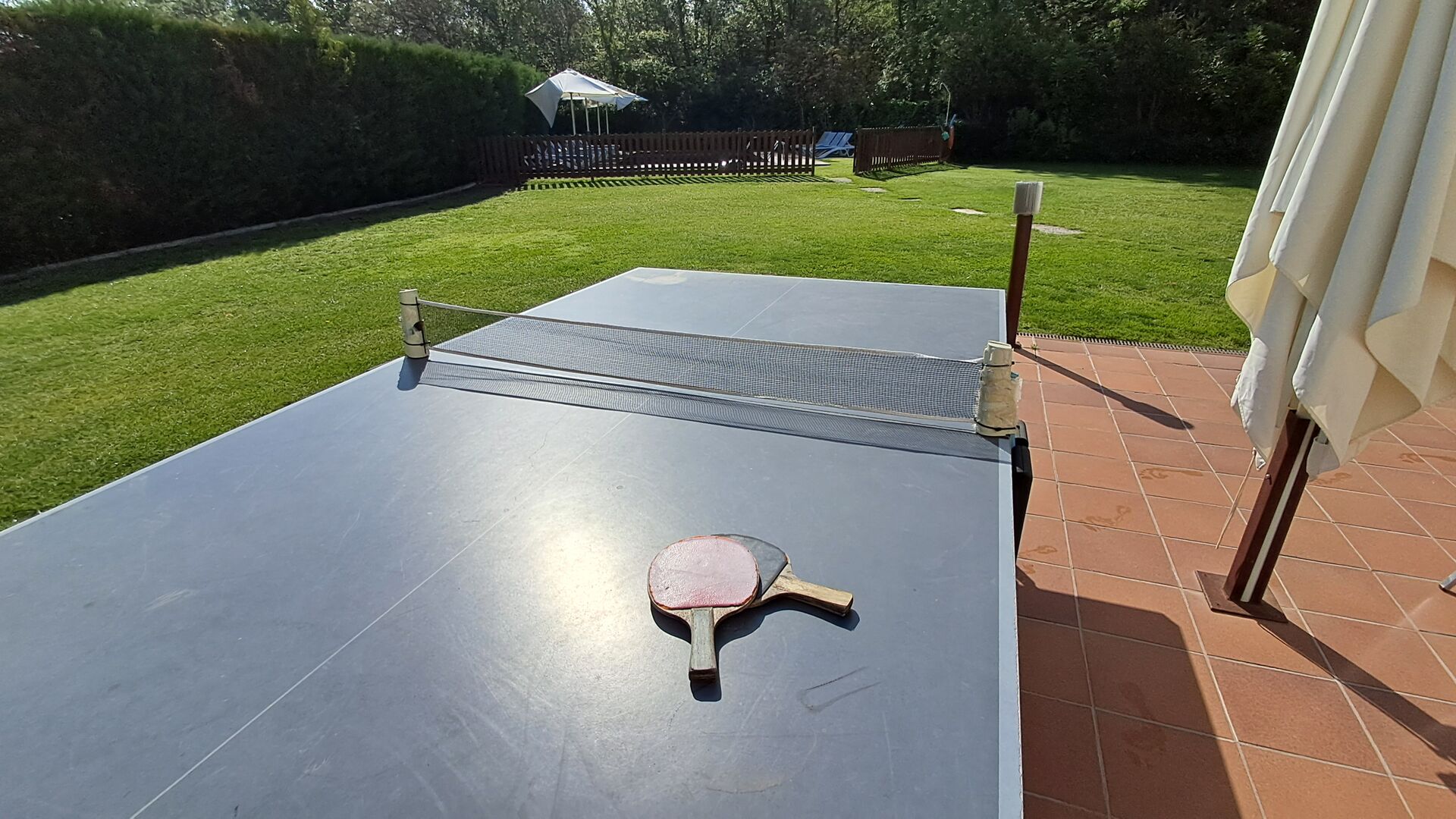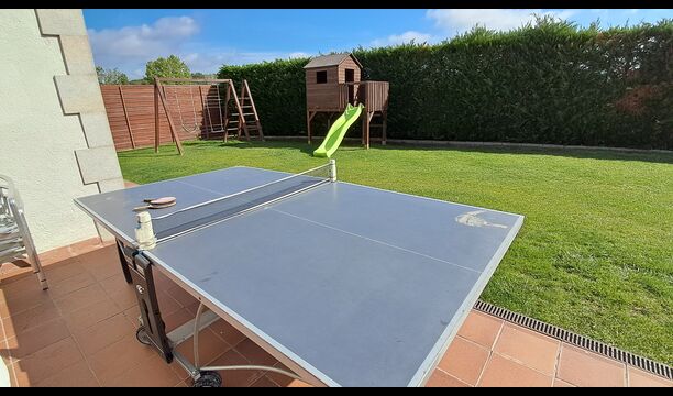 La casa tiene un jardín grande y ordenado y un hermoso césped, con muchas oportunidades para los más jóvenes (y mayores) en el grupo de vacaciones. Hay una maravillosa piscina con un tamaño de 50m2, donde todos pueden relajarse y refrescarse o disfrutar de las tumbonas. Esta área de la piscina está cercada por seguridad, lo que es un alivio si tienes niños muy pequeños contigo de vacaciones. Además, hay tenis de mesa, fútbol y parque infantil. También hay un baño en la planta baja, muy conveniente, cuando estás en el jardín.
