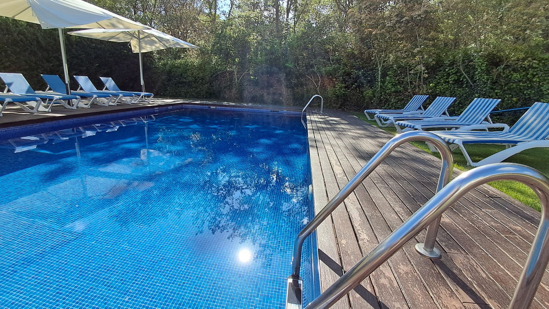 La casa de vacaciones se encuentra al final de un pequeño camino, y a pesar de que hay un solo vecino; Es muy aislado y privado. La mitad del jardín está rodeado de bosque, lo que proporciona un ambiente natural. Además, hay un camino hacia el pueblo más cercano, al que se puede llegar en 10 minutos a pie. Aquí hay tiendas y restaurantes. Además, hay solo 30 minutos en coche a las playas de la Costa Brava.