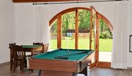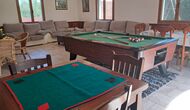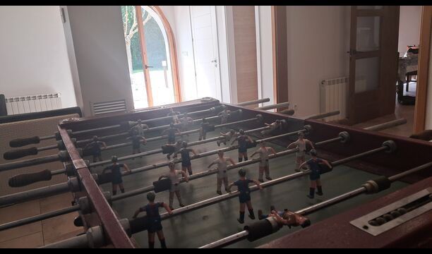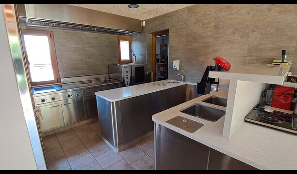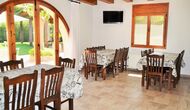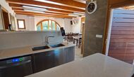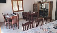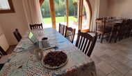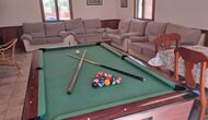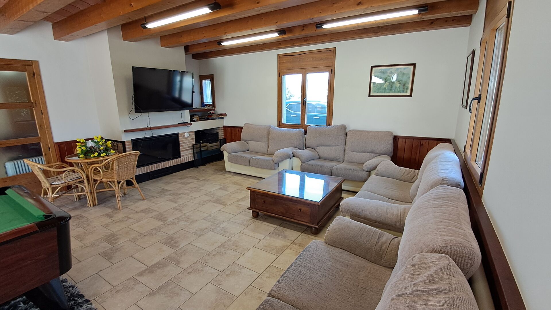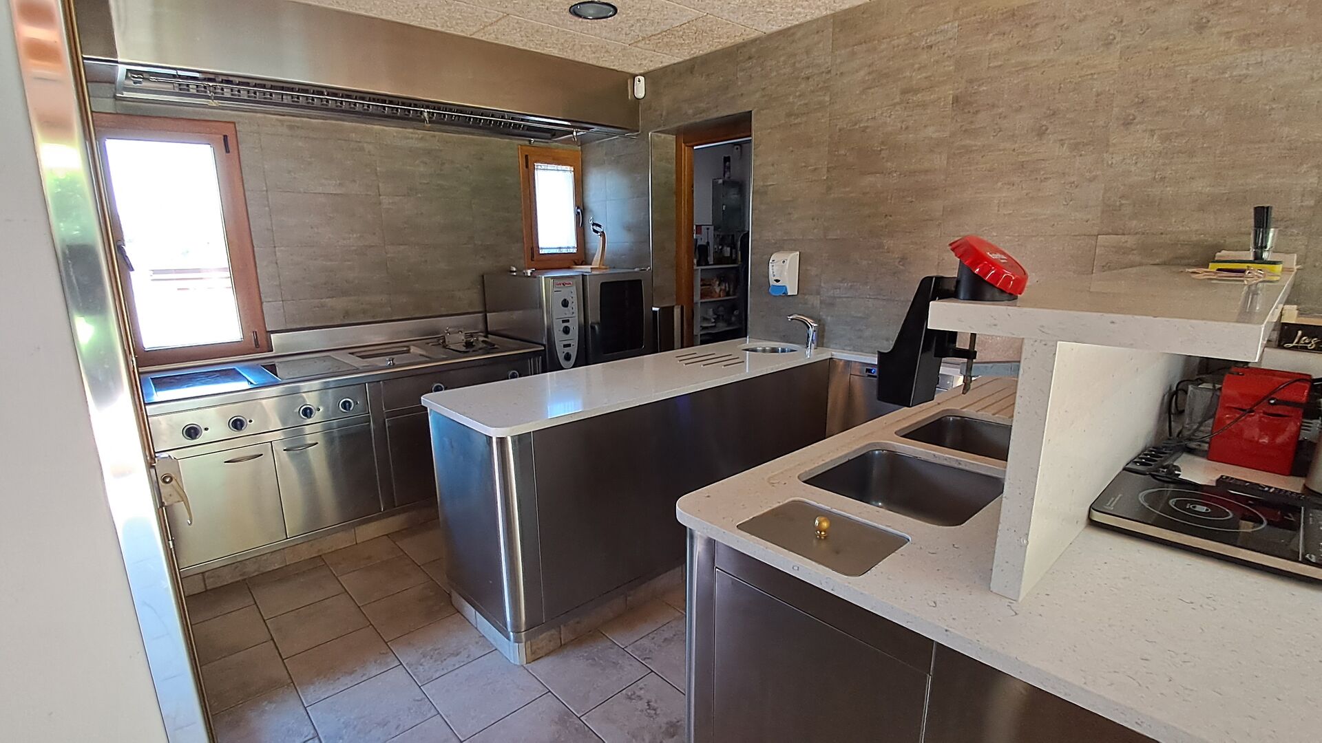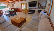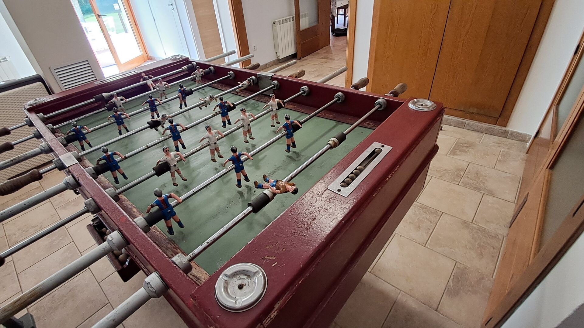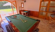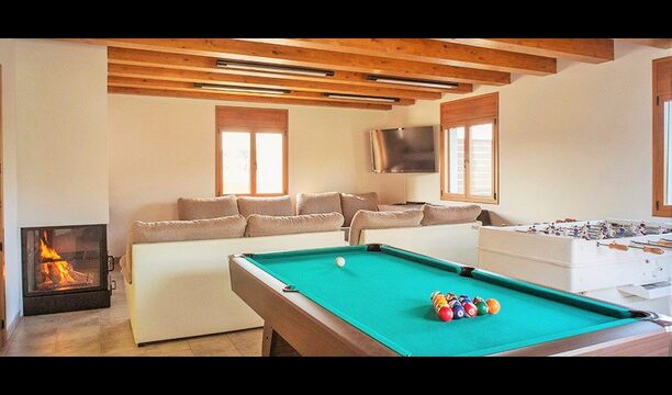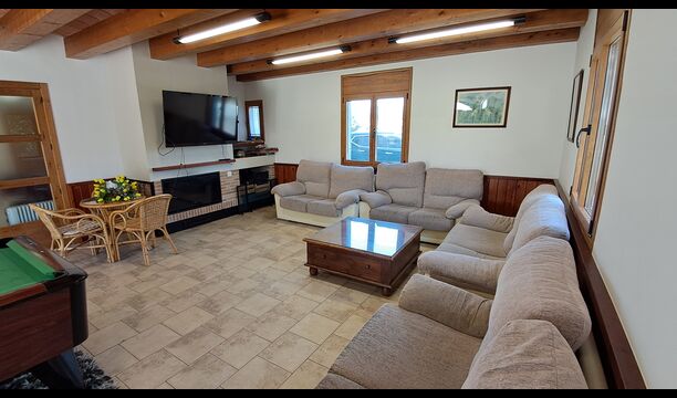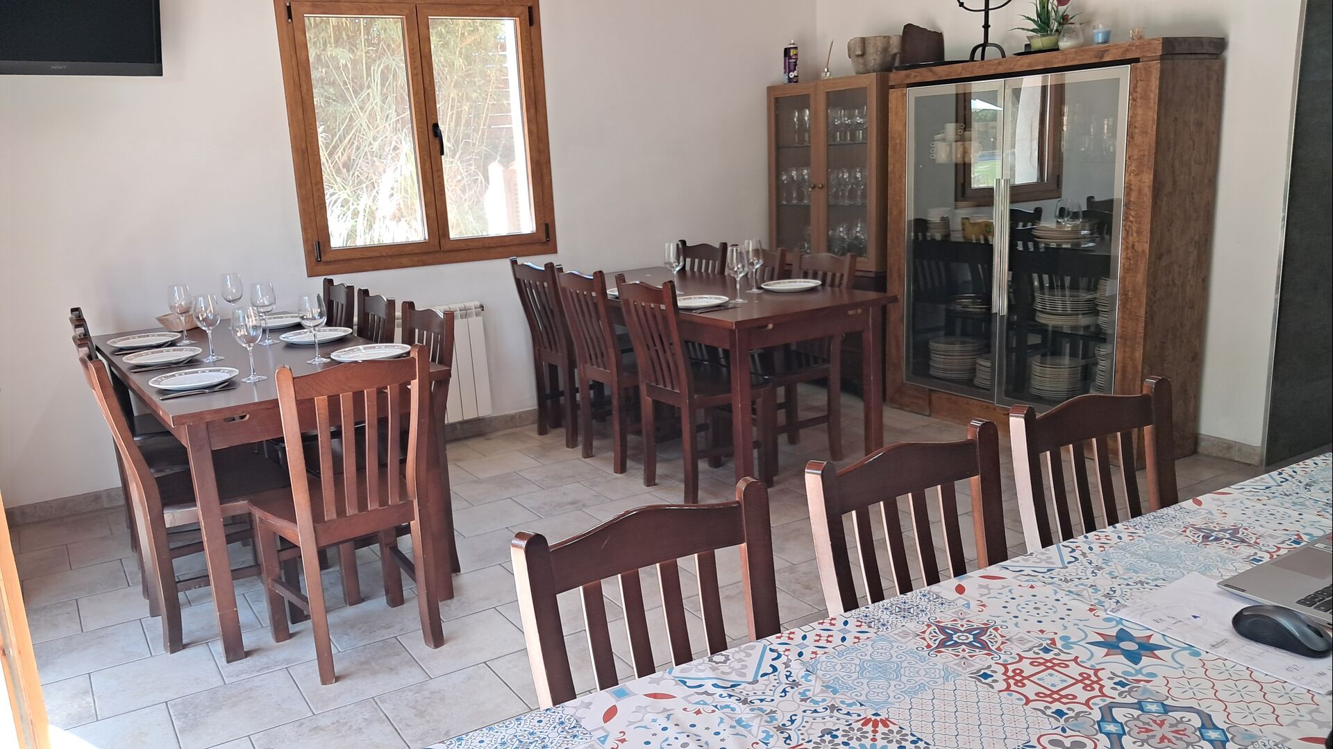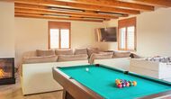 Cuando ingresa a la entrada de la villa de vacaciones, a la izquierda hay una sala de estar. Aquí hay sofás, una mesa de billar, una gran pantalla plana y equipo de música, un excelente lugar para relajarse en el interior. A la derecha, puede ver la cocina muy bien equipada de la casa de vacaciones. Tiene un congelador (que siempre está lleno de aceite fresco para los huéspedes que llegan), microondas, varios refrigeradores, cafetera Nespresso, horno gigante, lavavajillas grande y mucho más. En relación con esto, hay un agradable comedor, y puede acceder al comedor al aire libre, para que pueda disfrutar de las largas y cálidas noches de verano.