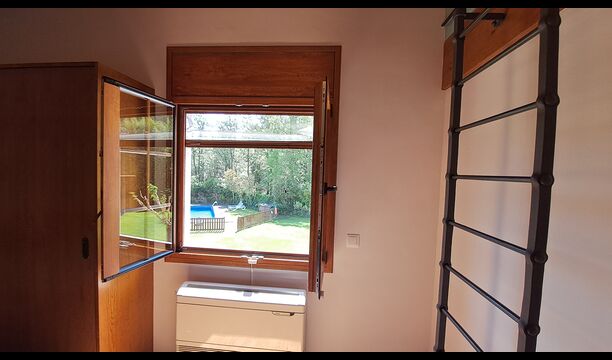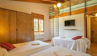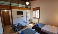 La casa tiene cinco amplias habitaciones, todas con baño privado. Hay tres habitaciones triples, que tienen camas altas bajo el techo (no apto para niños muy pequeños). Las habitaciones están bellamente decoradas con mucho espacio y bonitas vigas de madera en el techo. Además, hay aire acondicionado en cada habitación, por lo que puede decidir libremente el ambiente interior, esto es muy cómodo en los días y noches calurosos.