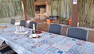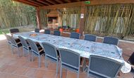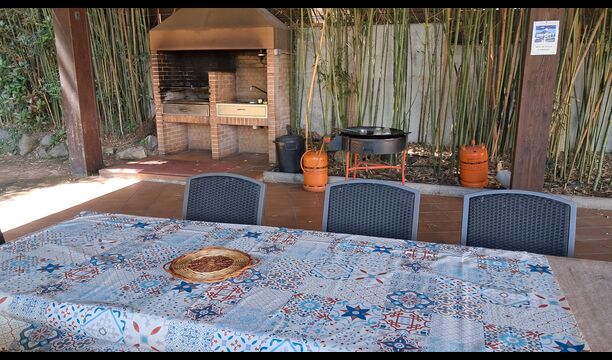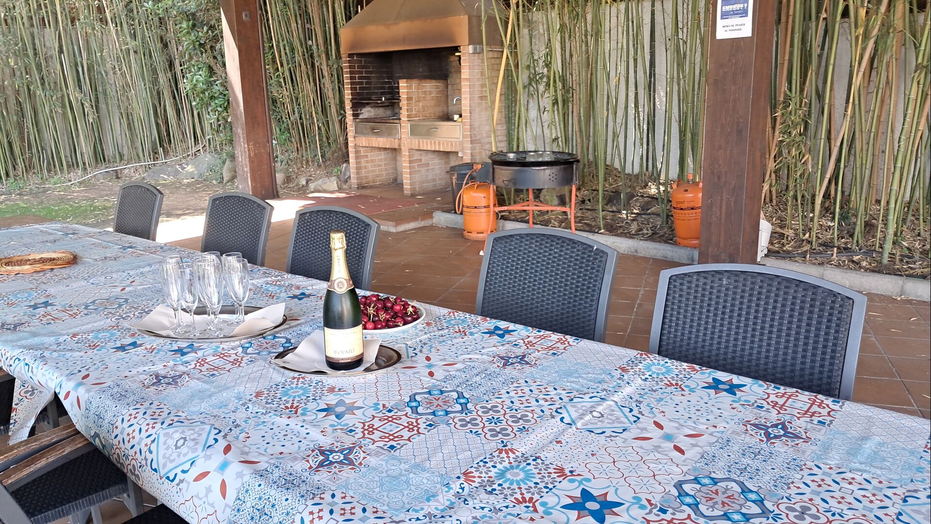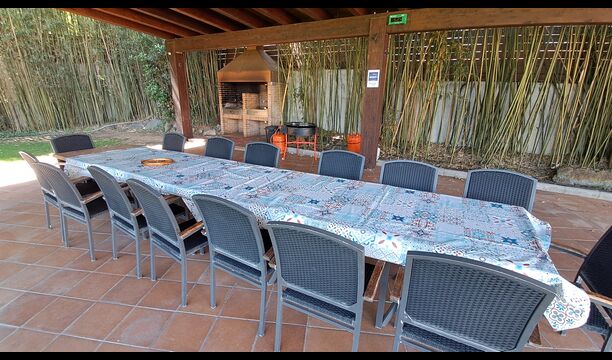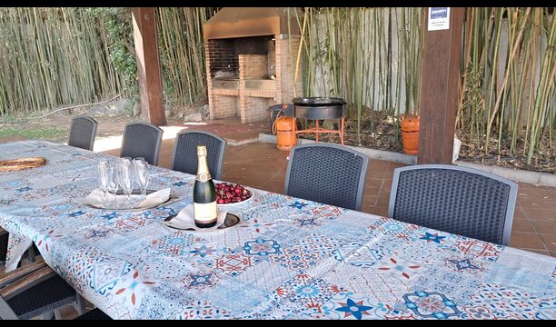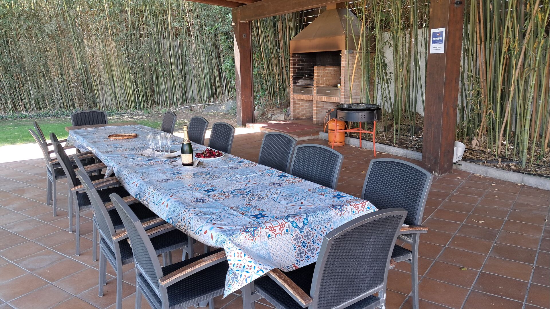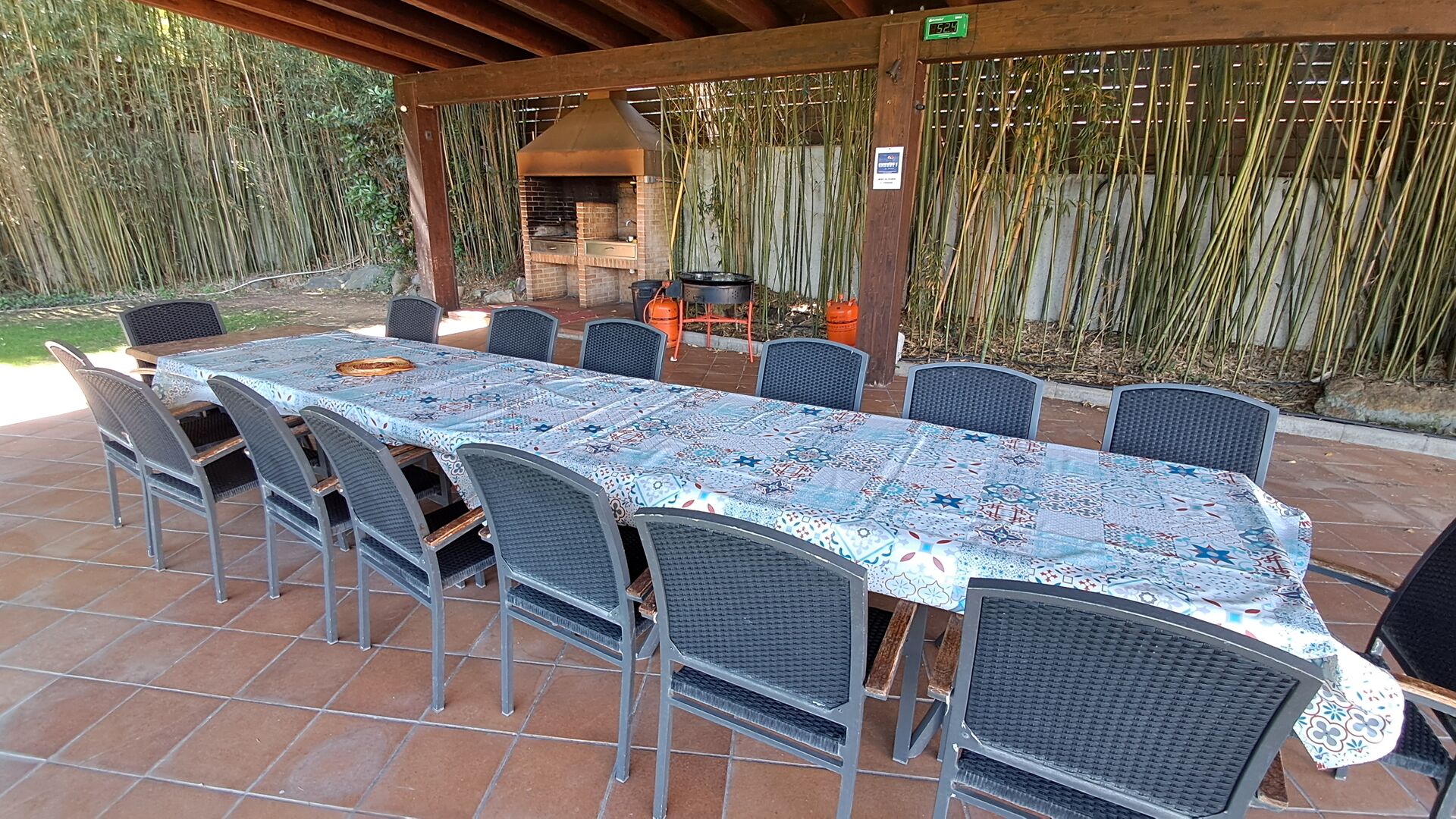 Hay una gran terraza cubierta donde todo el grupo de vacaciones puede sentarse y comer. Además, hay una gran parrilla donde se pueden preparar alimentos.