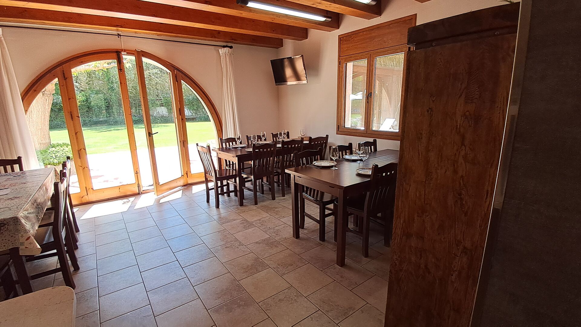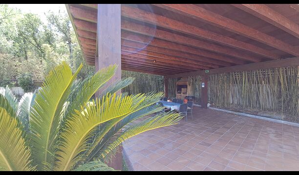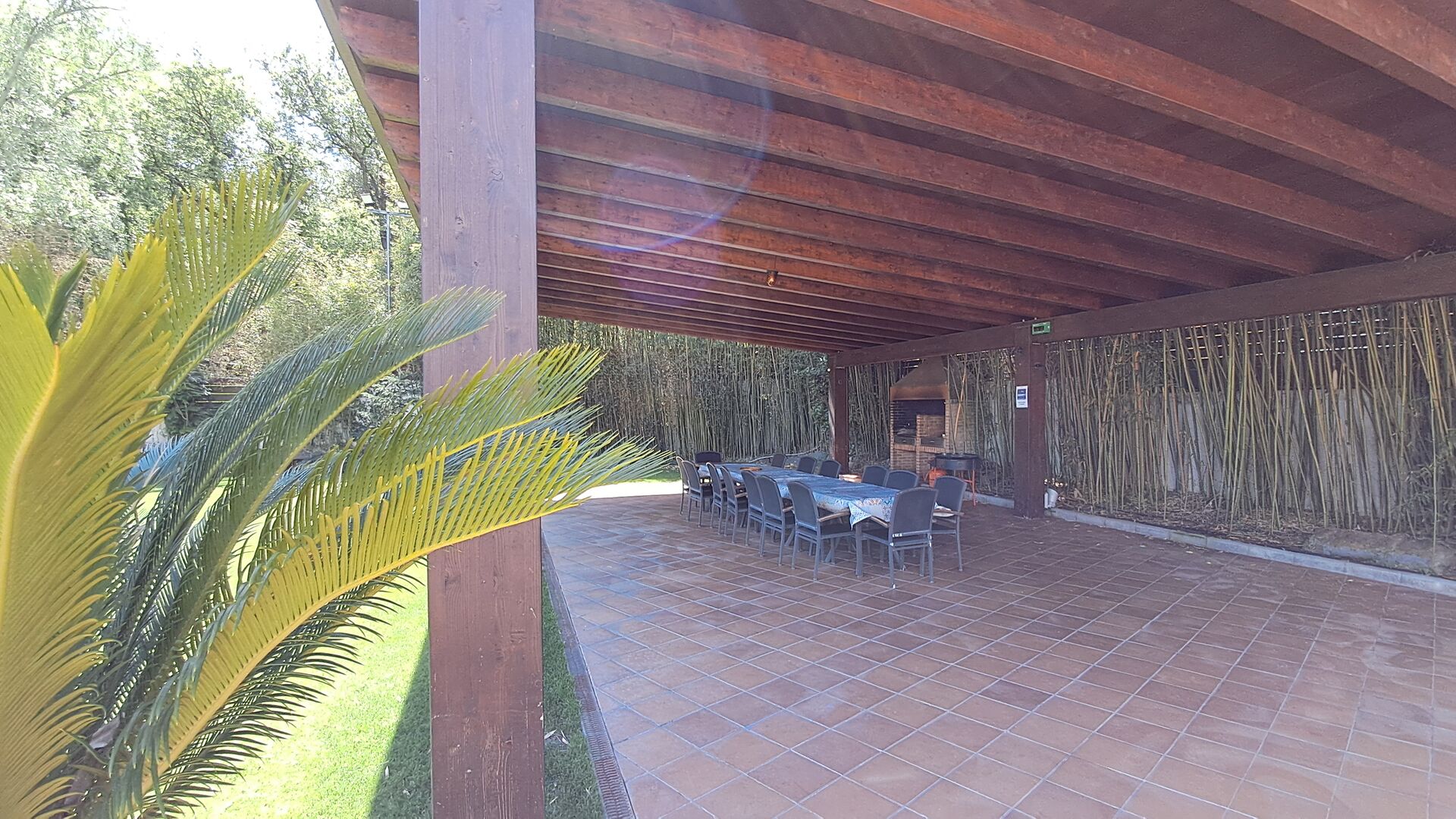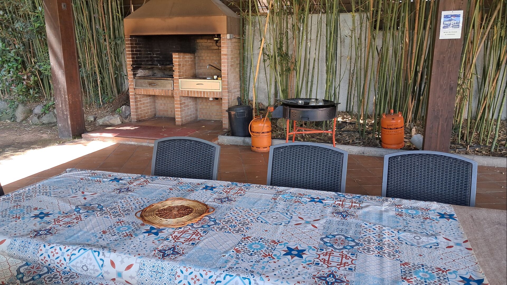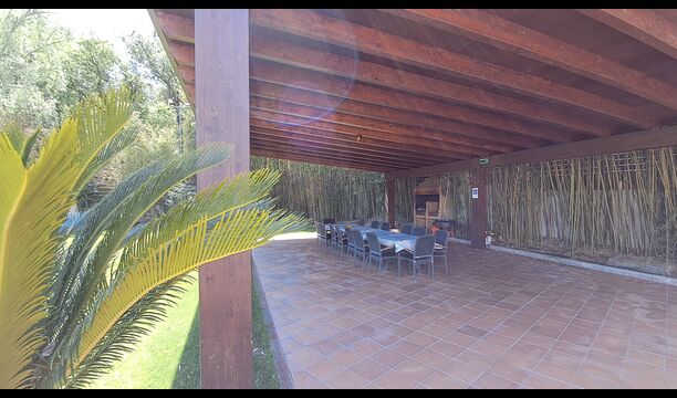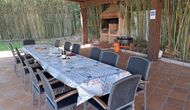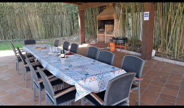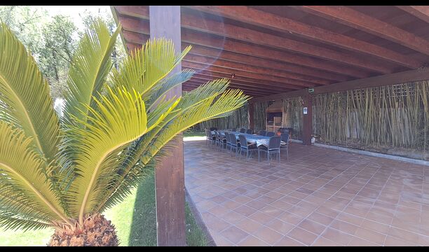 Hay una gran terraza cubierta donde todo el grupo de vacaciones puede sentarse y comer. Además, hay una gran parrilla donde se pueden preparar alimentos.