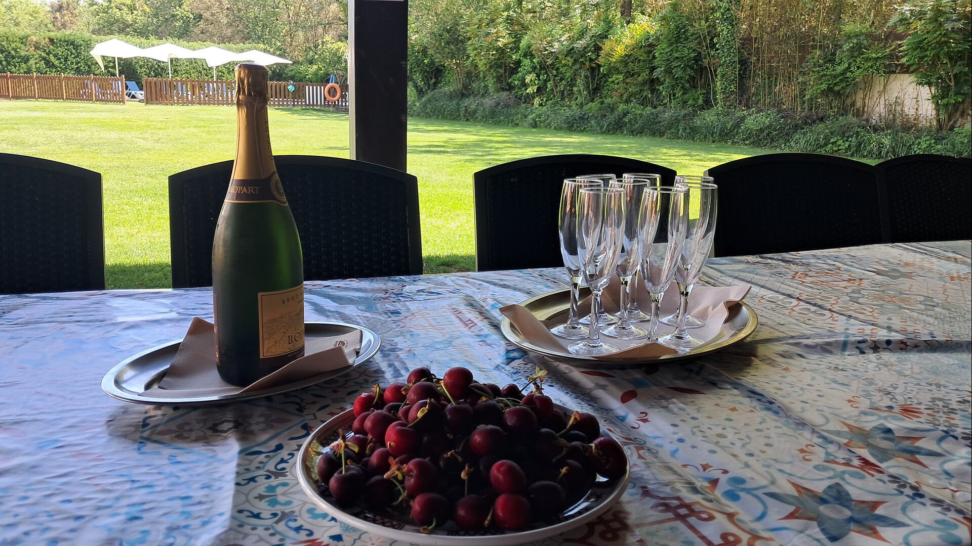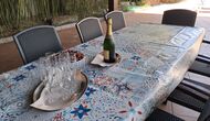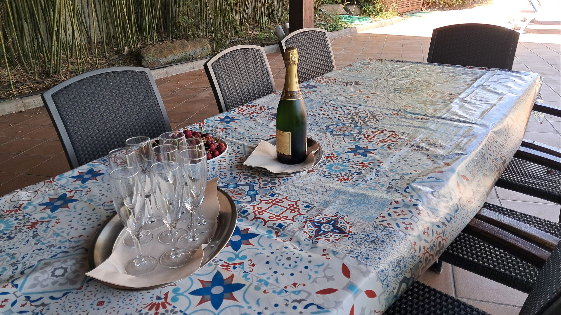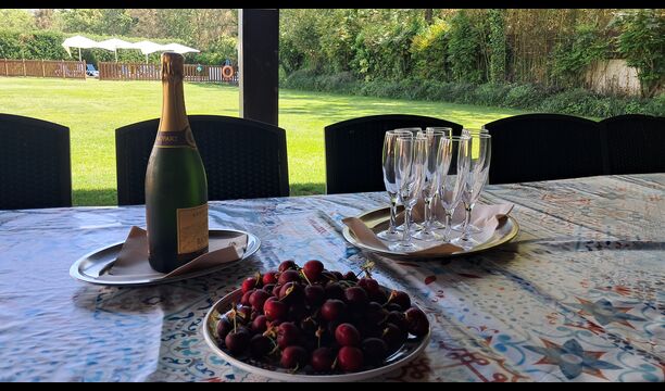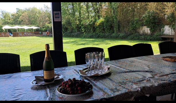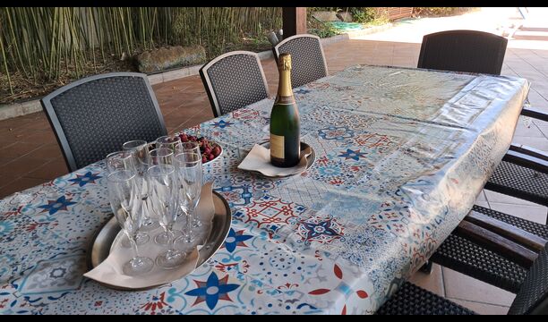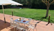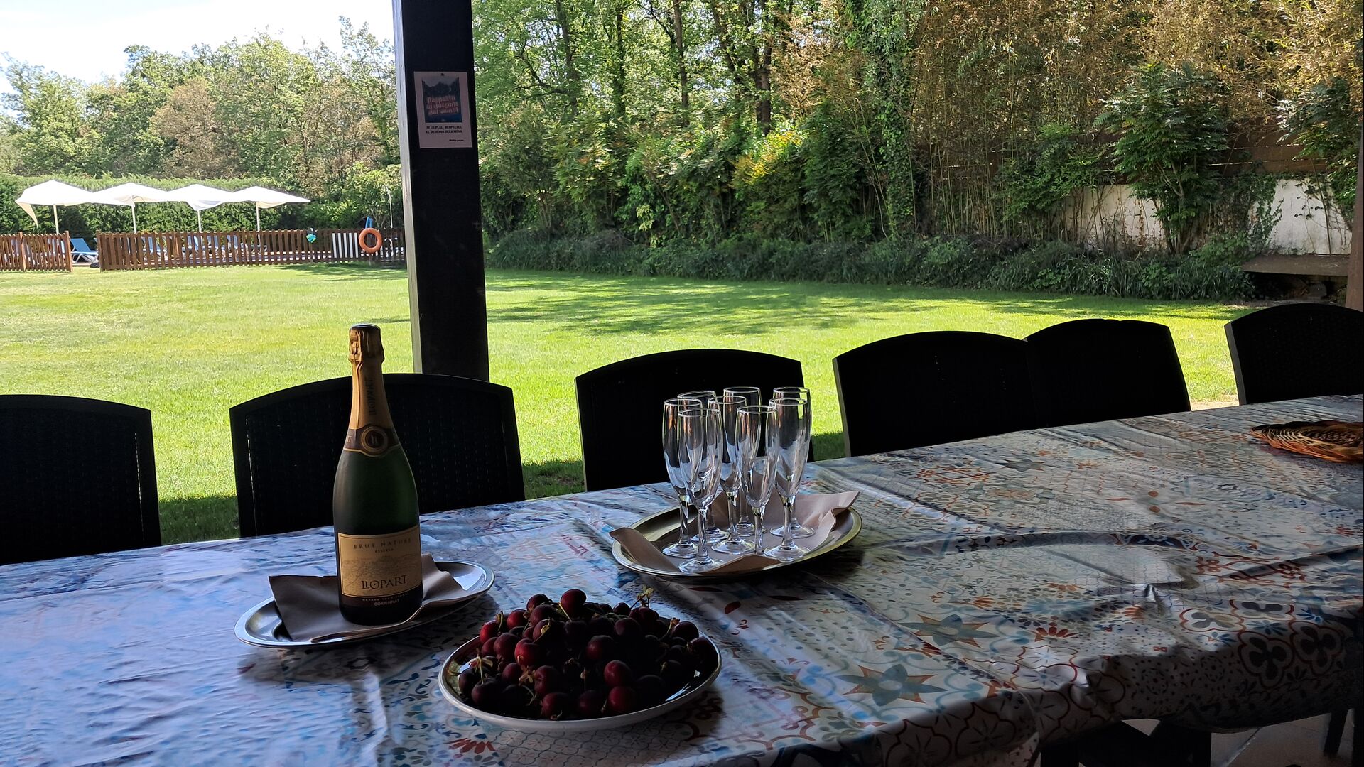 Hay una gran terraza cubierta donde todo el grupo de vacaciones puede sentarse y comer. Además, hay una gran parrilla donde se pueden preparar alimentos.