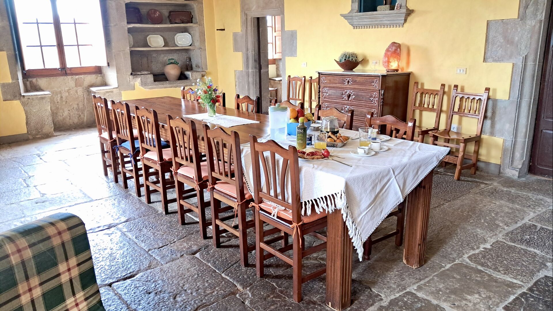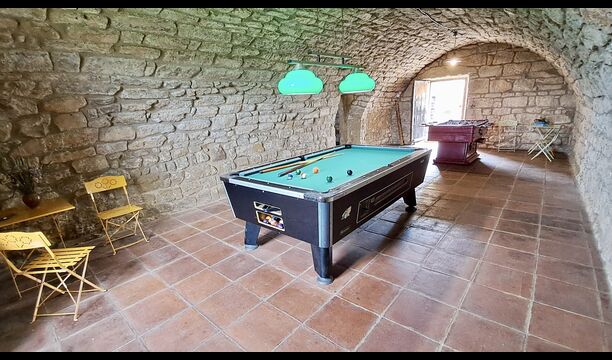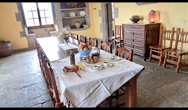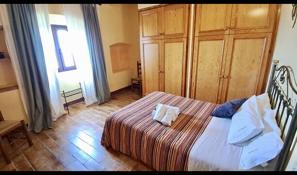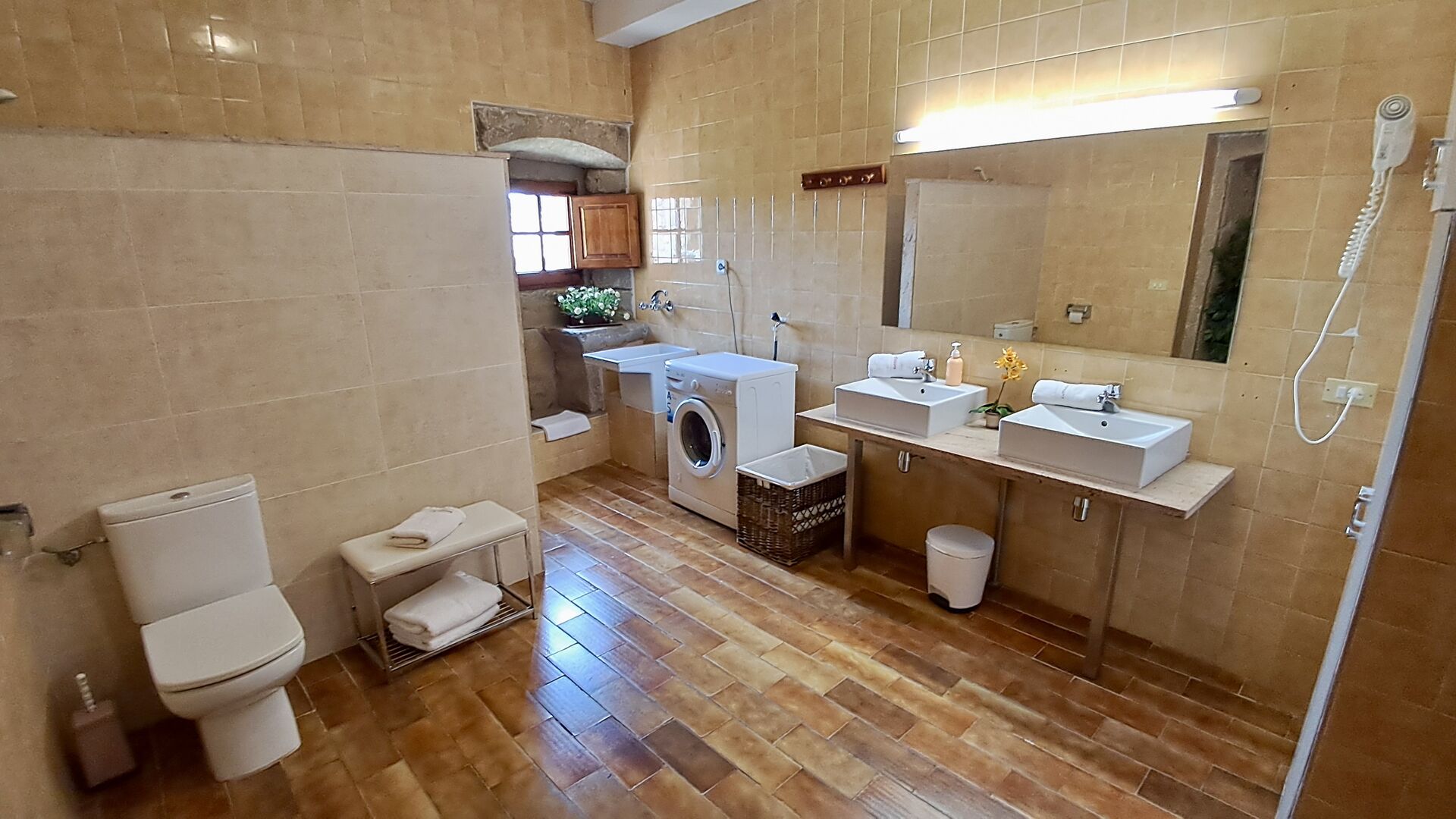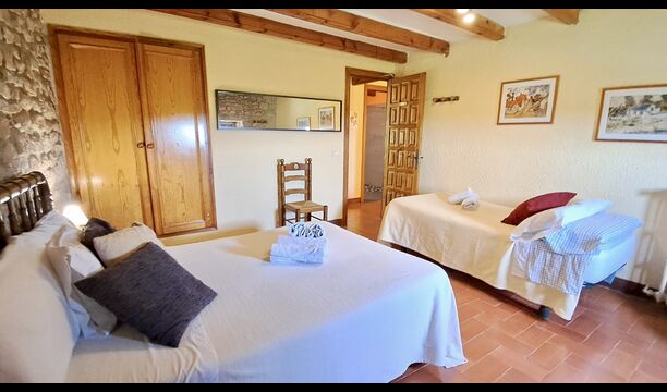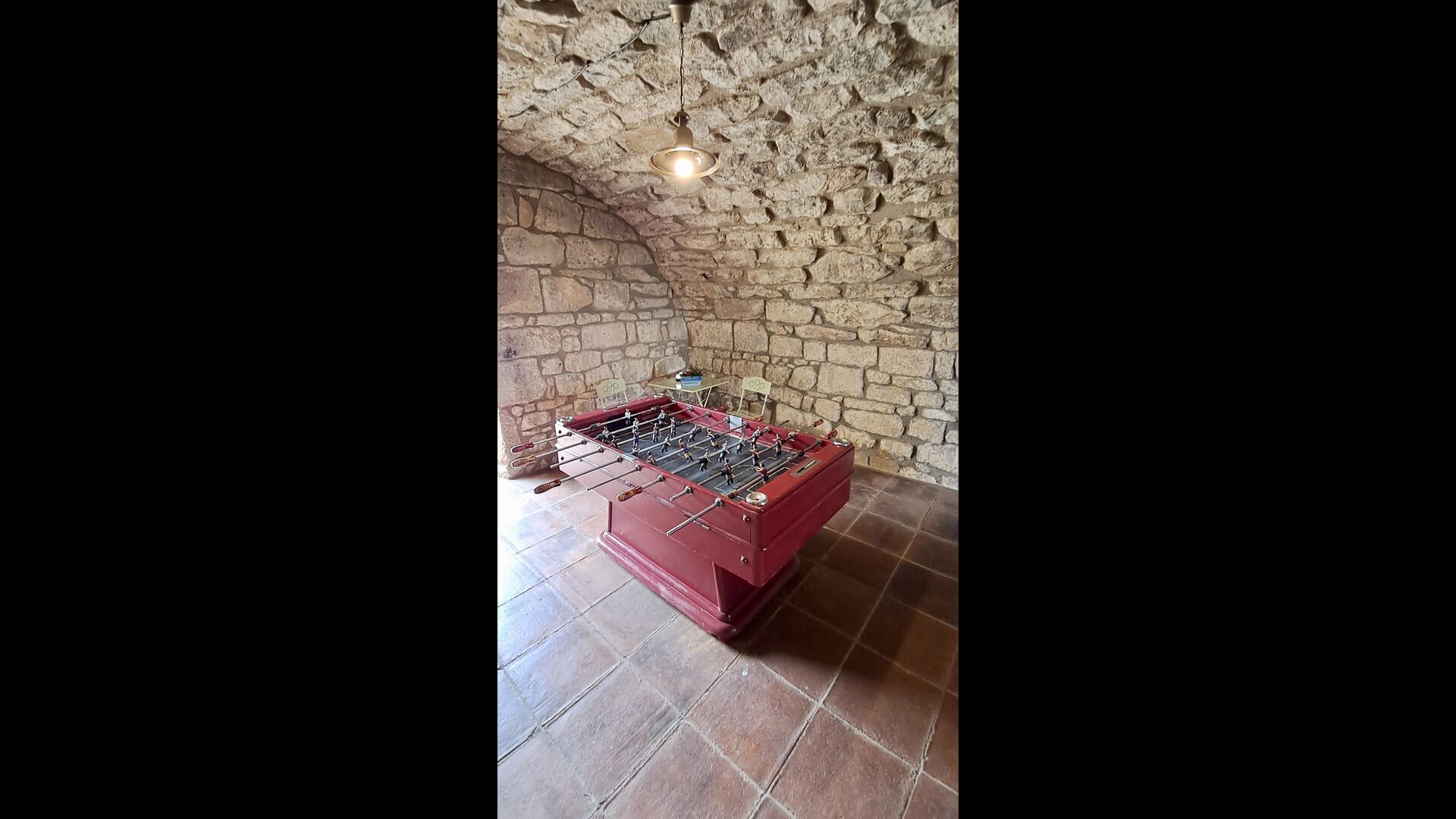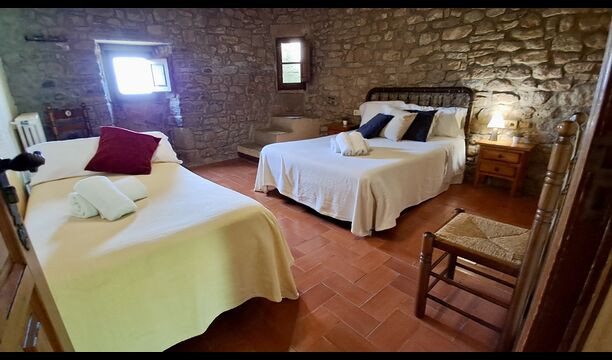 La casa está construida con materiales típicos como paredes de piedra caliza y azulejos en el interior, manteniendo la casa fresca incluso en los días más cálidos de verano. Distribuido en dos plantas, hay en total 6 habitaciones. Tres de las habitaciones son habitaciones de tres camas y tres habitaciones dobles. Hay tres baños a su disposición.