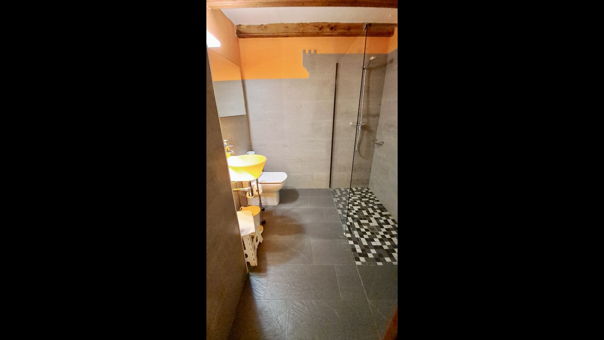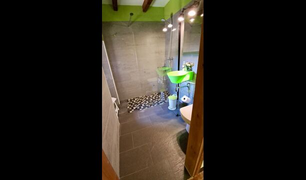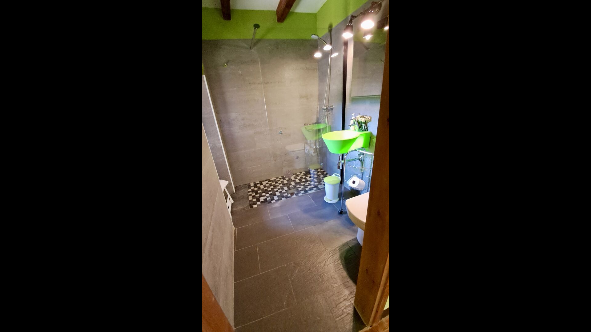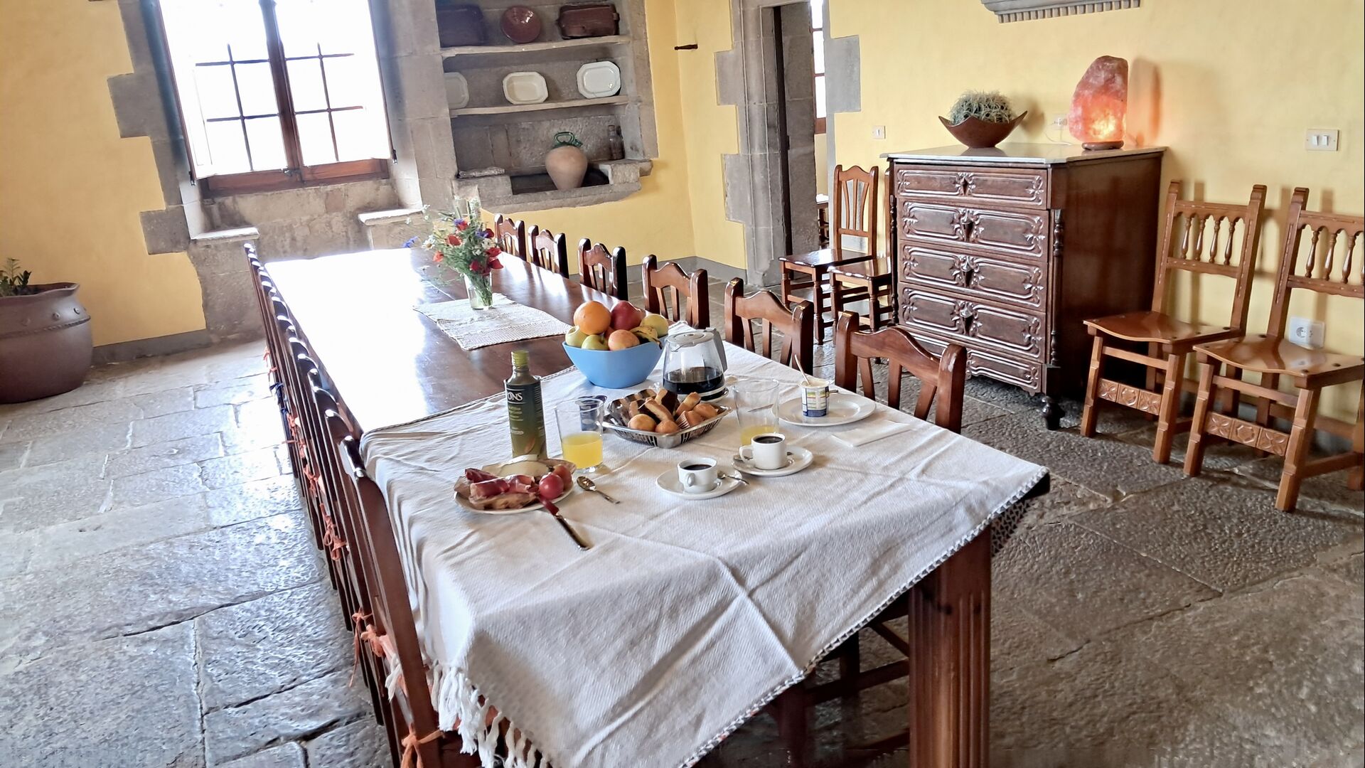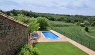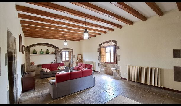 La casa está construida con materiales típicos como paredes de piedra caliza y azulejos en el interior, manteniendo la casa fresca incluso en los días más cálidos de verano. Distribuido en dos plantas, hay en total 6 habitaciones. Tres de las habitaciones son habitaciones de tres camas y tres habitaciones dobles. Hay tres baños a su disposición.