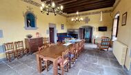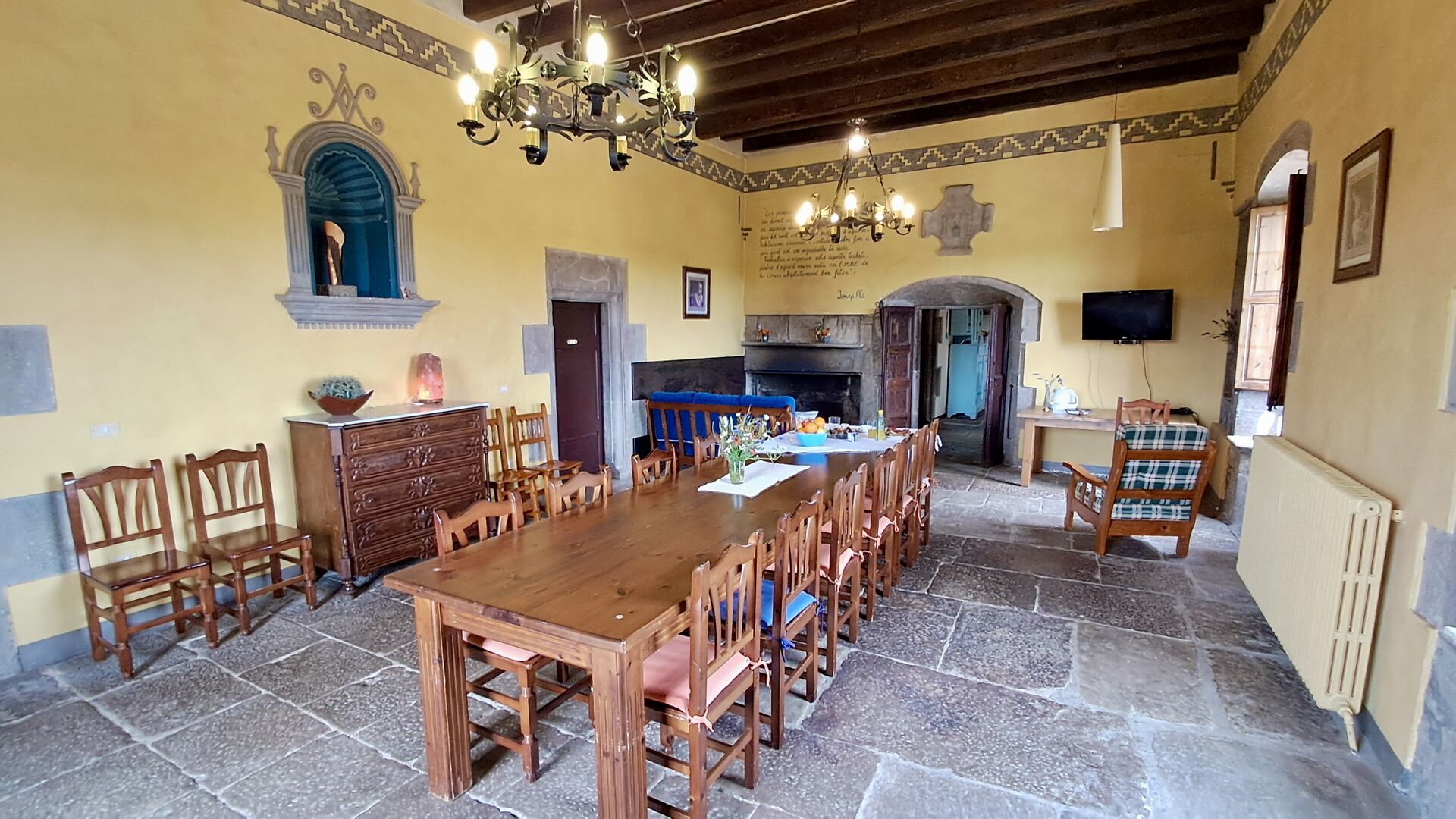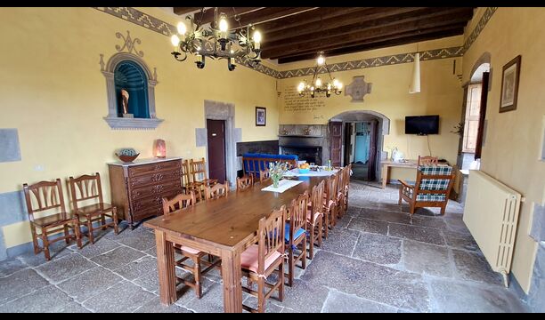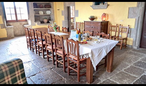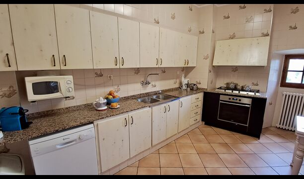 Hay un comedor muy grande con baño y una sala de estar con chimenea, TV y DVD. La casa tiene una cocina moderna con todas las comodidades como lavavajillas, microondas y lavadora.