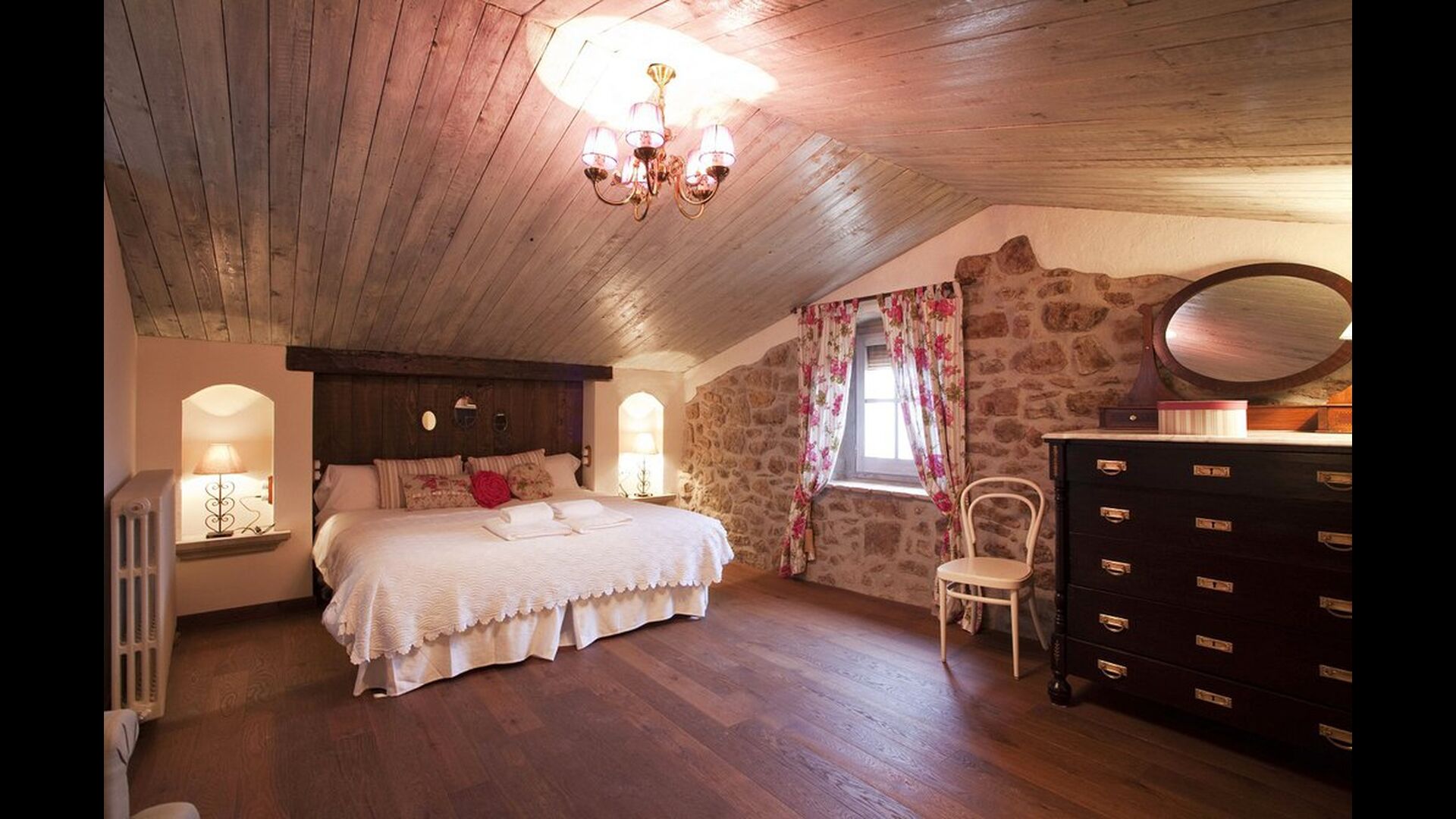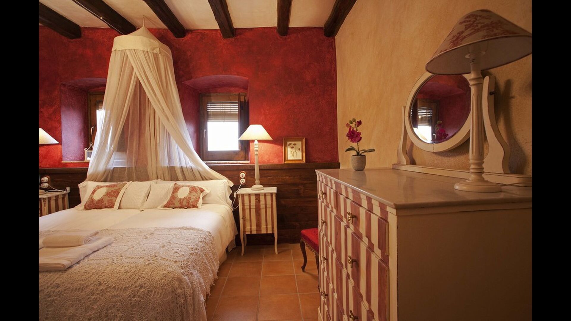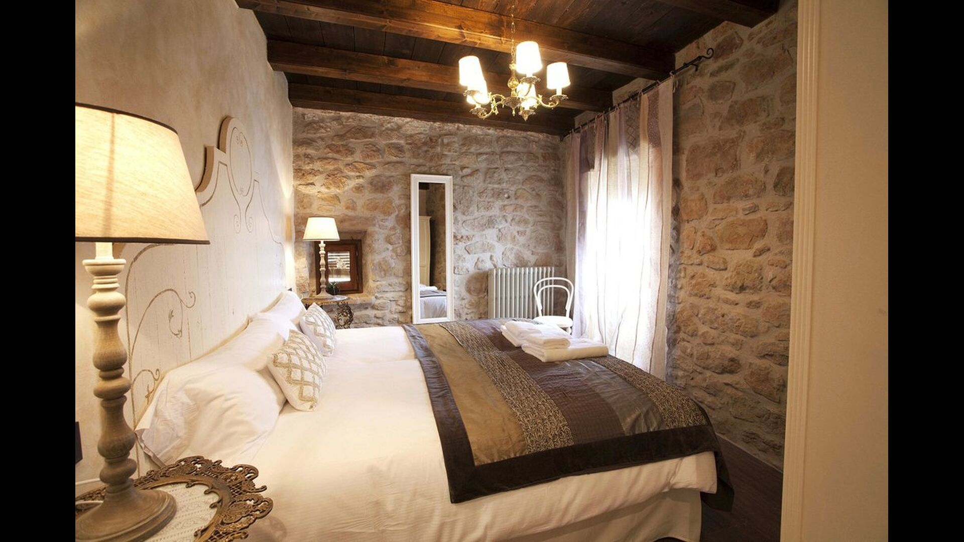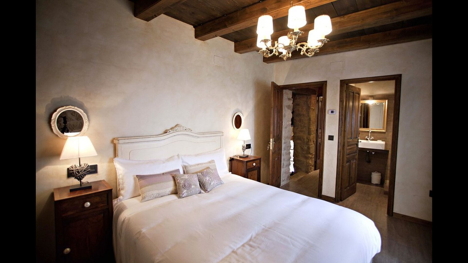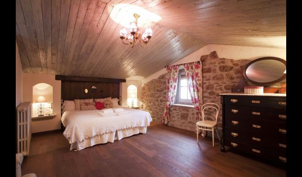 La casa dispone de un total de 7 habitaciones, 6 dobles y 1 triple. Todas disponen de baño propio, algunas con bañera de hidromasaje. Con cobertura de móvil y servicio gratuito Wi-Fi en toda la casa, y la posibilidad de añadir camas supletorias. Están delicadamente decoradas en tonos cálidos y materiales nobles para que os sintáis como en vuestra casa.
