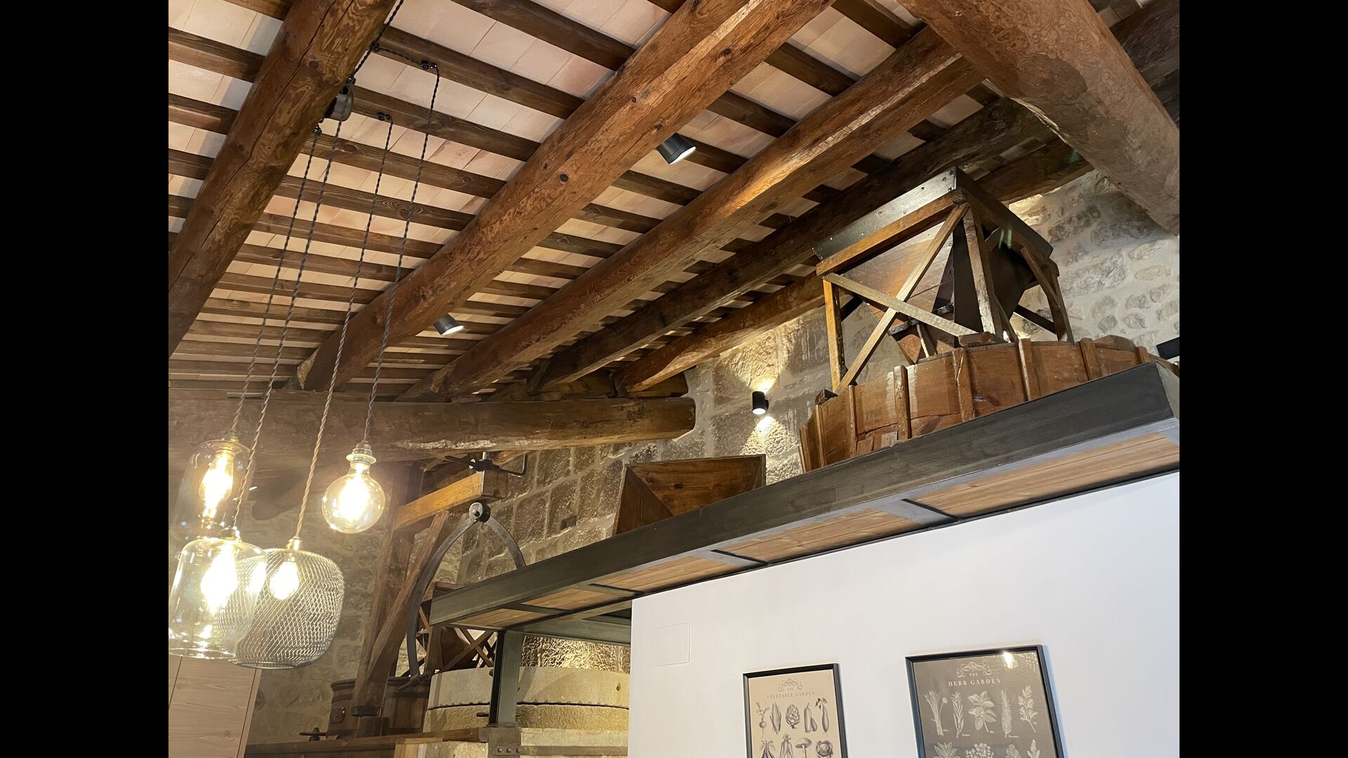 El molino es de 1888 y estaba hecho para hacer harina. Si te gusta la técnica, es sorprendente cómo se ha conservado la antigua maquinaria del molino. Está cubierta por un cristal, para que puedas ver todos los detalles, y Josep-Maria estará encantado de mostrarte cómo funcionaba en los viejos tiempos. Además, se ha hecho en exterior, por lo que contribuye a la sensación de estar en una casa de vacaciones con mucha historia y ahora de gran calidad.