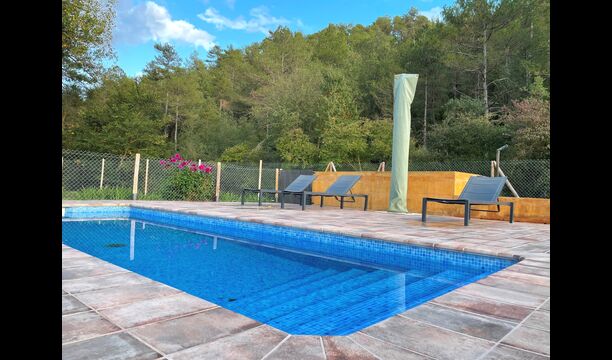 En medio del jardín,encontrarás la zona de la piscina vallada, donde podrás relajarte en las tumbonas o darte un chapuzón para refrescarte en el cálido verano catalán. Como la piscina tiene escaleras romanas, también es ideal si tienes niños pequeños, para que puedan entrar al agua a su propio ritmo y jugar.