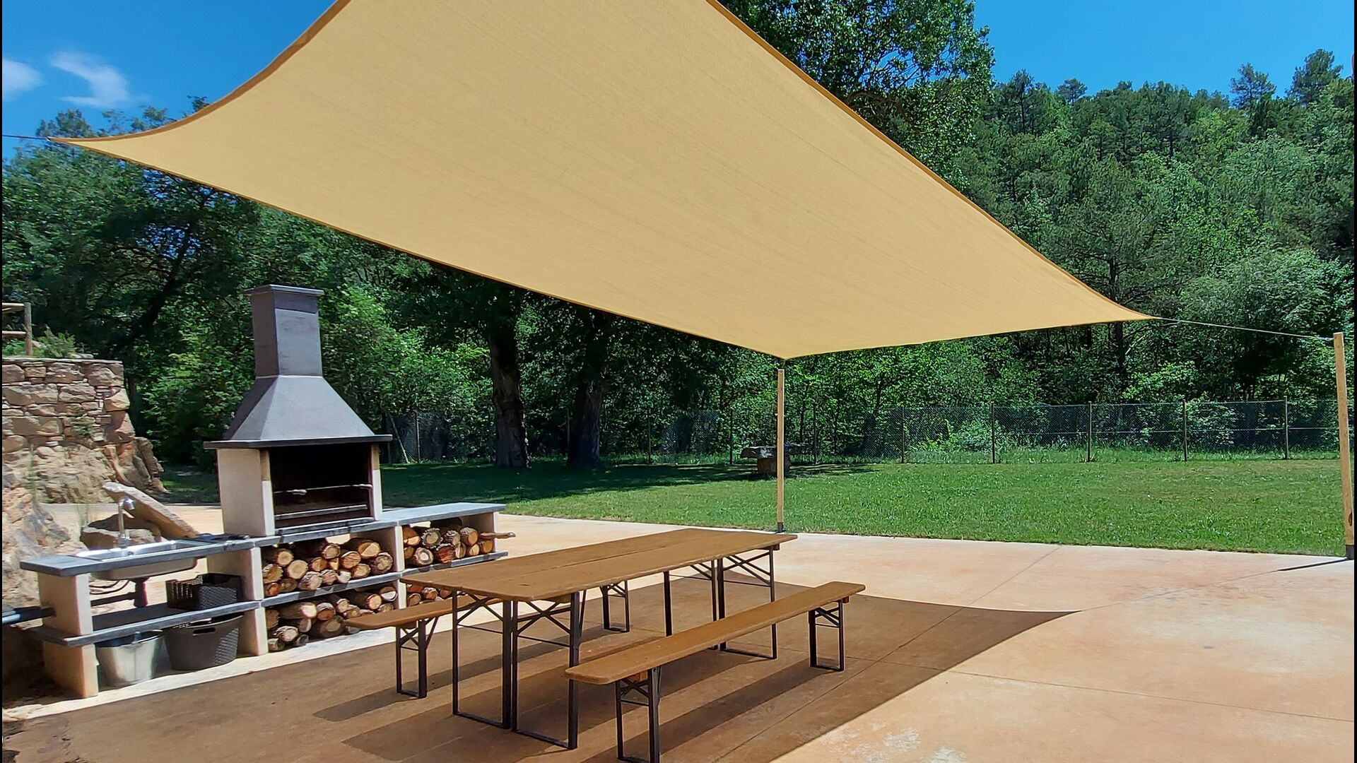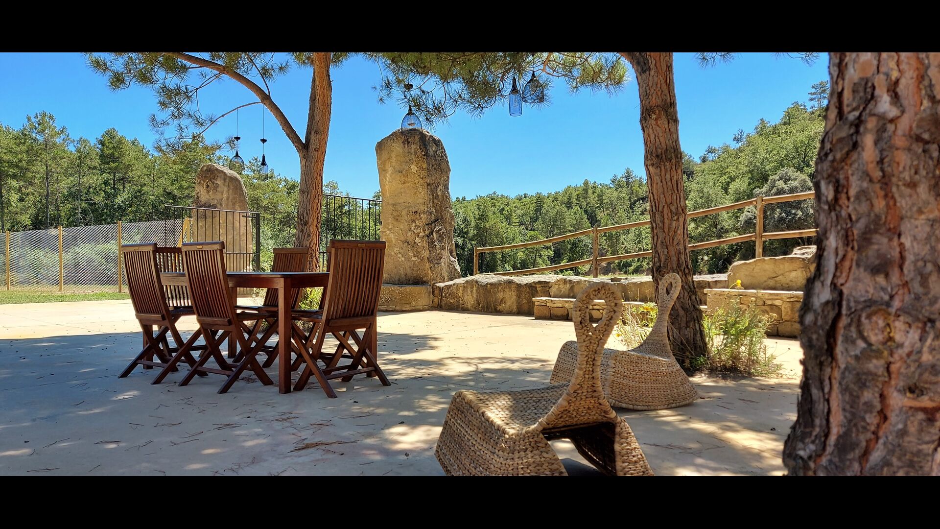 En el exterior de la casa, dispondrás de la mesa del jardín, que podrás mover fácilmente, para que básicamente puedas comer donde prefieras. Puede ser a la sombra de uno de los árboles, junto a la piscina o al lado de la barbacoa, si te gusta una buena cena de barbacoa. También hay algunos sillones, para que puedas relajarte con un libro.