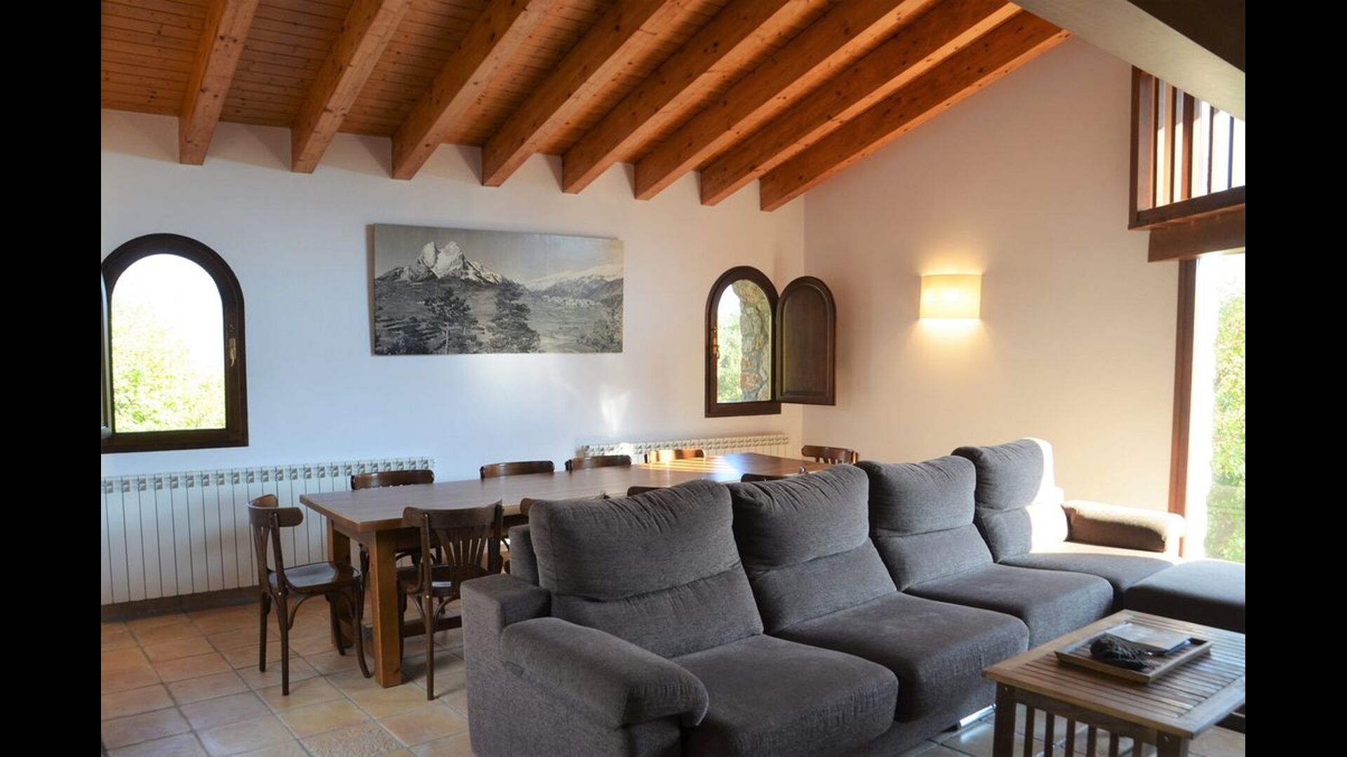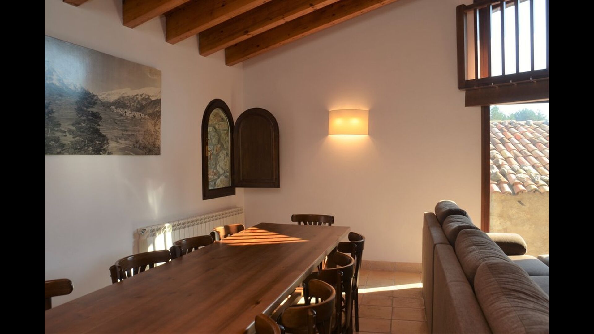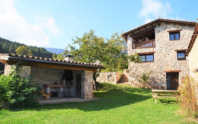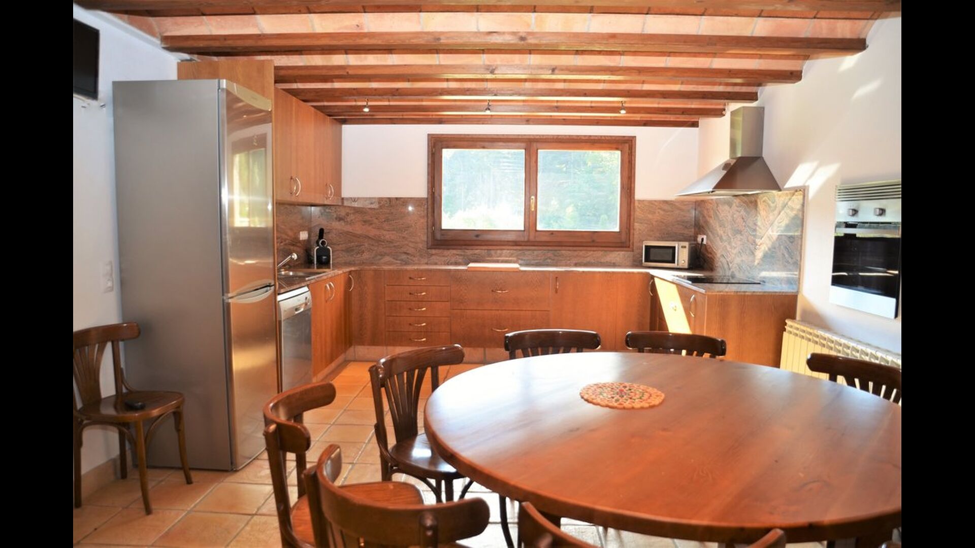 Además, hay una cocina bien equipada en la planta baja, junto con un baño y una sala de estar con vista panorámica con un televisor de pantalla plana y vistas a Pedraforca. Al subir al piso superior, encontrará, además de las habitaciones, un baño con bañera, así como una acogedora terraza con una gran vista y una disposición de asientos, donde podrá relajarse por la noche mientras observa el encantador catalán. puesta de sol. La casa está decorada en un estilo tradicional catalán que le permite explorar aún más la cultura catalana.