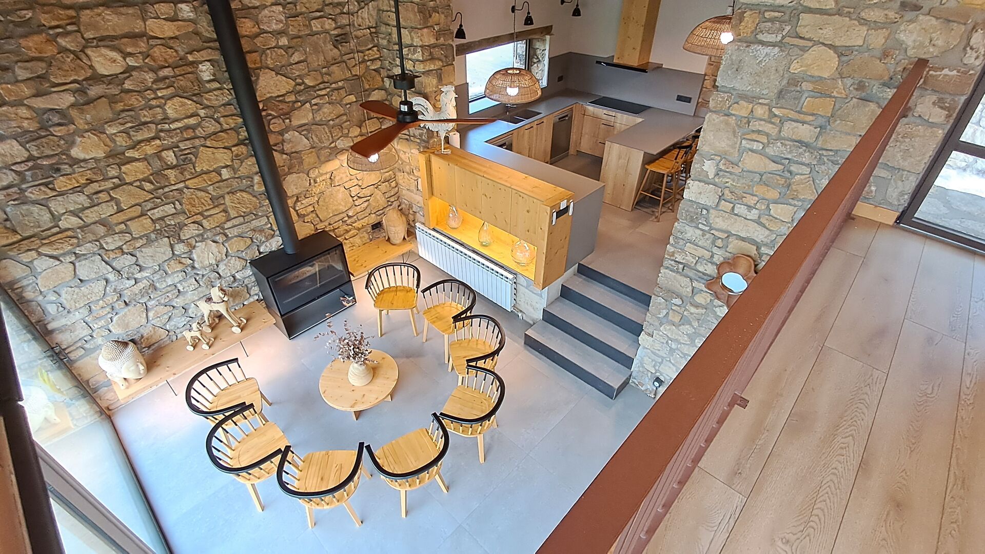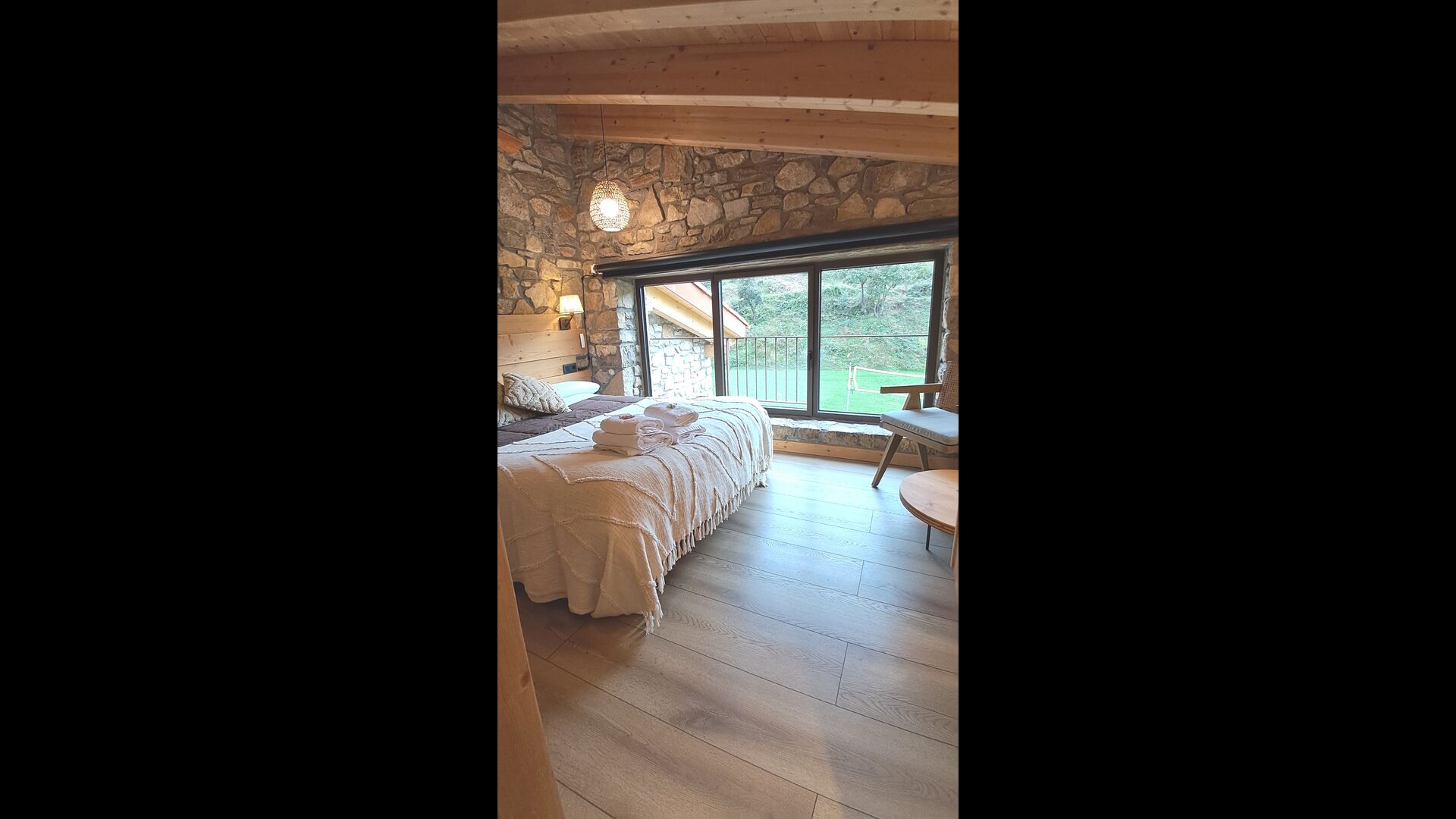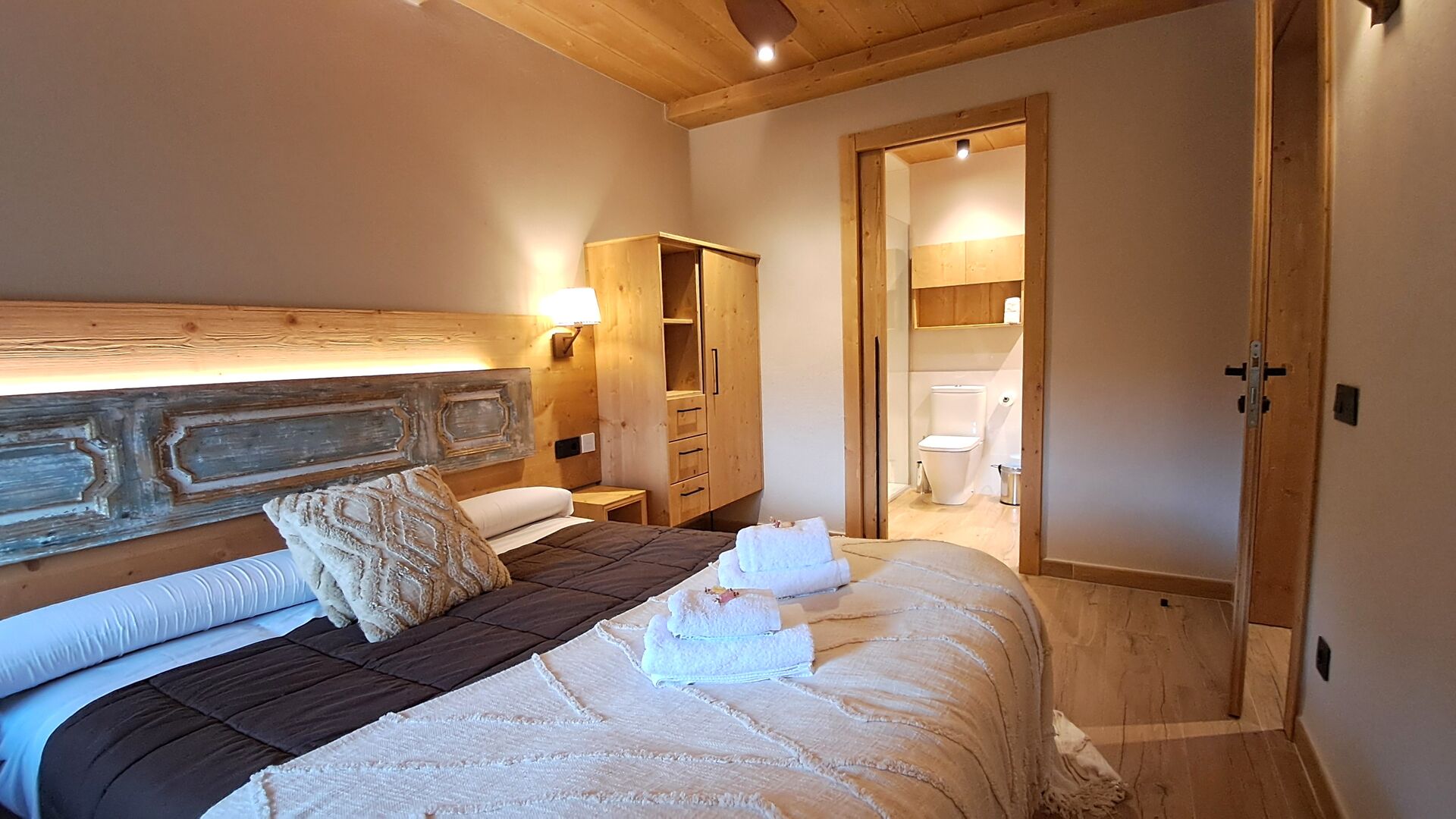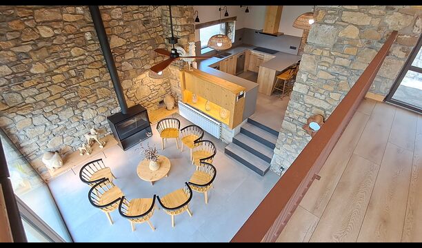 Con capacidad para hasta 22 huéspedes, la propiedad cuenta con 9 amplios dormitorios, cada uno con su propio baño privado, incluyendo una suite familiar que suma un total de 10 acogedoras habitaciones. Tonos cálidos de madera, materiales naturales cuidadosamente seleccionados y detalles refinados crean un ambiente que resulta tanto elegante como hogareño.