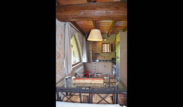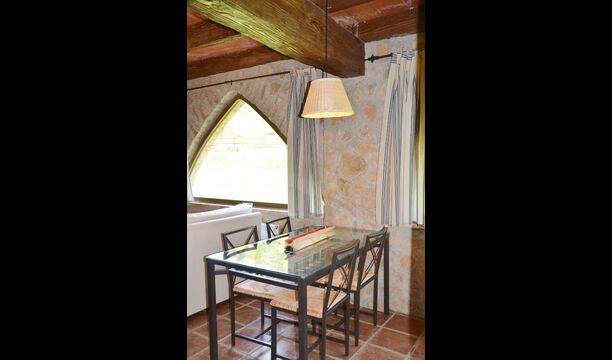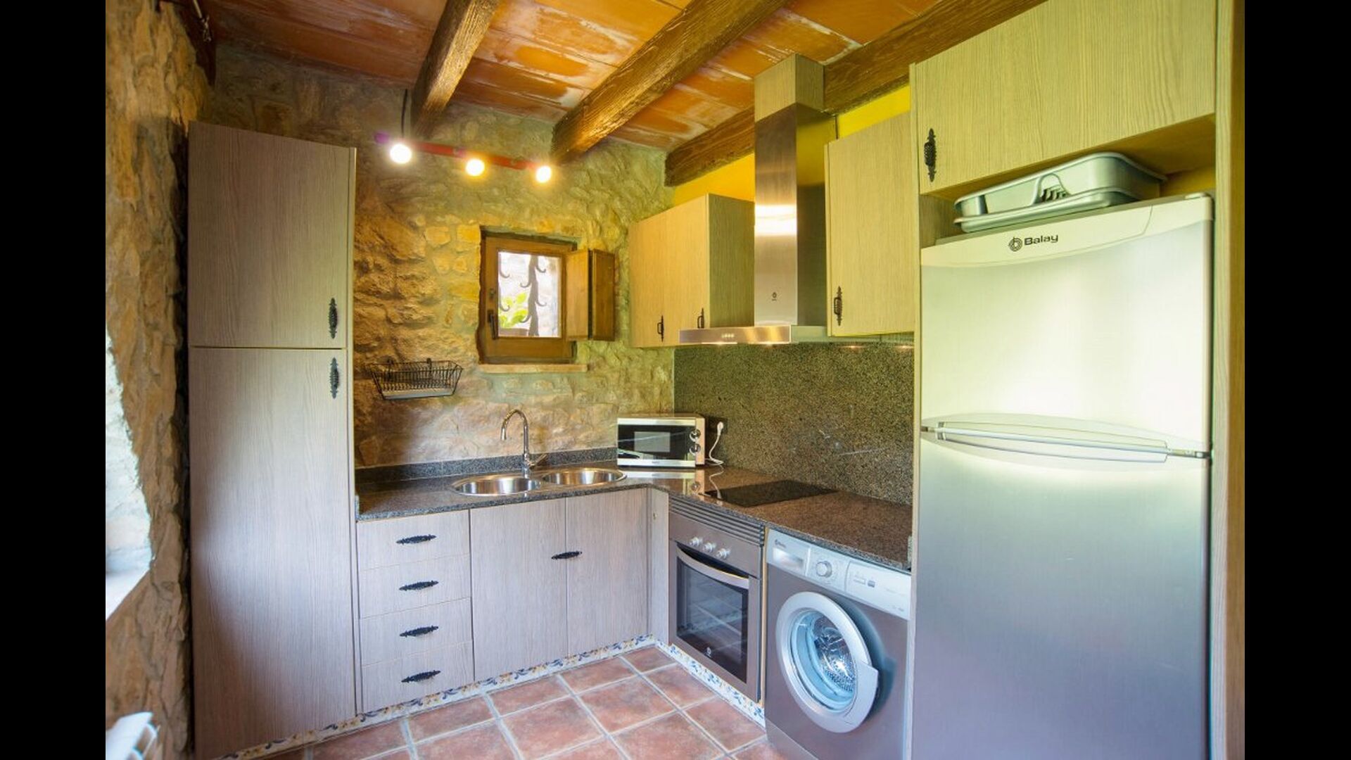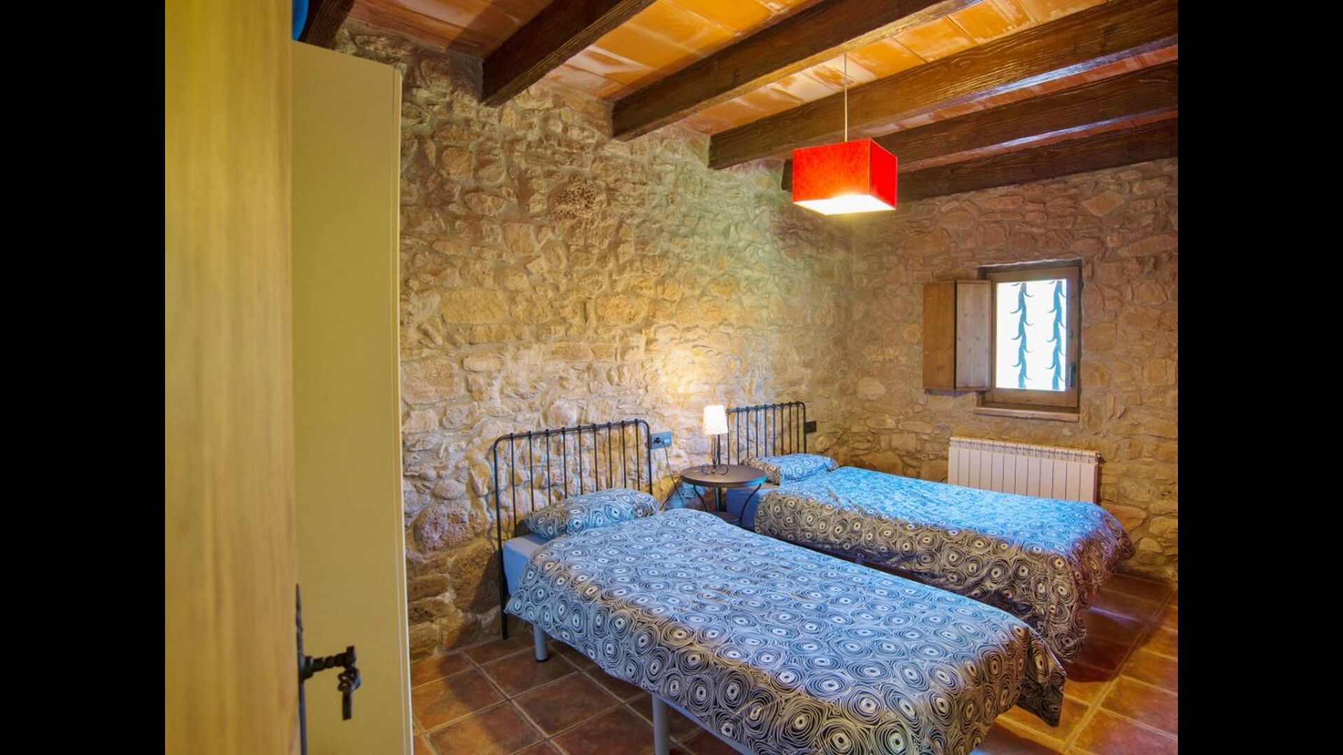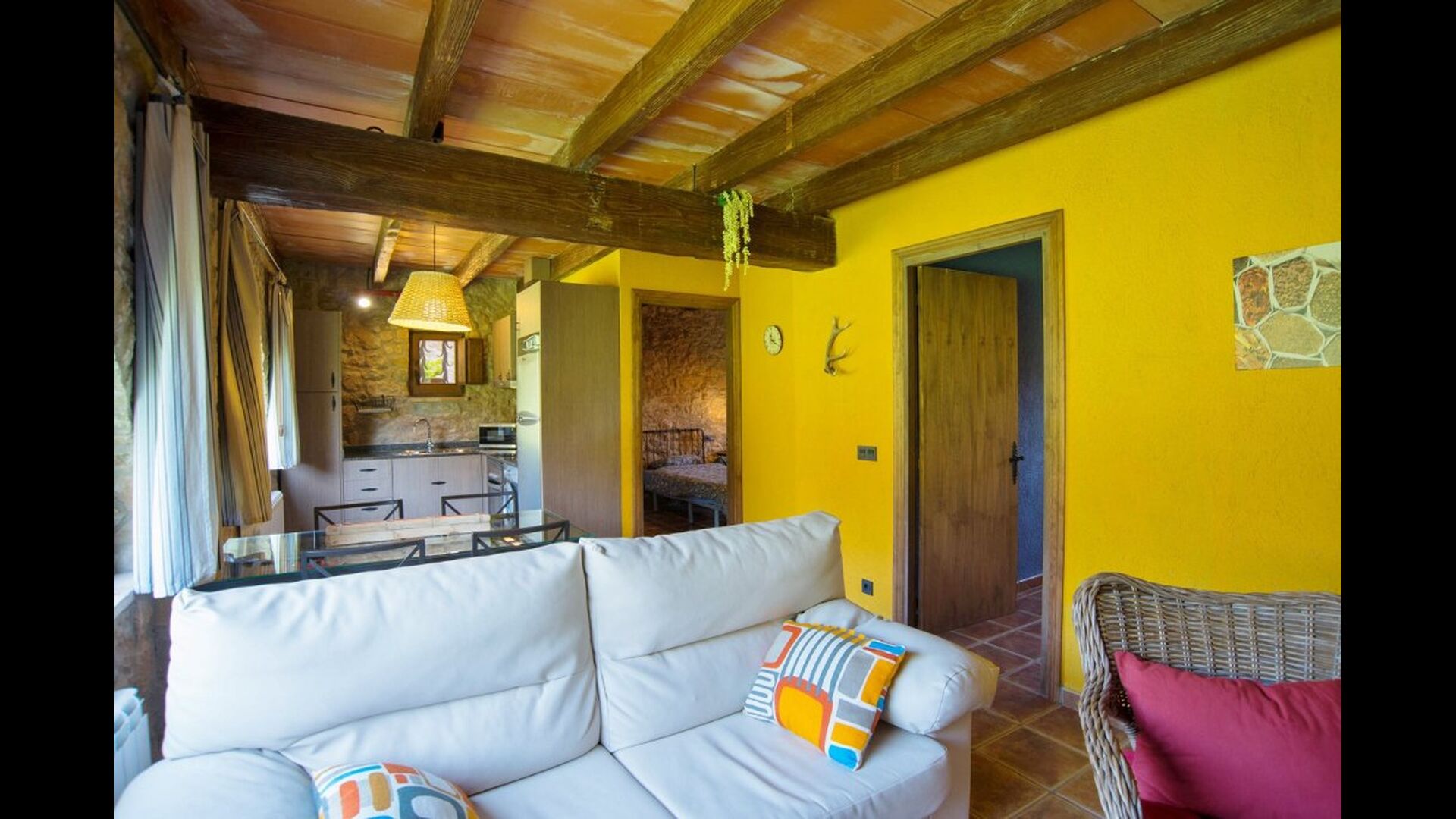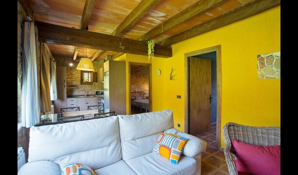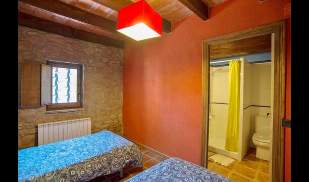 Este apartamento de 70 m2, Can de Pirineus - Era 4 + 2P, está más cerca de la piscina y se encuentra en la planta baja con otro apartamento en la planta superior. Con dos habitaciones dobles con una cama doble y dos camas individuales, es perfecto para la familia. Hay una sala y cocina combinadas, lo que significa que toda la familia puede estar junta al mismo tiempo. El techo está bellamente construido con vigas y las paredes son de piedra, lo que en conjunto proporciona una sensación auténtica de una granja catalana.