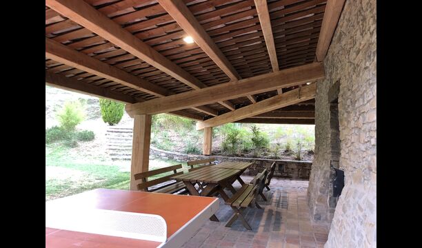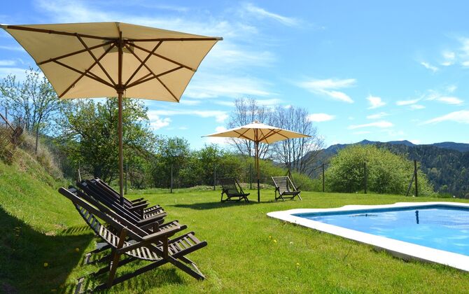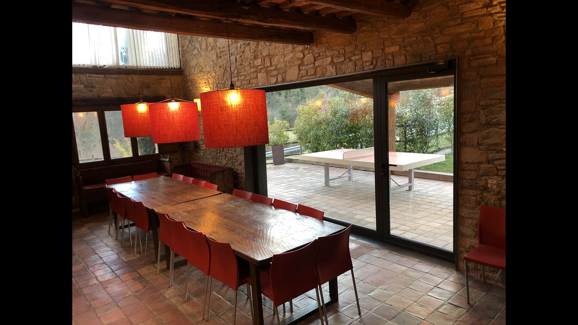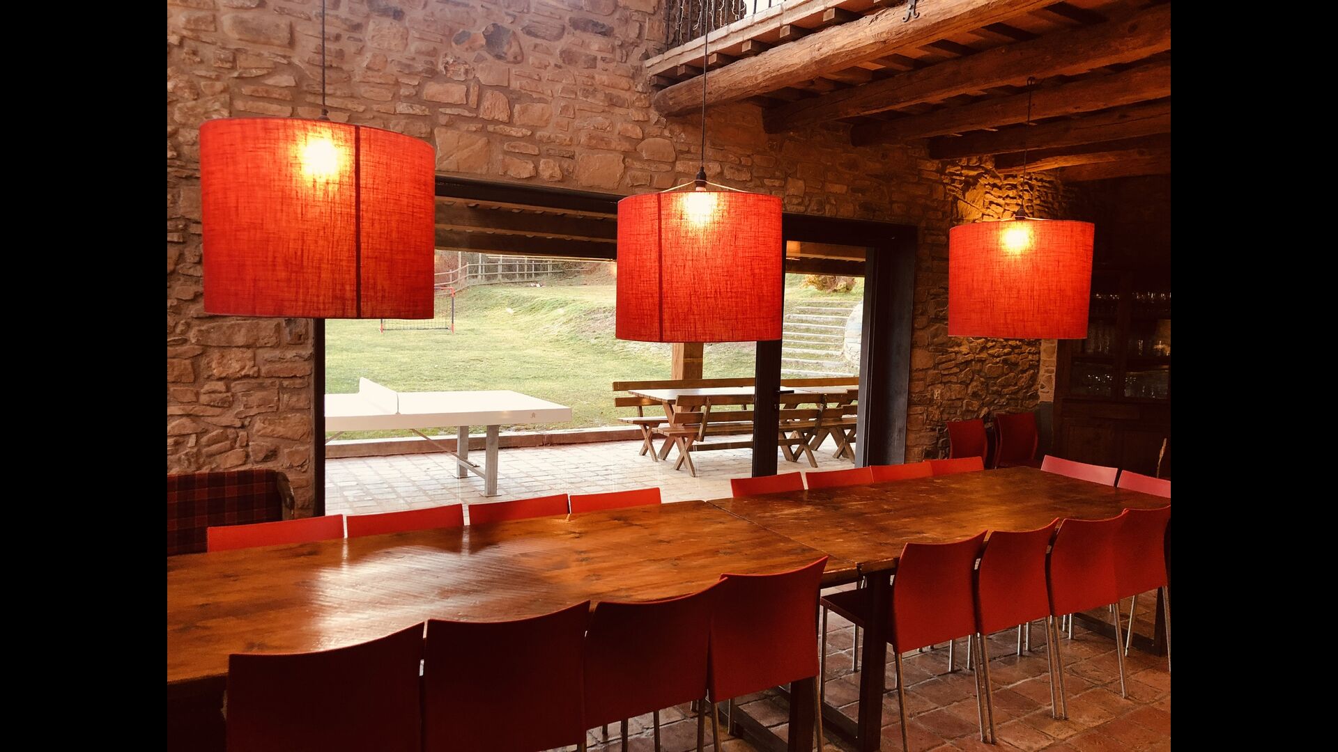 Casa Barnada se encuentra al comienzo de los Pirineos, una casa de vacaciones hermosa, grande y familiar de muy alta calidad. La casa se encuentra ligeramente elevada sobre la carretera de montaña escasamente concurrida que conecta Berga y Ripoll. Aquí vives en paz con las montañas de fondo, una vista que brinda un ambiente único y relajado. Bernador tiene un gran jardín con una elegante proyección. Con cercas y árboles, la casa de vacaciones es muy privada. Hay un gran césped con espacio para juegos de pelota en un extremo. En el otro extremo hay una gran terraza, perfectamente conectada a la cocina dentro de la casa.