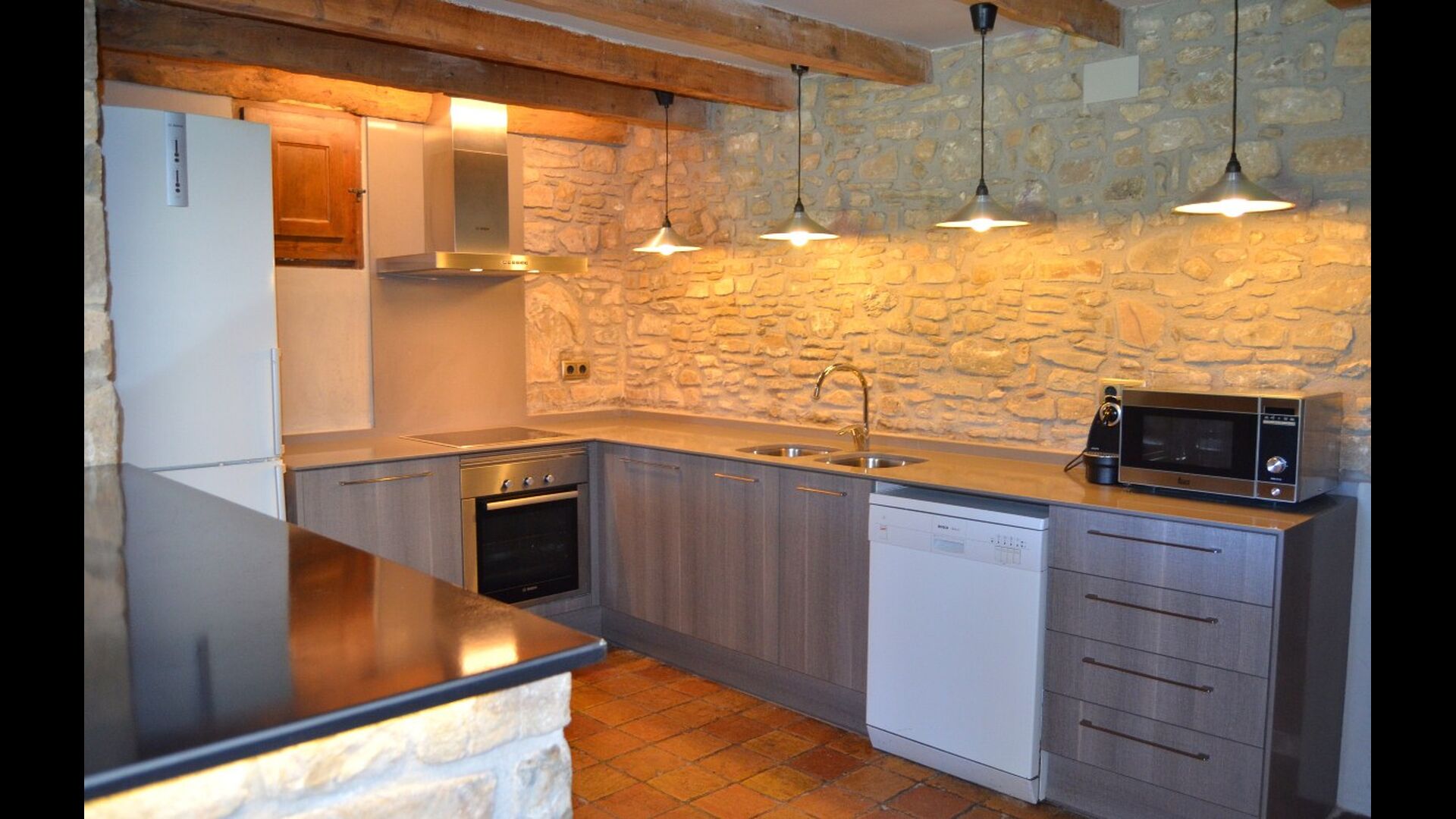 Al entrar en la casa, hay a la derecha un amplio dormitorio de alta calidad con una cama doble y un baño conectado. En el centro de la casa hay una gran sala familiar, donde hay una sala de estar con una gran televisión de pantalla plana. En la misma habitación hay una gran mesa larga con sillas rojas y mucho espacio para todos. Después de esto, se encuentra una cocina moderna, donde tiene un microondas, un refrigerador, un congelador, un lavavajillas y muchos otros utensilios. Junto a esto hay una habitación bastante grande con lavadora y un refrigerador adicional. También hay una paellera muy grande con placa de gas, por lo que puede preparar este plato local. Desde la cocina hay acceso a la terraza. Esto es muy conveniente si, por ejemplo, va a disfrutar de sus comidas caseras al aire libre en la cálida noche.