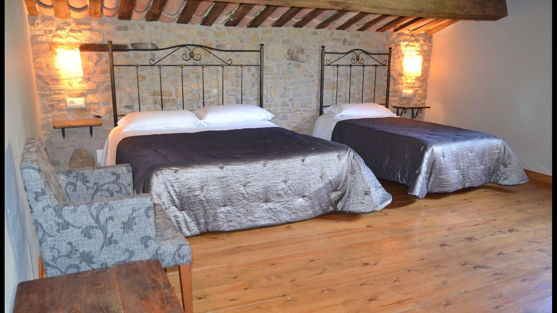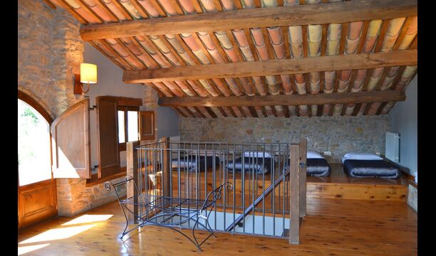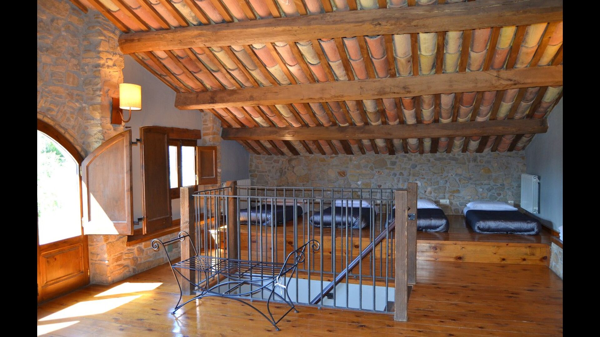En el segundo piso hay un gran salón, que es ideal para niños. Aquí hay un gran salón con colchones. Esto se adapta perfectamente a un grupo de niños, que pueden dormir y divertirse aquí. En esta planta hay un baño muy amplio. Además, hay una gran habitación triple con una cama doble y una cama individual, que por supuesto tiene baño privado.