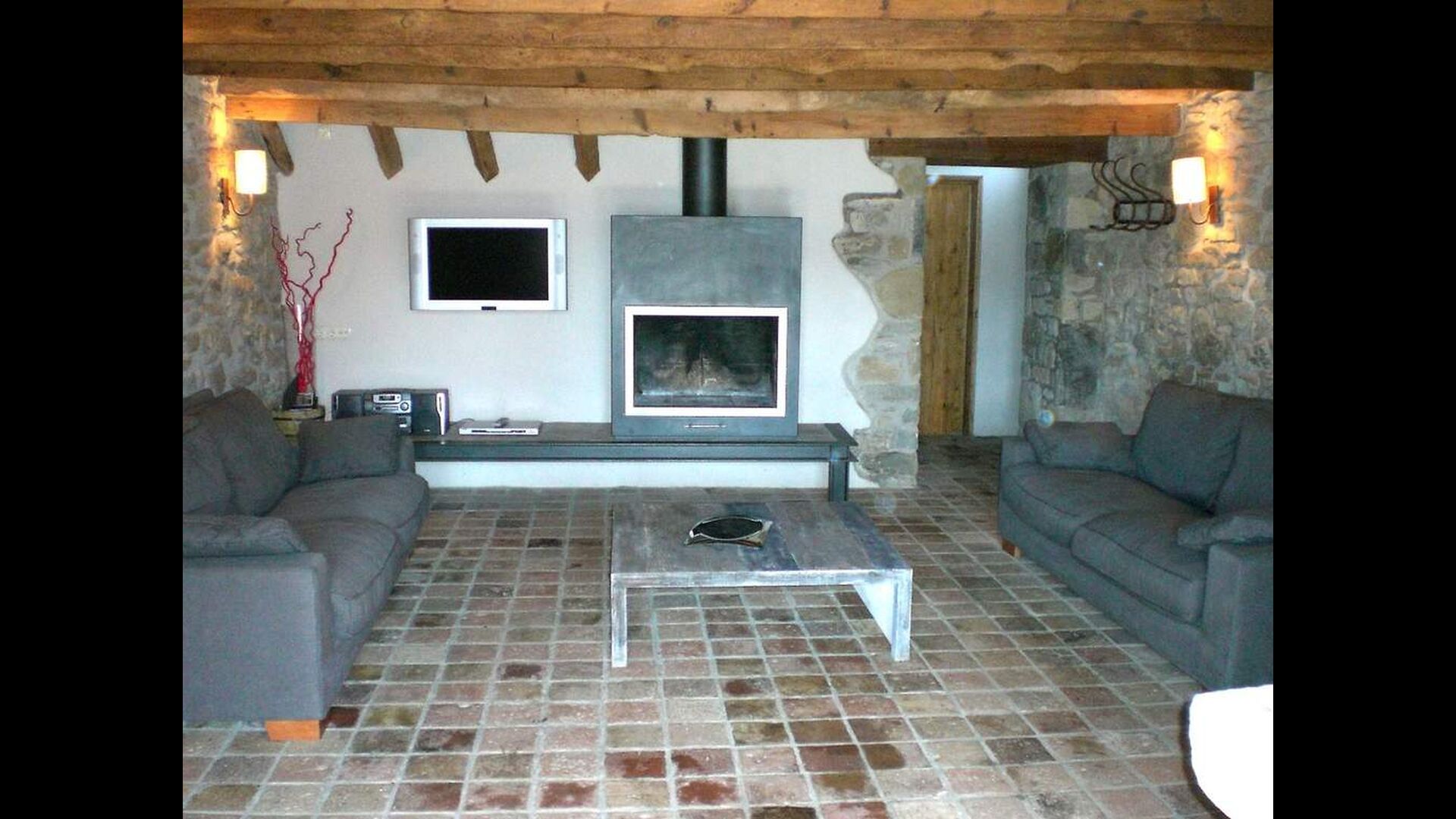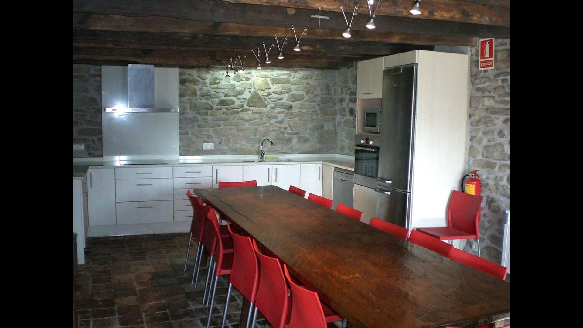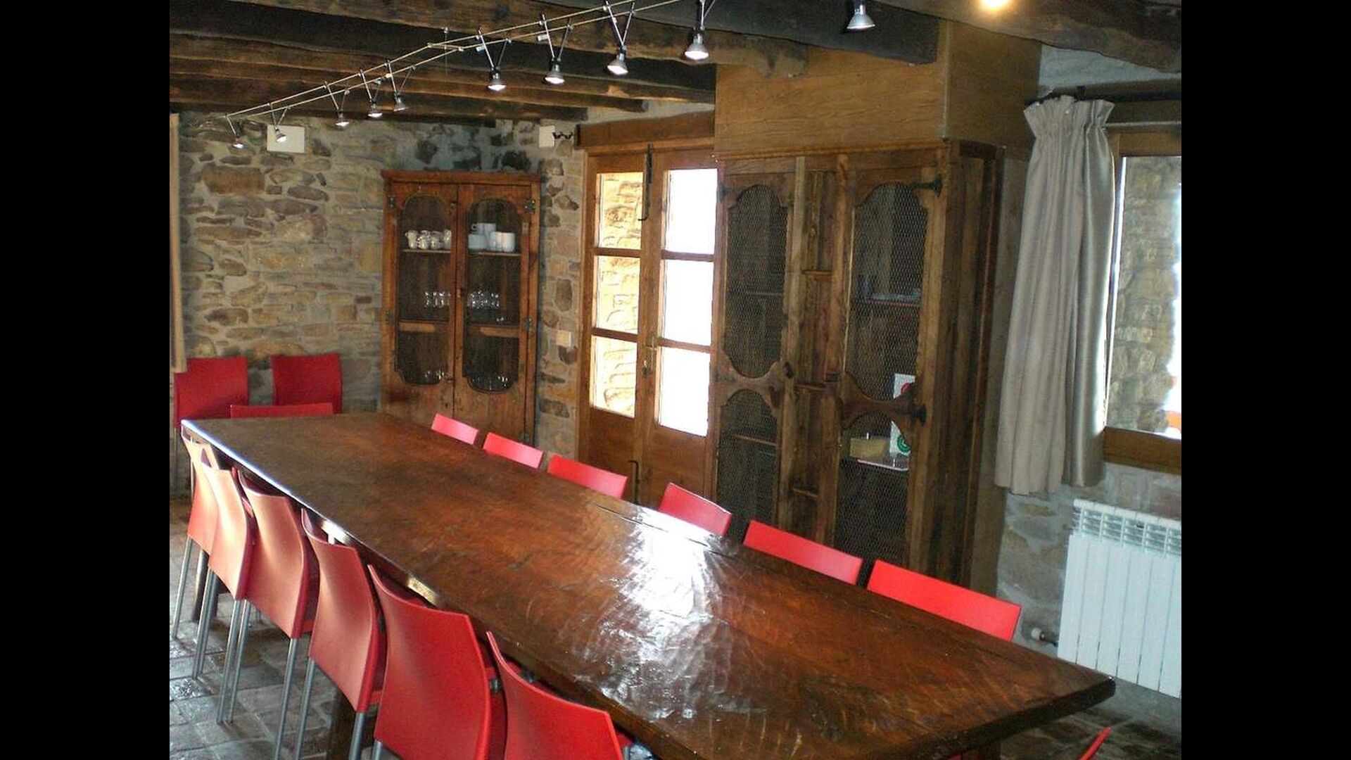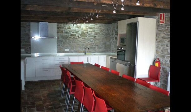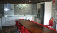 Casa Ferrera combina la arquitectura tradicional catalana con el confort moderno. En la planta baja se encuentra un acogedor salón con chimenea y televisión, una amplia zona de comedor perfecta para comidas compartidas y una cocina totalmente equipada, pensada para estancias en grupo. Un baño con lavadora aporta un plus de comodidad para estancias prolongadas.