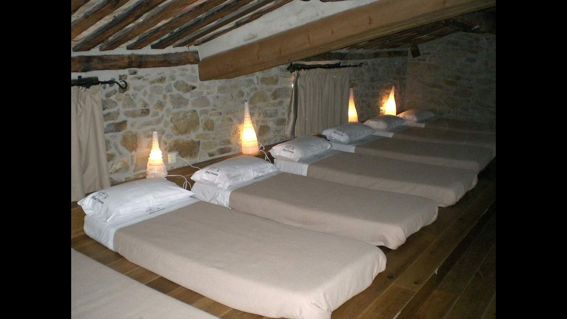 Uno de los grandes atractivos de Casa Ferrera es el dormitorio situado en la planta superior con ocho camas individuales. Espacioso y acogedor, es perfecto para niños, adolescentes o grupos numerosos, ya que ofrece un espacio compartido y divertido para dormir, manteniendo al mismo tiempo la comodidad y privacidad del resto de la casa. Un baño adicional en esta planta lo hace especialmente práctico para reuniones familiares o estancias intergeneracionales.