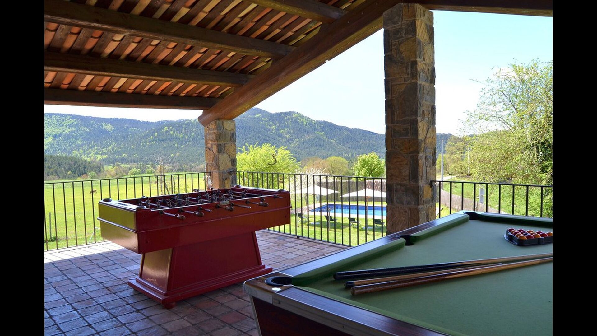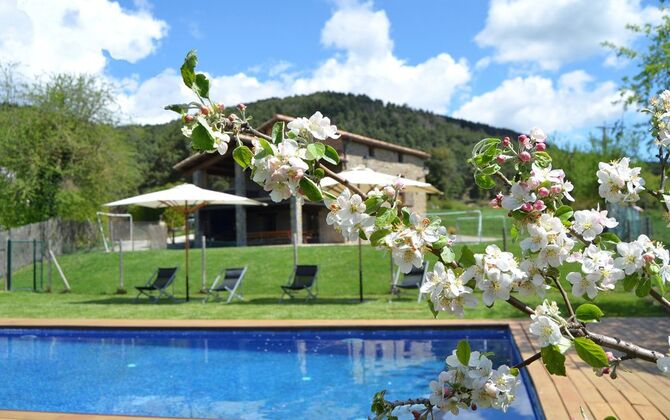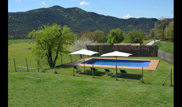 Situada entre praderas verdes y colinas boscosas a los pies de los Pirineos catalanes, Casa Ferrera es una casa rural con carácter y de gran capacidad, ideal para familias numerosas o grupos de amigos que buscan comodidad, privacidad y una auténtica experiencia en plena naturaleza.