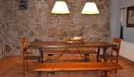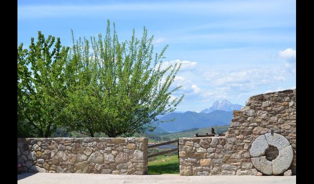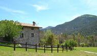 Ubicado a 2.5 kilómetros del pueblo, rodeado de un magnífico paisaje de bosques y prados, en un área que lo invita a participar en actividades en la naturaleza o simplemente relajarse en la belleza del campo. La granja de trescientos metros cuadrados está completamente construida de piedra y se divide en tres plantas. Los muebles son de estilo rústico, a la vez que cómodos, resistentes y prácticos. Las piezas antiguas se combinan con el estilo rústico moderno.