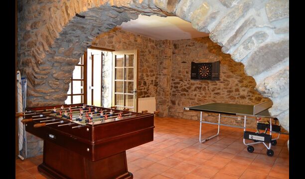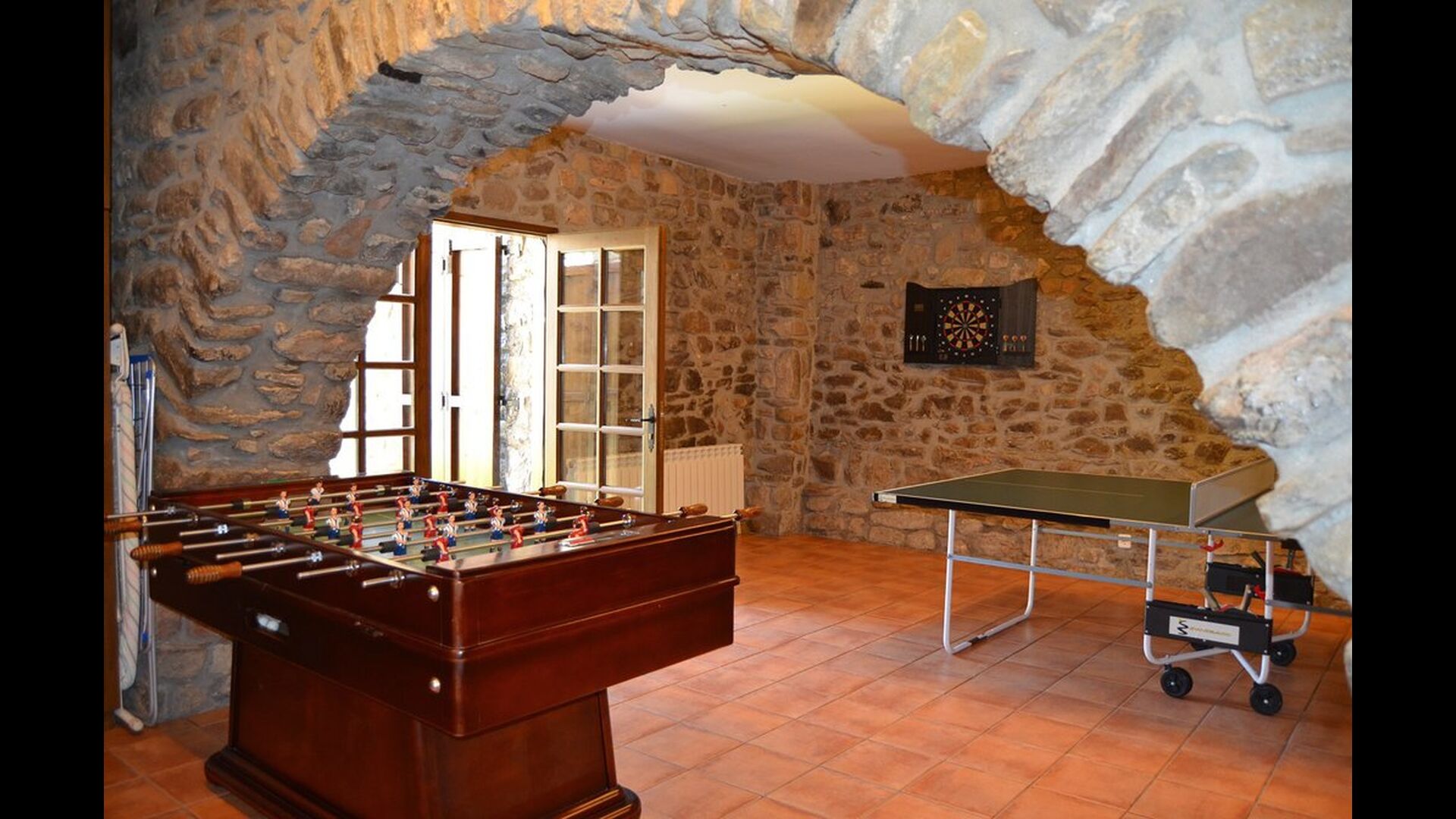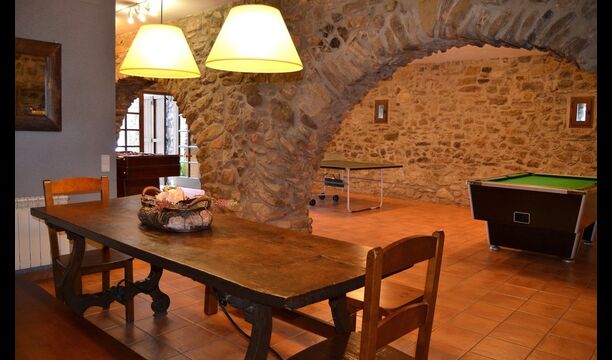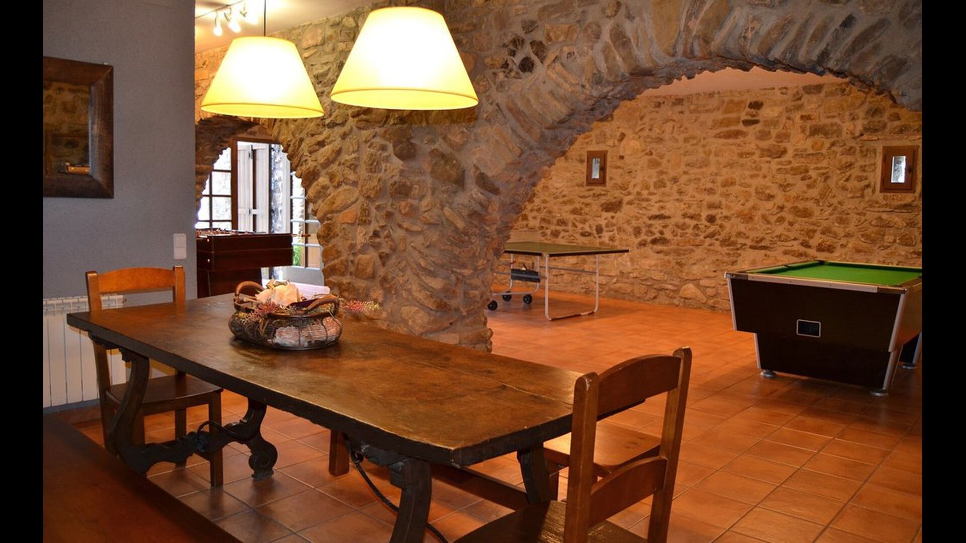 La planta baja ha sido bellamente renovada conservando la carpintería original y dos arcos, que se suman al ambiente acogedor. Esta área es ahora y sala de actividades para juegos y ocio. Aquí, puede relajarse con un juego de mesa, o puede desafiar a familiares o amigos en billar, tenis de mesa o futbolín.