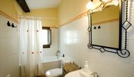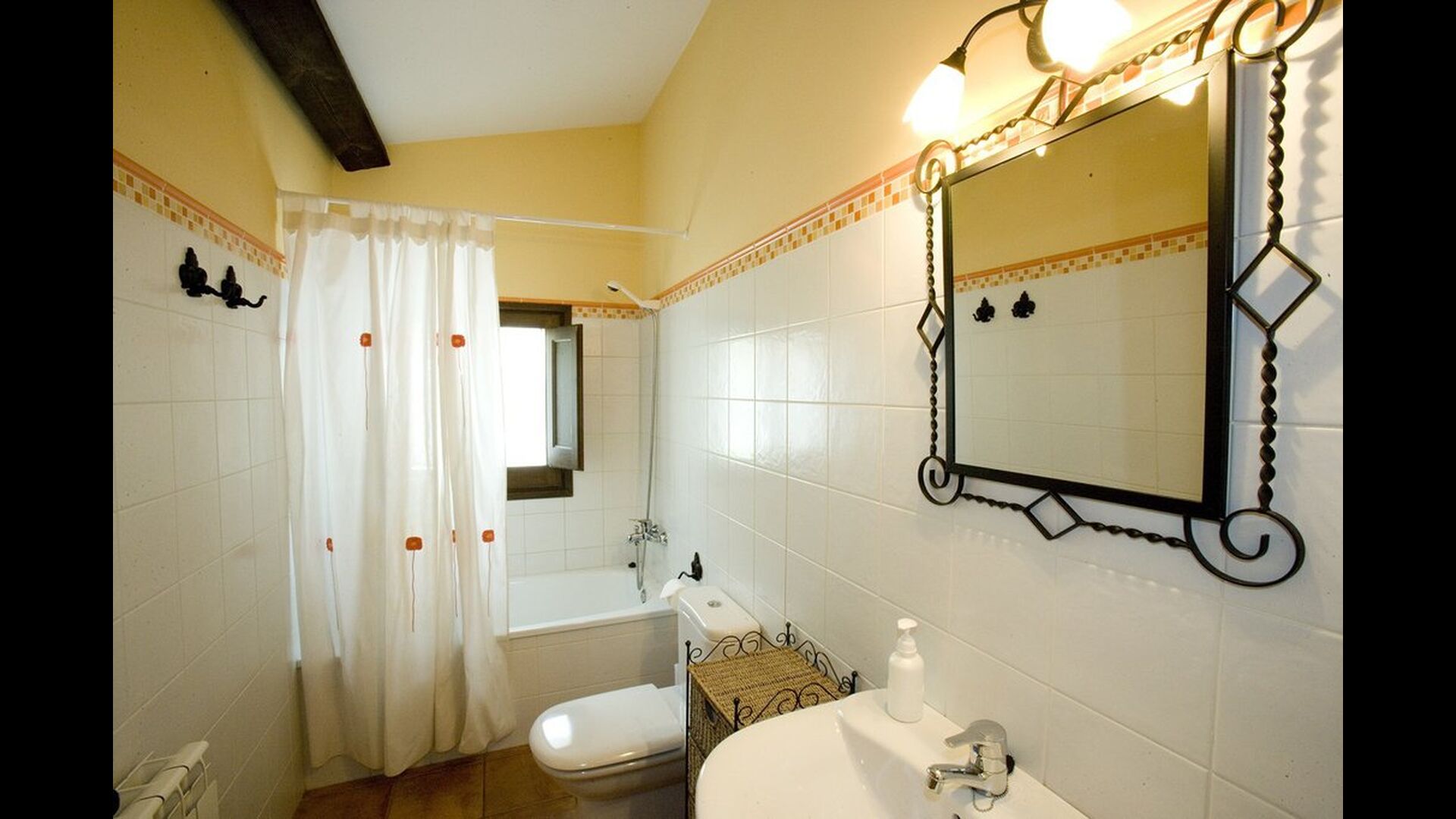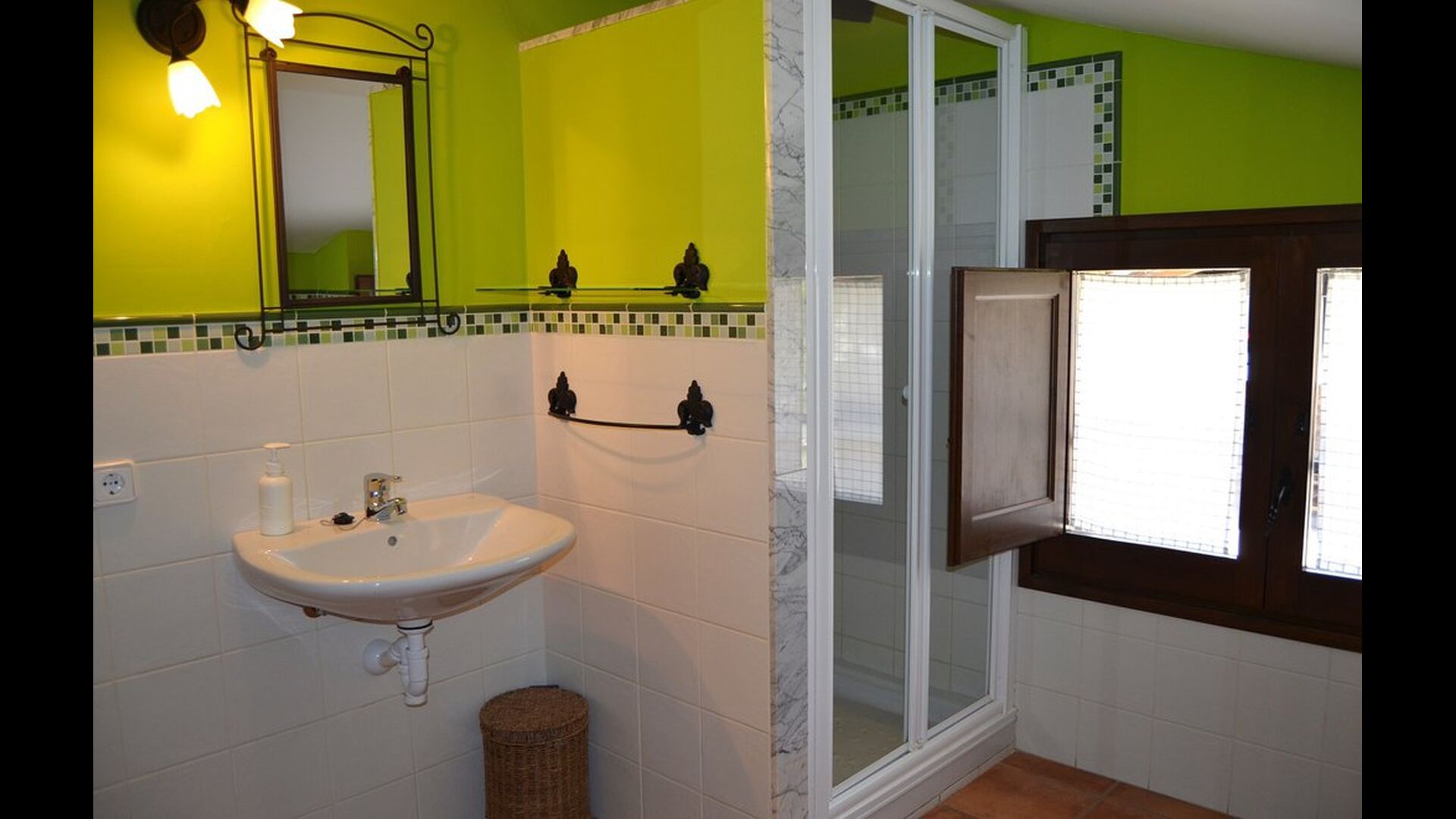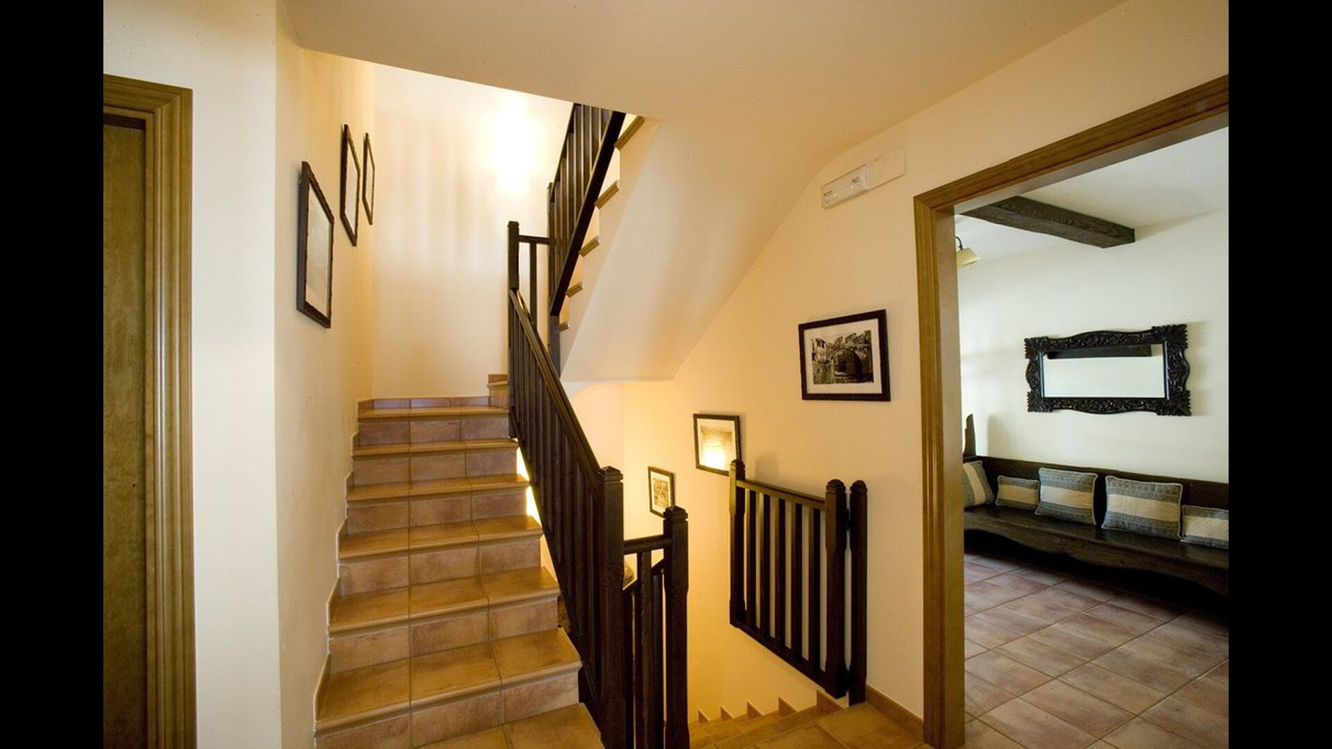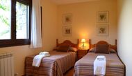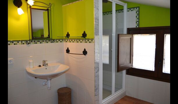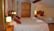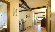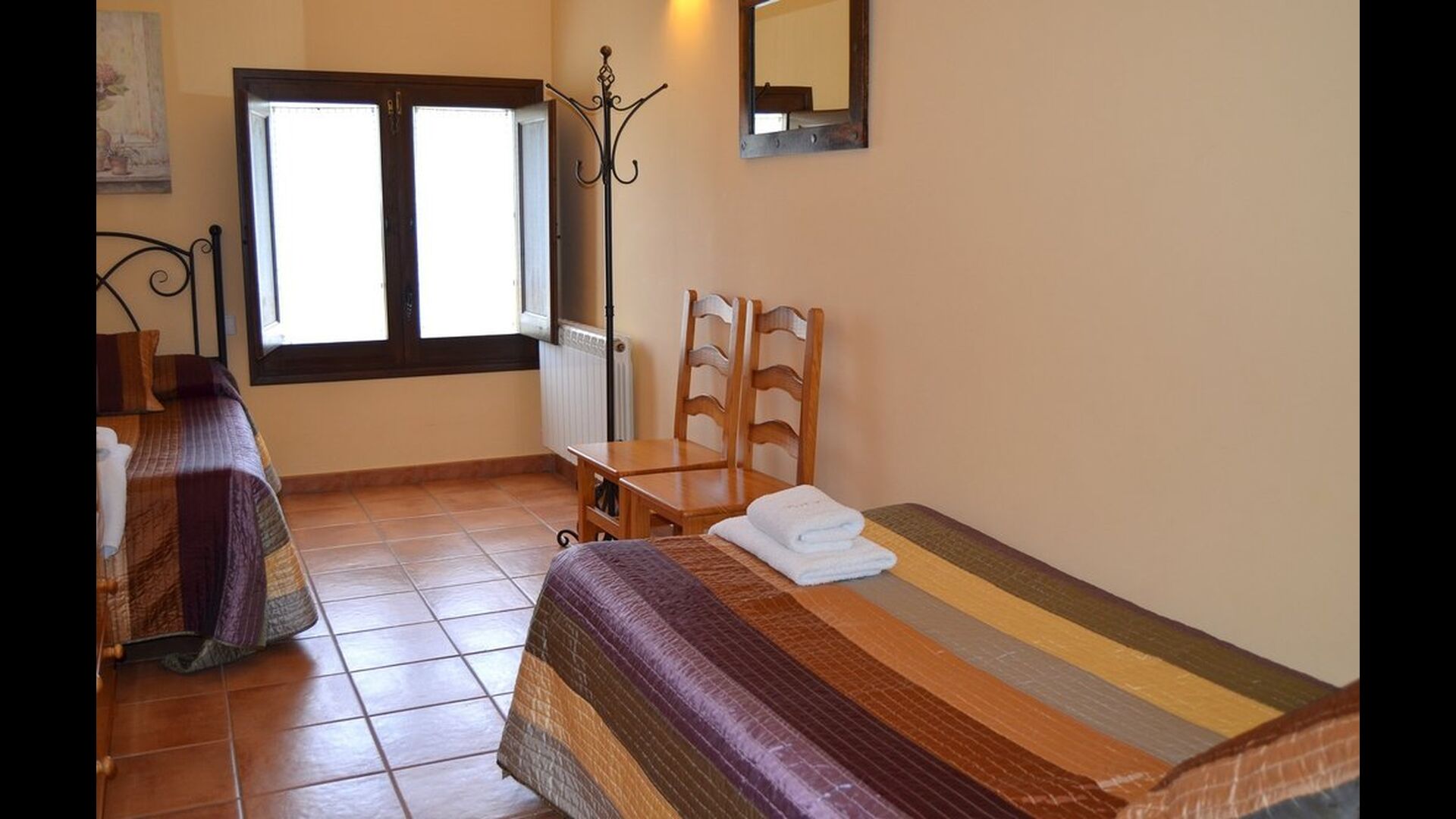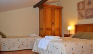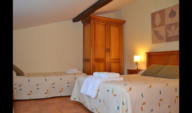 El piso superior es el área de descanso. Dispone de una habitación doble con 2 camas individuales y tres habitaciones triples, dos con 1 cama doble y 1 cama individual y una con 3 camas individuales. Todas están amuebladas con muebles modernos de estilo rústico y cómodas camas. Hay dos baños, uno con ducha y otro con bañera.