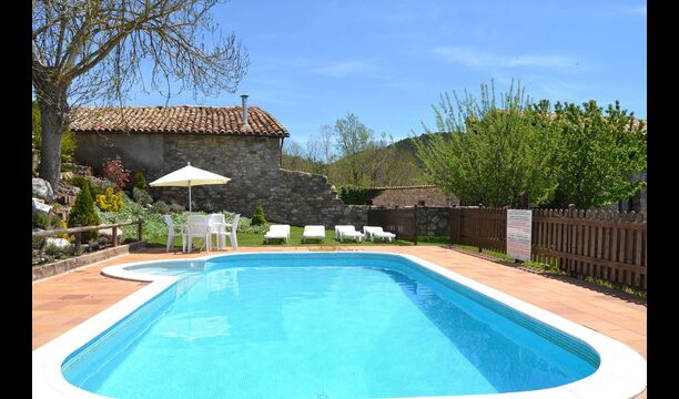En el exterior, el acogedor patio entre la casa y el segundo edificio, actualmente no utilizado, se ha utilizado para hacer una terraza al aire libre con barbacoa, que suele ser el lugar preferido en las cálidas noches catalanas. Además, hay acceso a la zona de la piscina con la piscina de 8 x 4 metros y con tumbonas donde podrá relajarse al sol y disfrutar de la vista a la montaña. La casa es perfecta para familias con niños pequeños, ya que el área de la piscina está cercada y la piscina tiene escalones romanos, por lo que los más pequeños pueden entrar, poco a poco.