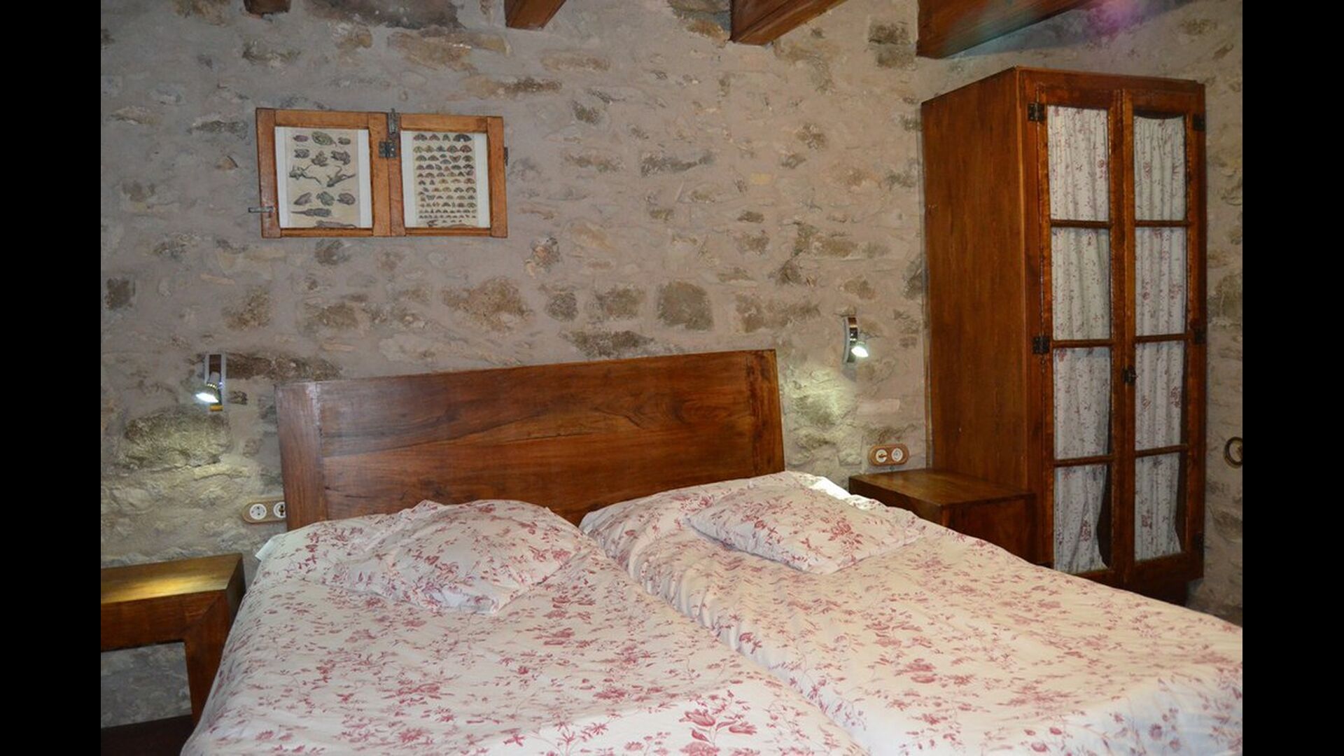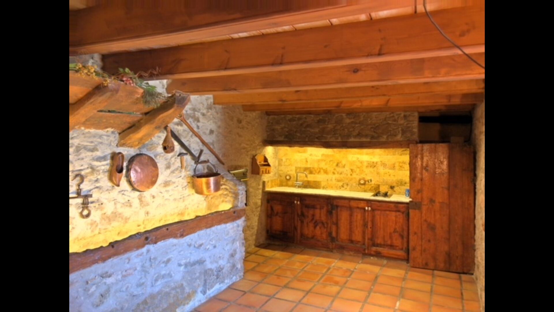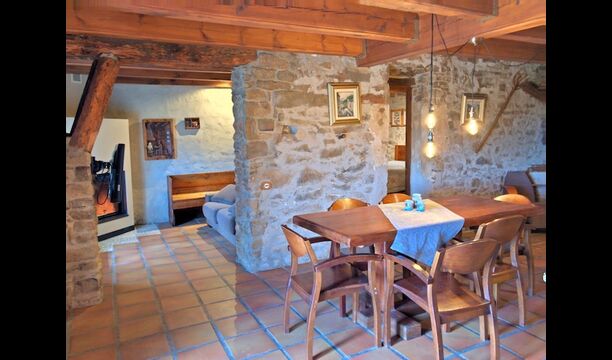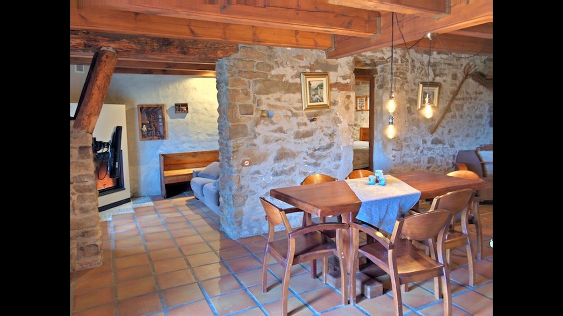 Este apartamento tiene un tamaño de 100 m2. En general, está organizado de manera muy auténtica, y está claro, que existe un gran respeto por los materiales y estructuras originales. Hay muchos pequeños detalles que dan un verdadero ambiente catalán. El apartamento tiene una pequeña y acogedora sala de estar con chimenea y TV, donde puedes leer un libro dentro de las sombras. Además de esto, hay un pequeño y agradable comedor con una hermosa mesa de madera. Finalmente hay una cocina con horno, lavavajillas y otras cosas. El apartamento tiene su propio patio exterior, donde puede sentarse a la sombra cuando hace demasiado calor bajo el sol. Aquí se puede disfrutar del aire fresco de la montaña y el ambiente tranquilo. Lo mejor del apartamento son casi las impresionantes vistas que se pueden disfrutar en todas las direcciones. Puedes, especialmente en las horas de la tarde, experimentar una calma maravillosa que es única en las montañas.