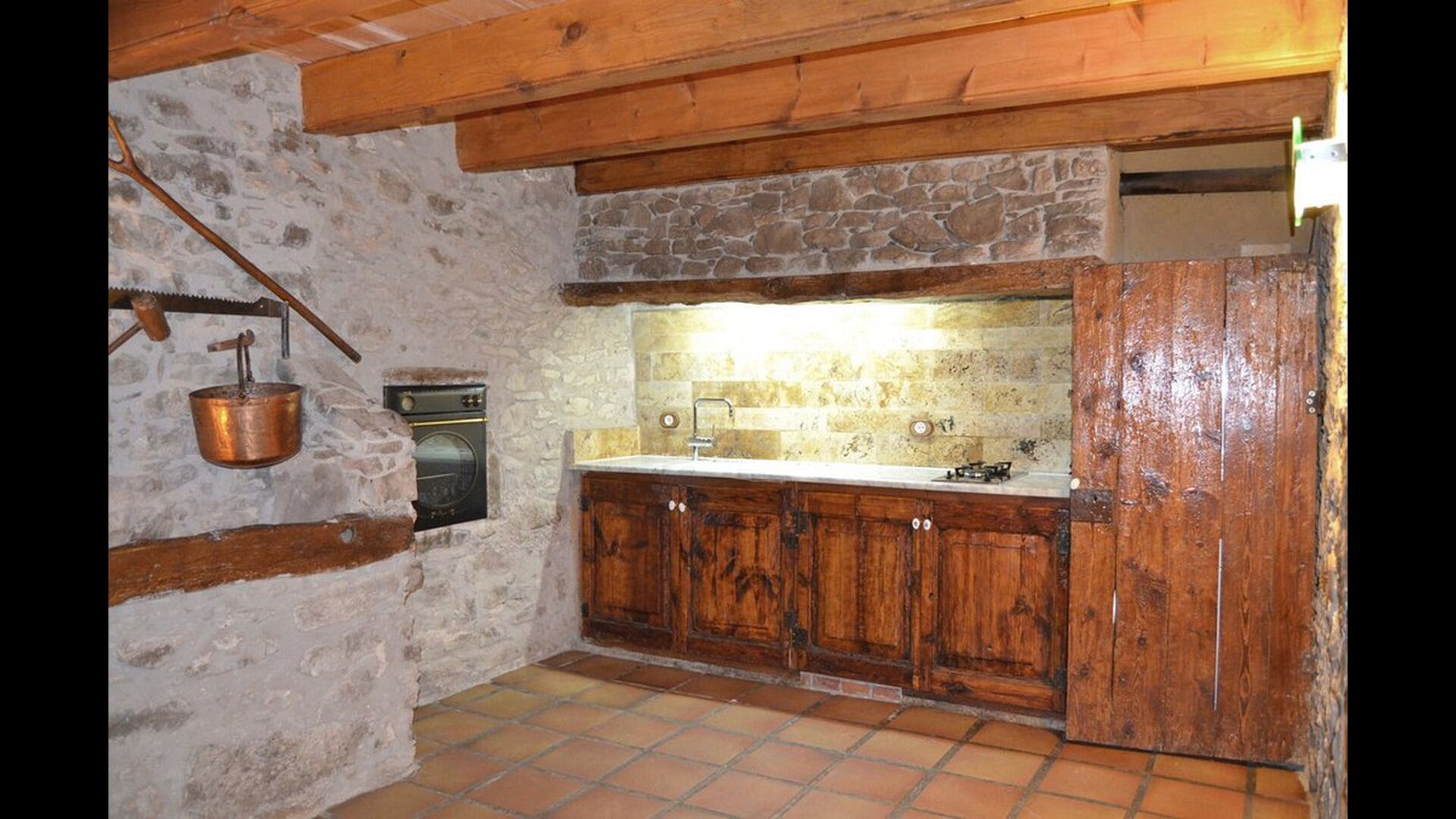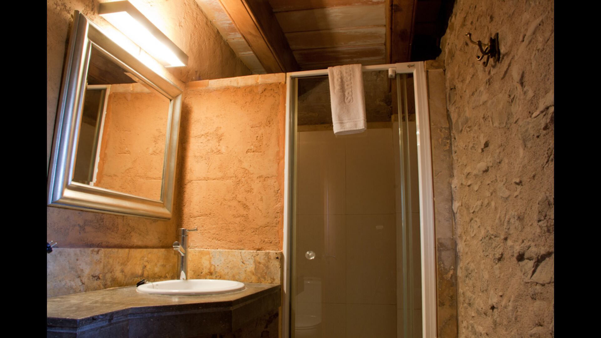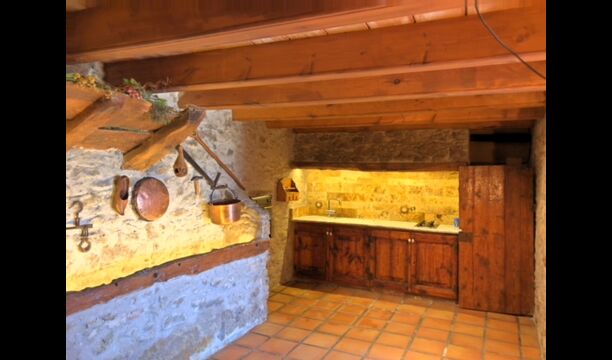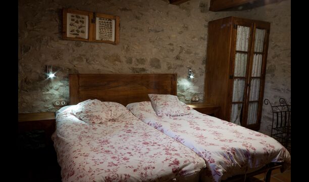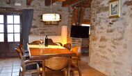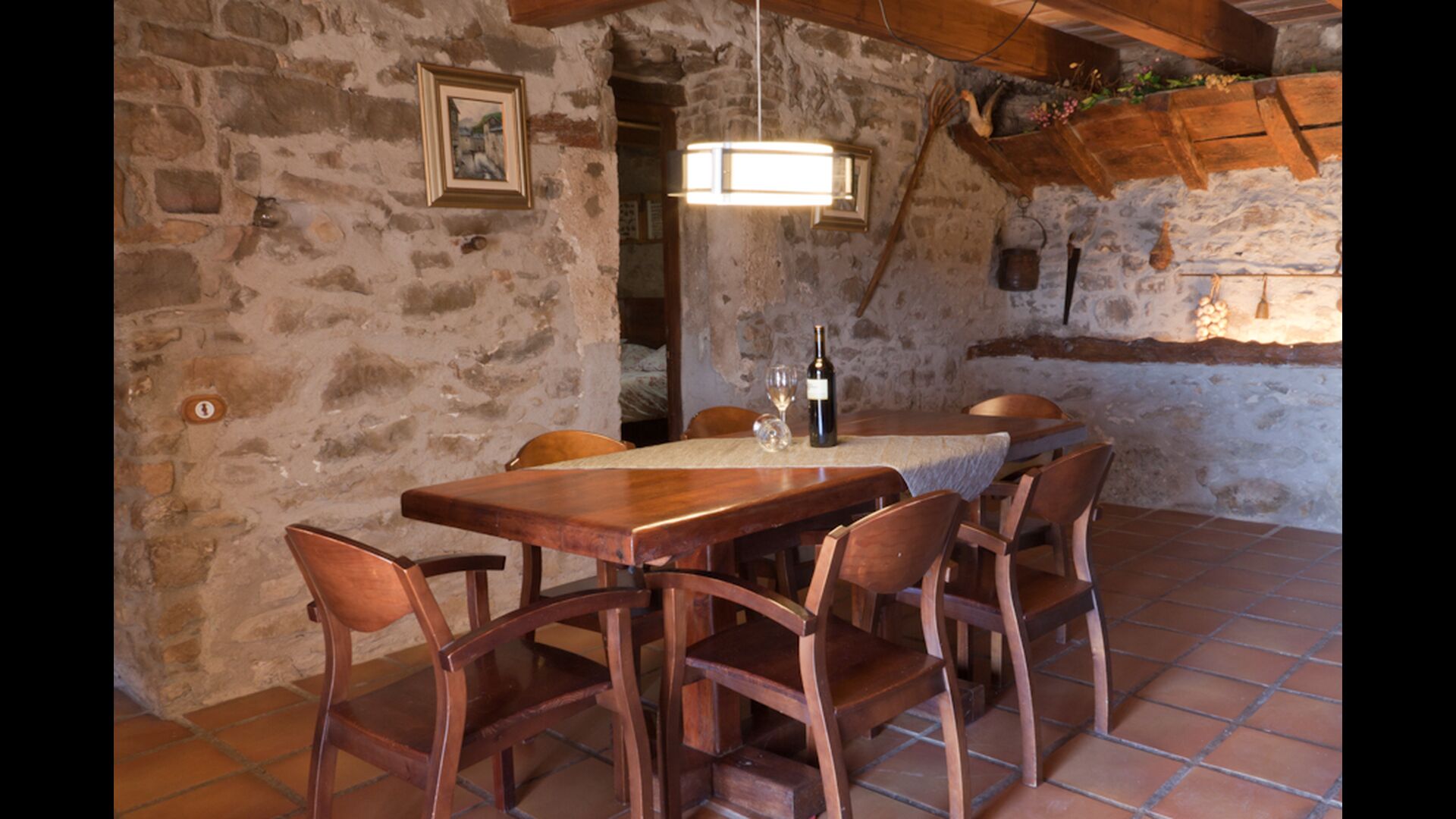 Este apartamento tiene un tamaño de 100 m2. En general, está organizado de manera muy auténtica, y está claro, que existe un gran respeto por los materiales y estructuras originales. Hay muchos pequeños detalles que dan un verdadero ambiente catalán. El apartamento tiene una pequeña y acogedora sala de estar con chimenea y TV, donde puedes leer un libro dentro de las sombras. Además de esto, hay un pequeño y agradable comedor con una hermosa mesa de madera. Finalmente hay una cocina con horno, lavavajillas y otras cosas. El apartamento tiene su propio patio exterior, donde puede sentarse a la sombra cuando hace demasiado calor bajo el sol. Aquí se puede disfrutar del aire fresco de la montaña y el ambiente tranquilo. Lo mejor del apartamento son casi las impresionantes vistas que se pueden disfrutar en todas las direcciones. Puedes, especialmente en las horas de la tarde, experimentar una calma maravillosa que es única en las montañas.