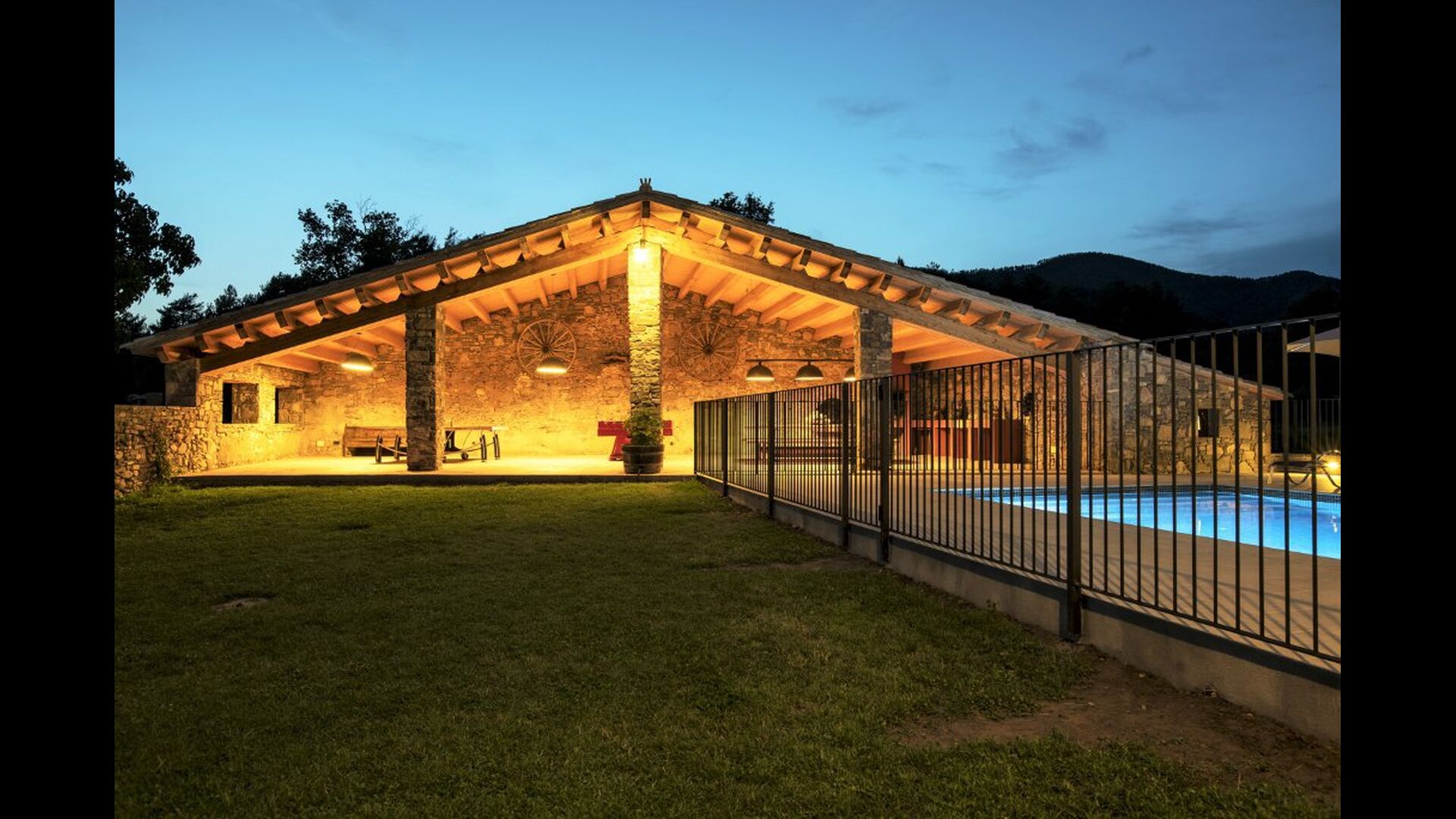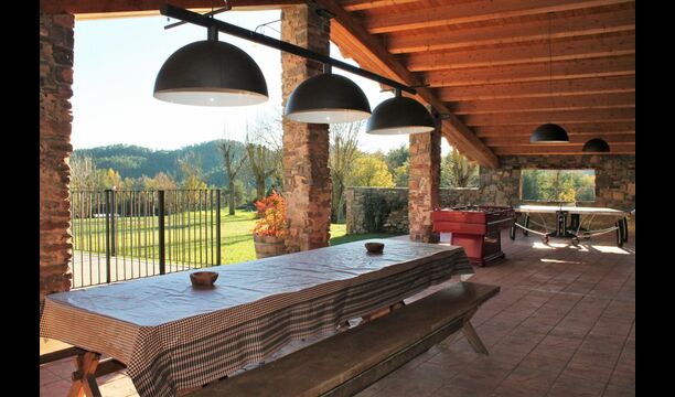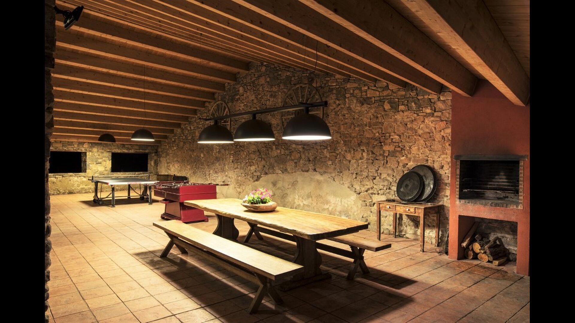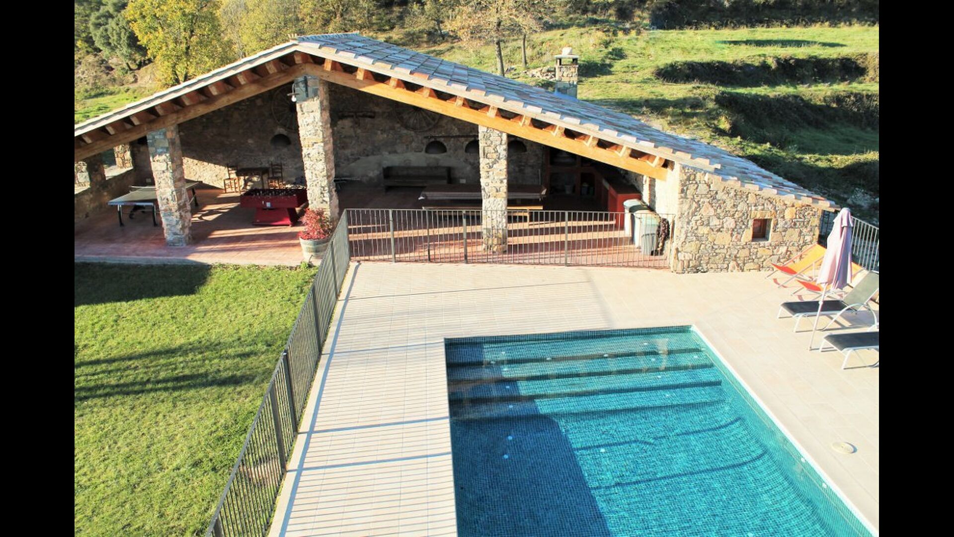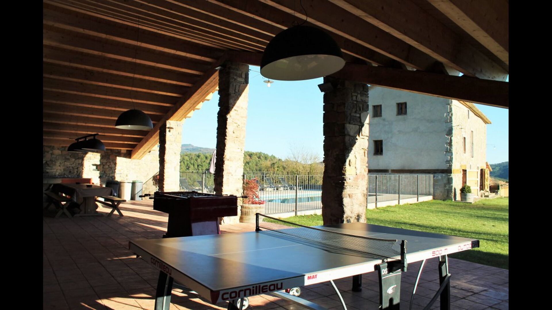 Al final de la piscina, hay una terraza cubierta con barbacoa, zona de comedor, billar y futbolín, un gran lugar para disfrutar de las cálidas noches de verano.
