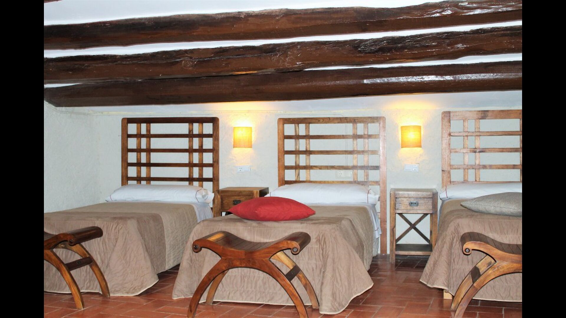 Todas las habitaciones de la casa de vacaciones se encuentran en el primer piso. Hay en total seis habitaciones espaciosas. Hay tres habitaciones dobles, dos con camas dobles y una con dos camas individuales. Luego hay dos habitaciones triples, cada una con una cama doble y una cama individual. Finalmente, hay un amplio dormitorio con capacidad para hasta 7 personas, con TV de pantalla plana y bonitas vistas al jardín.