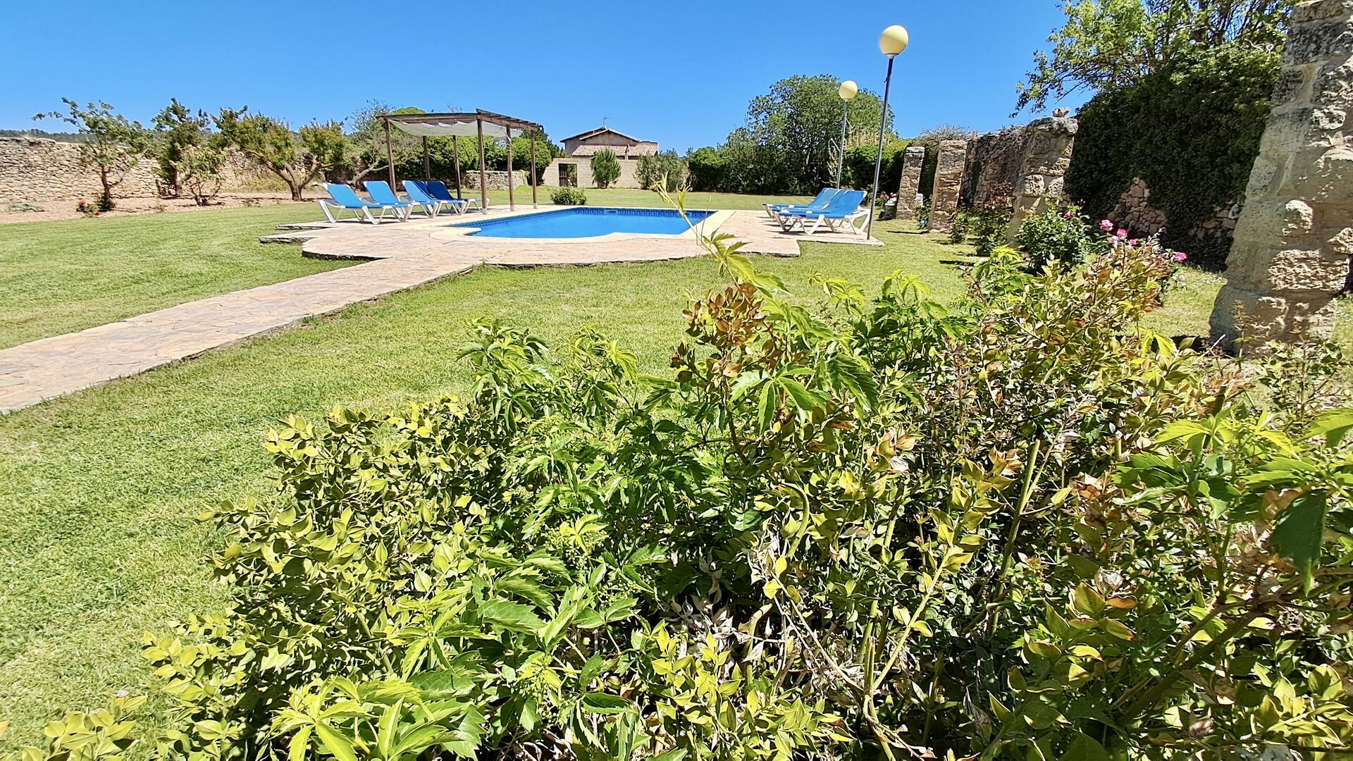 Muy bonito jardín con una gran piscina (50 m2).