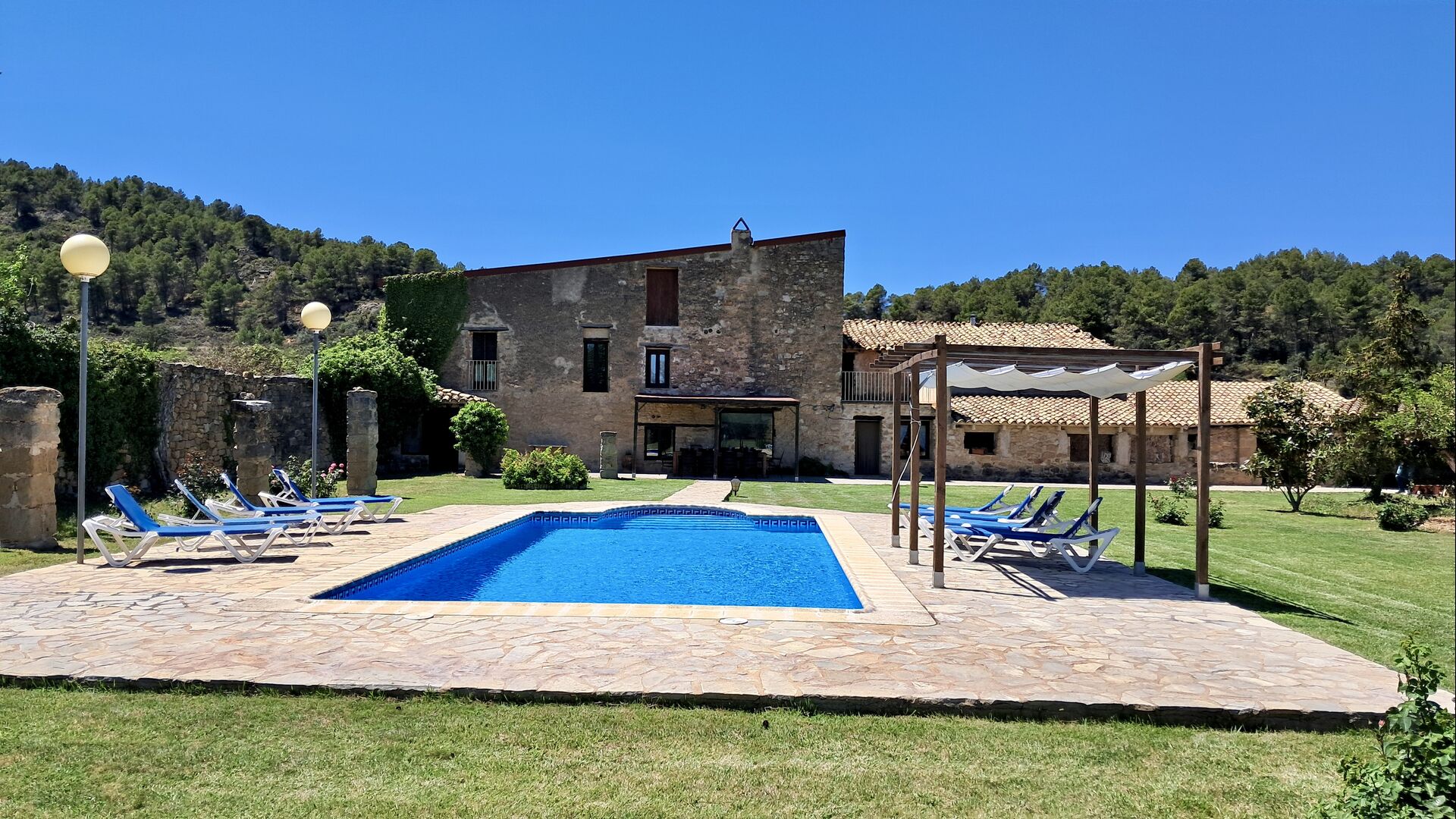 Mas de Rei Pedro es una auténtica casa de vacaciones catalana para 11 + 2 personas, muy adecuada para familias o grupos grandes o múltiples. La casa tiene un hermoso jardín con una gran piscina de 50 m2 y una barbacoa al aire libre y una mesa de billar techada. La casa posee además 5 dormitorios y una terraza en el primer piso. Desde la terraza tendrá una vista maravillosa del jardín y la acogedora ciudad de Horta de Sant Joan, que se encuentra a poca distancia de Mas de Rei Pedro. Pablo Picasso vivió en la pequeña ciudad y, entre otras cosas, pintó su primera pintura cubista aquí (un museo Picasso muy bueno y único también se encuentra en la ciudad).