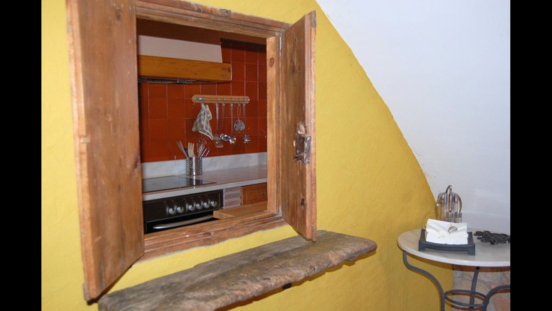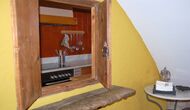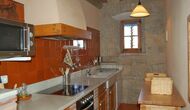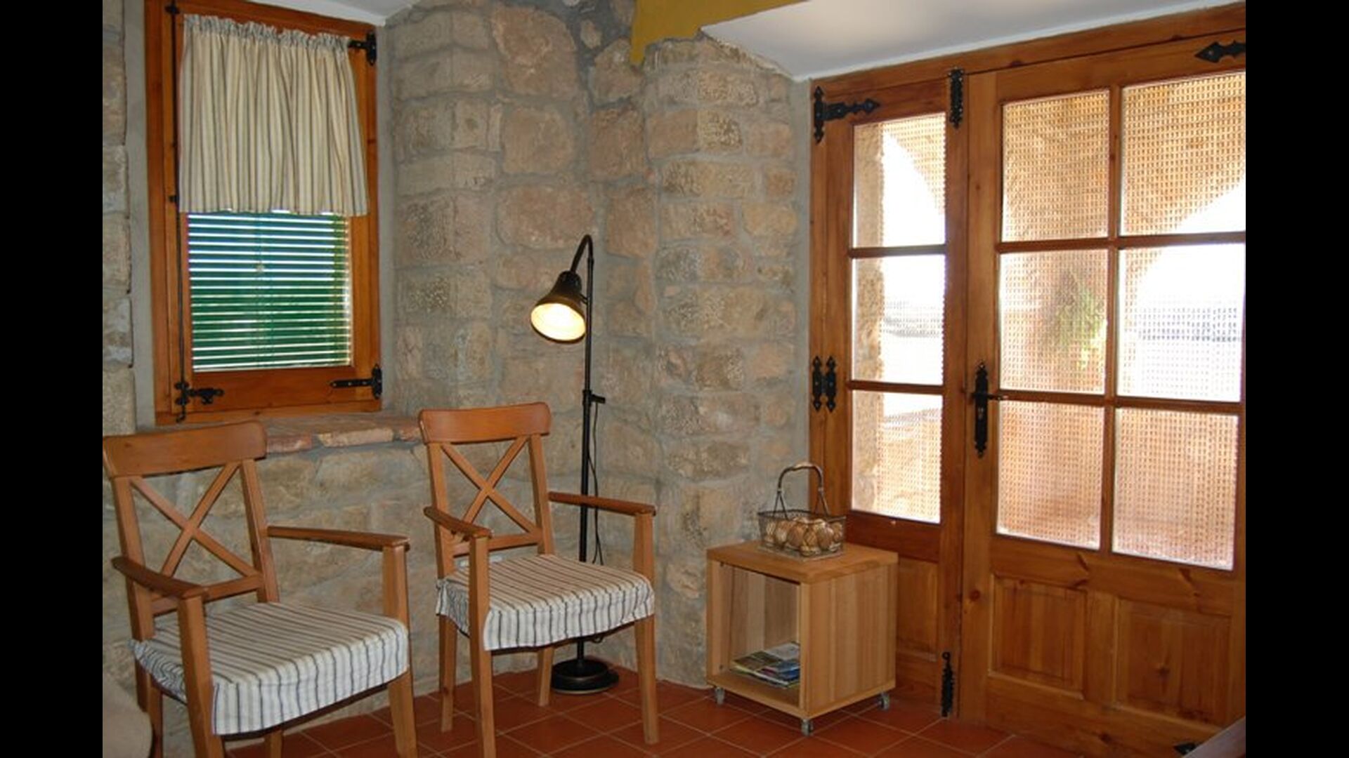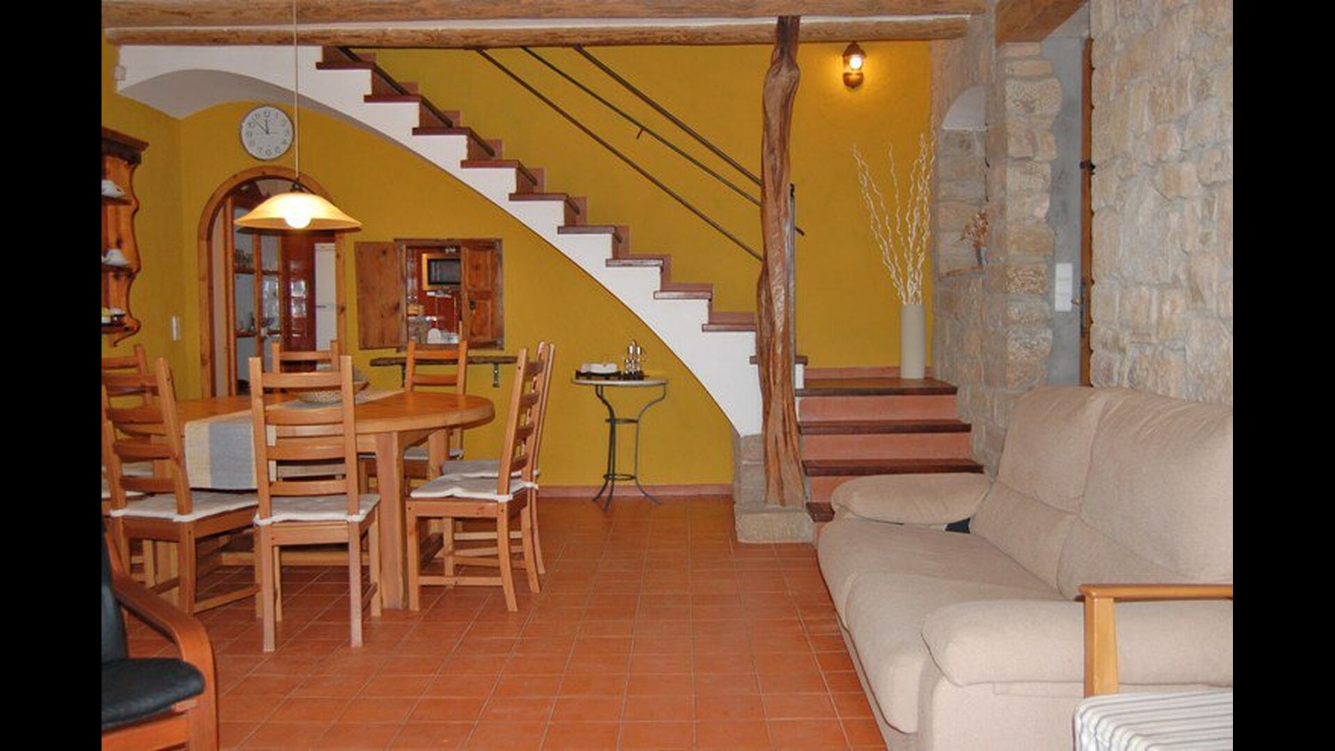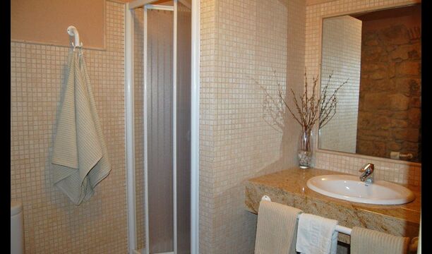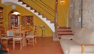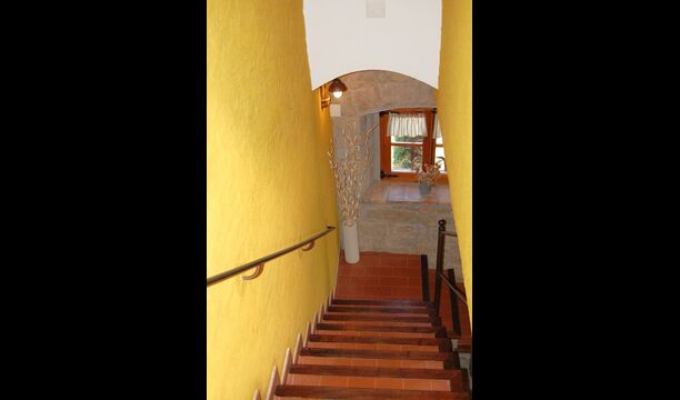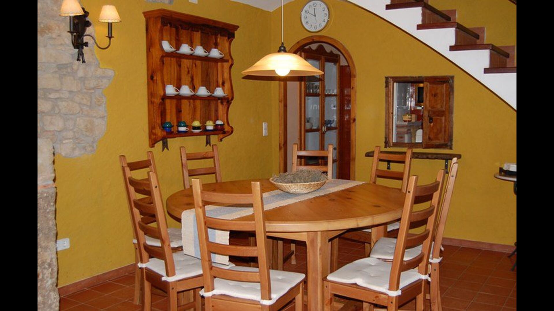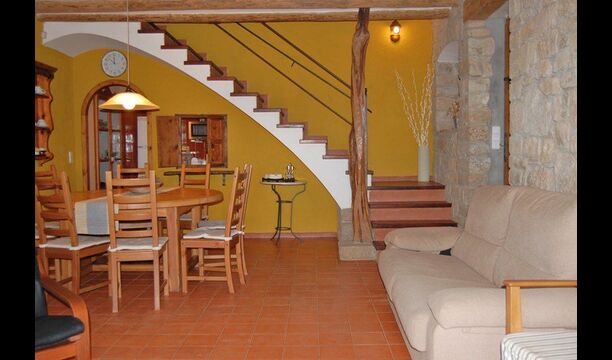 Las instalaciones interiores son maravillosas como las del aire libre. La entrada a la casa, que se encuentra en el primer piso, consta de una gran escalera principal. Lo primero que encontramos es la puerta principal de la cocina que tiene todas las herramientas necesarias: microondas, lavavajillas, horno y mucho más. Está muy bien decorado y ha conservado una pequeña ventana auténtica desde la cocina hasta la sala de estar. Esta sala dispone de chimenea y televisor. También hay una mesa de comedor y un sofá suave. Además, en la planta baja hay una entrada a una hermosa terraza con muebles. Disfruta de las impresionantes vistas espectaculares