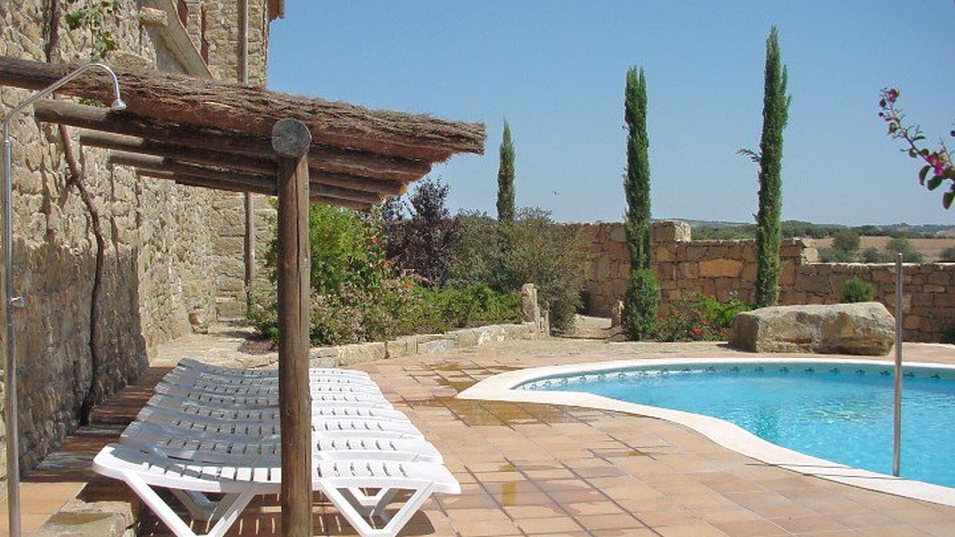 Una de las mayores ventajas de Casa Aguelas es su área al aire libre. En primer lugar, está la fantástica área de la piscina: los bordes de la piscina son ondulados y con un tamaño de unos 32 m2, es la joya de relajación perfecta, tanto para adultos como para niños: será un éxito entre el joven. Es probable que pasen muchas horas en el agua, y mientras tanto, los padres pueden disfrutar del calor en las tumbonas bajo la hermosa cubierta. Sin embargo, cuando hace un poco de calor, puede sumergirse en el agua de refrigeración en pocos segundos; no puede ser mejor. También hay una terraza con barbacoa en el jardín, donde puedes cocinar tu propia comida casera. Luego se puede disfrutar al aire libre en las horas cálidas de la tarde, lo que se puede recomendar claramente.