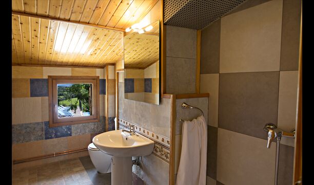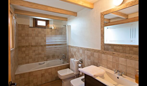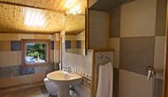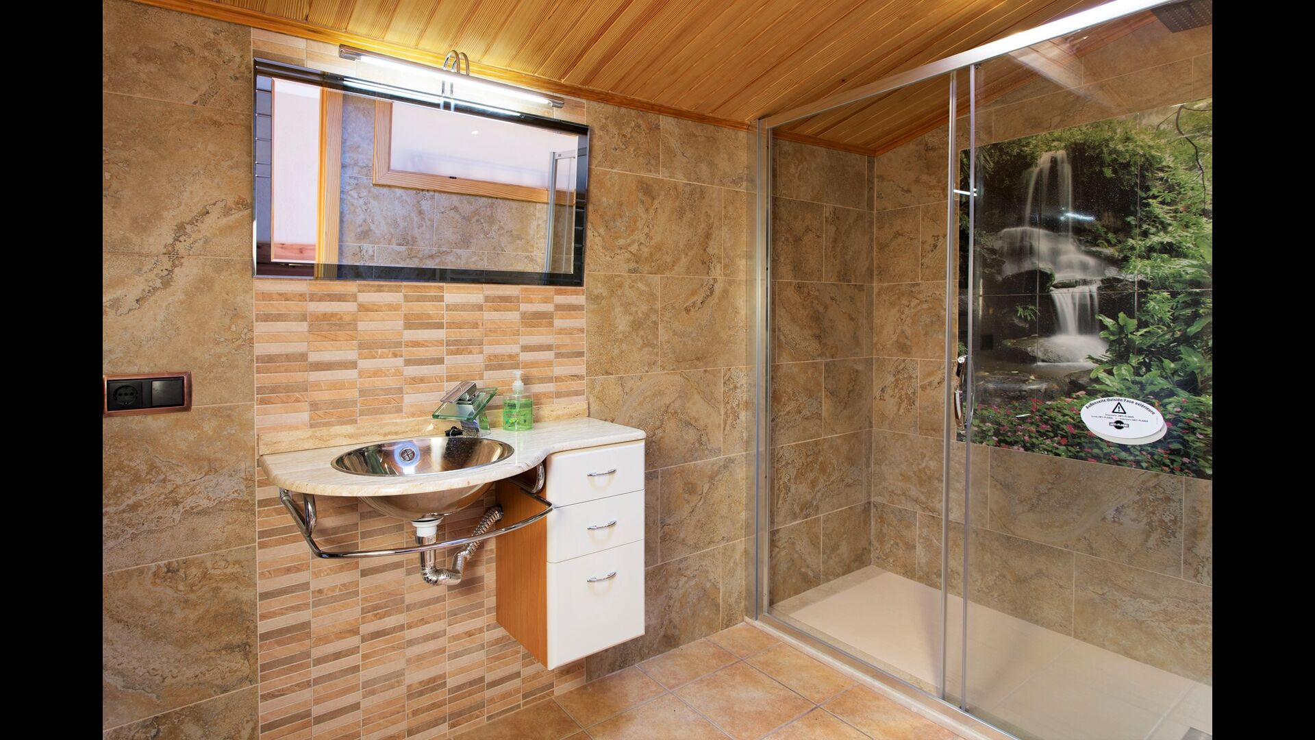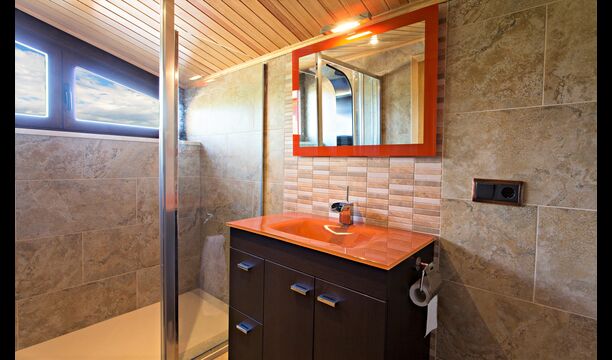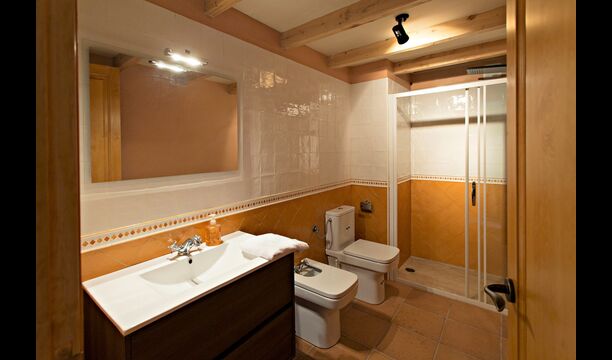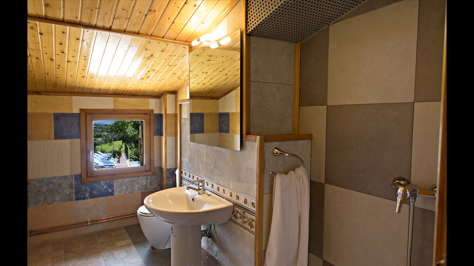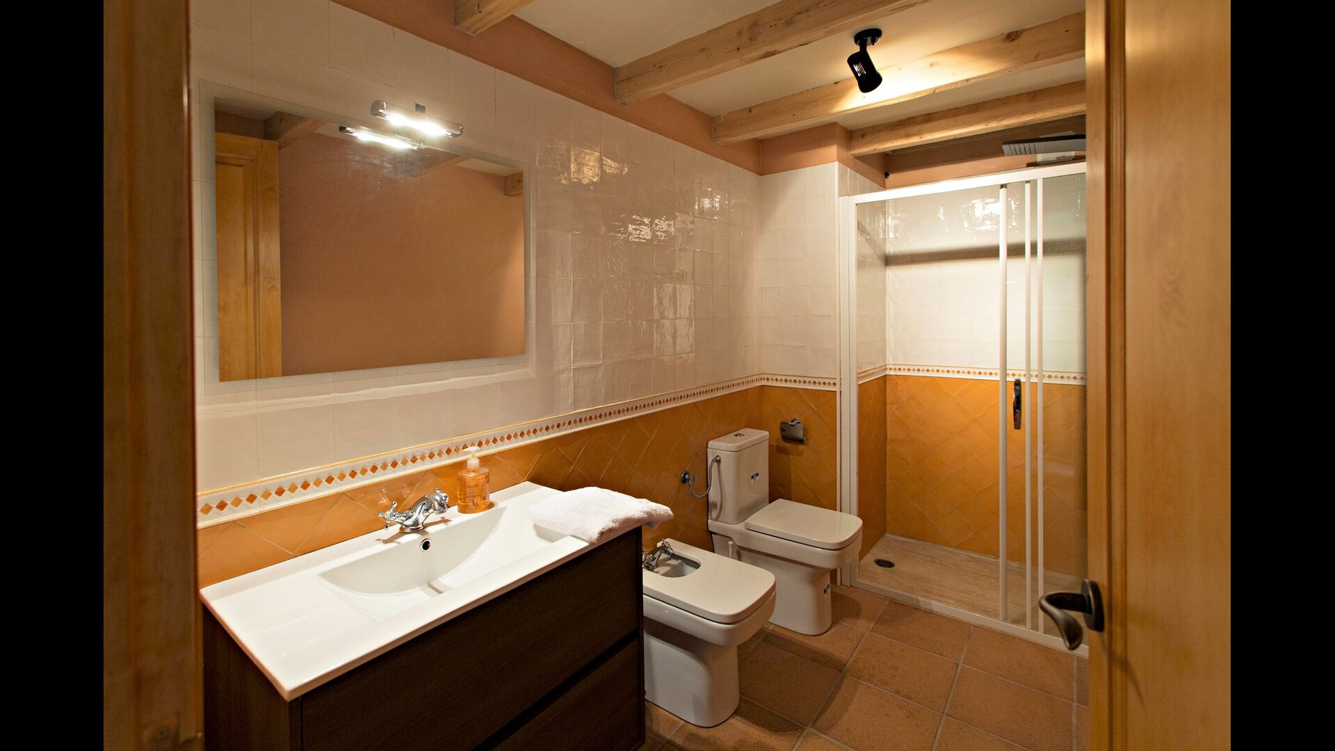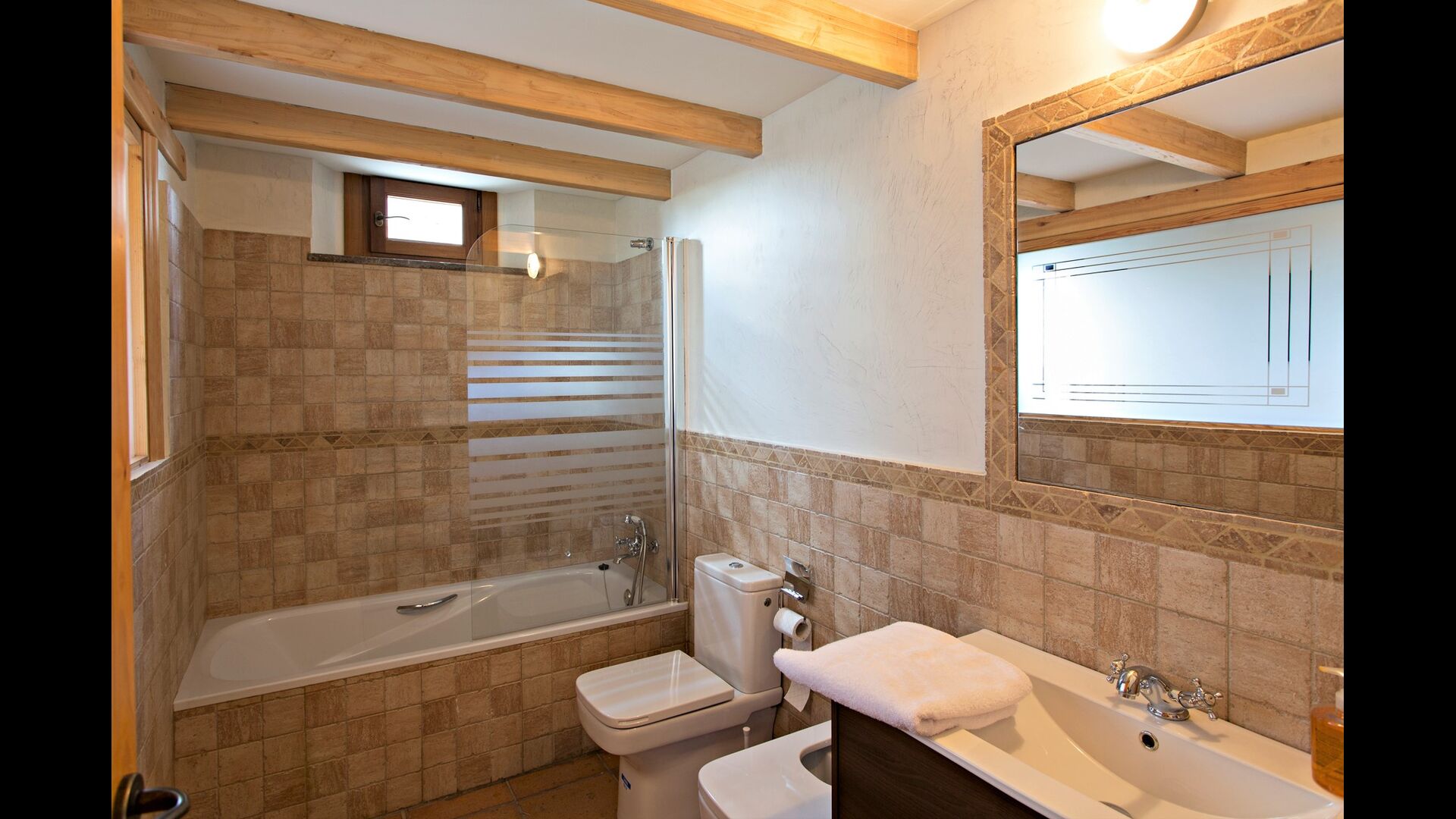 La casa de dos plantas nos ofrece 5 habitaciones dobles y 2 cuádruples (2 camas + 1 litera) . Todas ellas con Smart TV . 5 de las habitaciones son tipo suite (con baño) y 2 comparte un baño. La casa ofrece también un baño de día en la planta de abajo (adaptado para personas con movilidad reducida). Todos los baños de la casa están equipados con secador de pelo y las toallas.