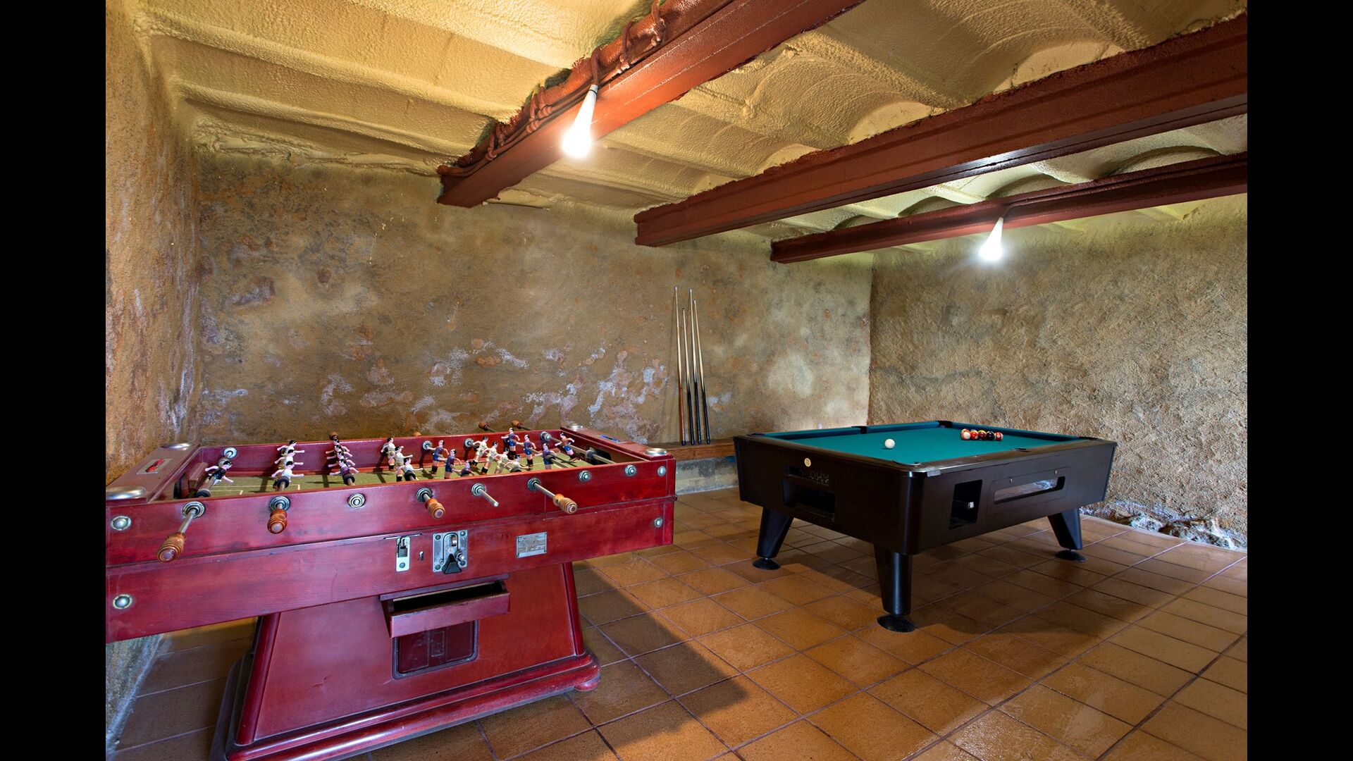 Junto a la casa, en varios edificios encontramos una sala de cine , una sala de juegos con billar, ping-pong, futbolín, juegos de mesa, y una con jacuzzi.