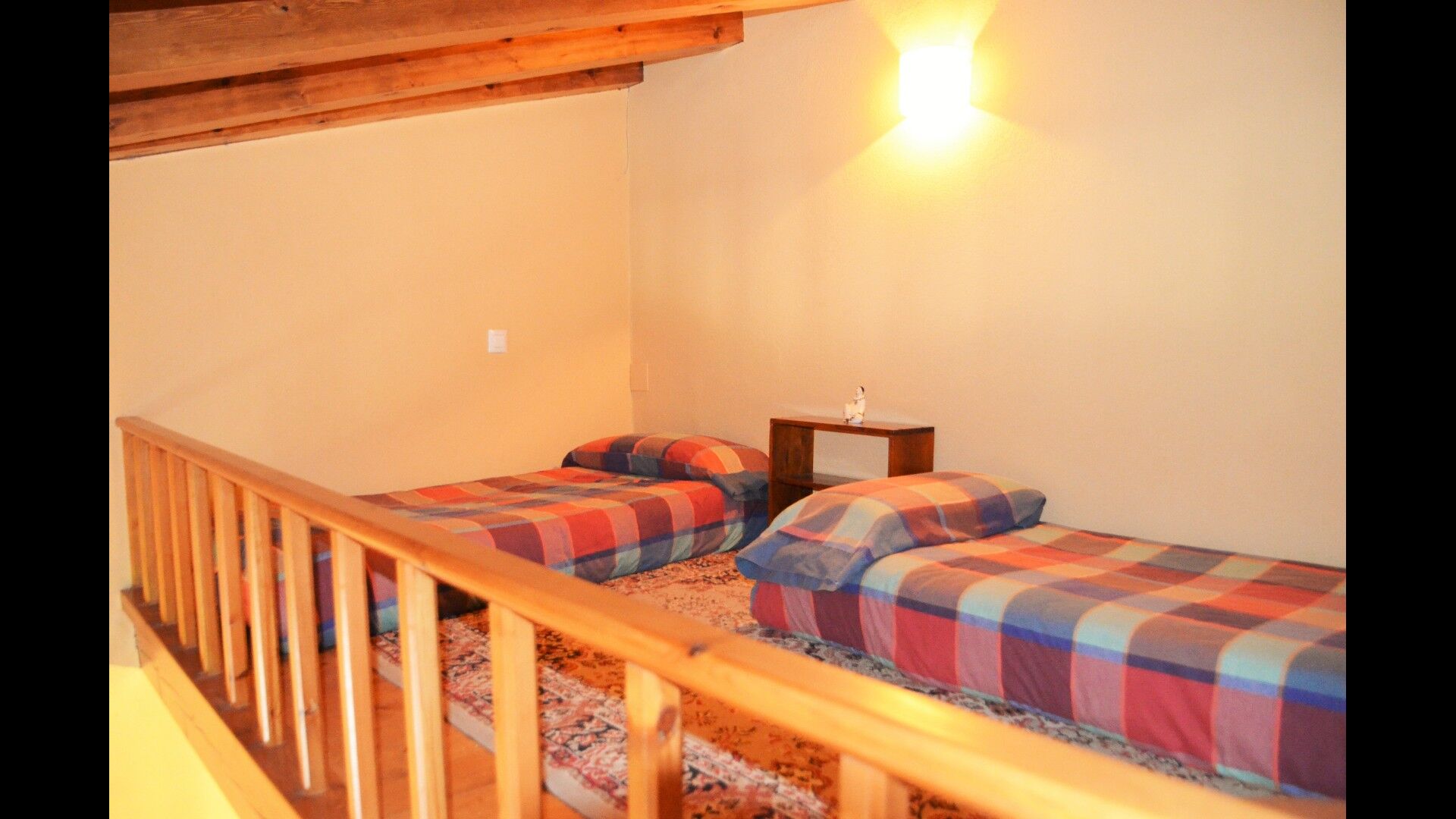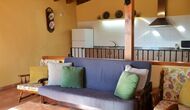 Can Soledad - Mestre 6 + 2P es el apartamento más grande de la propiedad con 85 m2. En este apartamento, hay una habitación doble con dos camas individuales y una habitación para cuatro personas con una cama doble y dos camas individuales. Las camas gemelas en la habitación grande están ubicadas en un acogedor loft, que es óptimo para que los niños duerman. También hay un baño espacioso. El salón tiene un cómodo sofá y un televisor con reproductor de DVD. Además, hay una mesa de comedor y un balcón francés desde donde se puede disfrutar de la vista panorámica. La cocina se encuentra justo detrás del sofá. El internet Wi-Fi cubre todo el departamento.