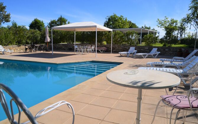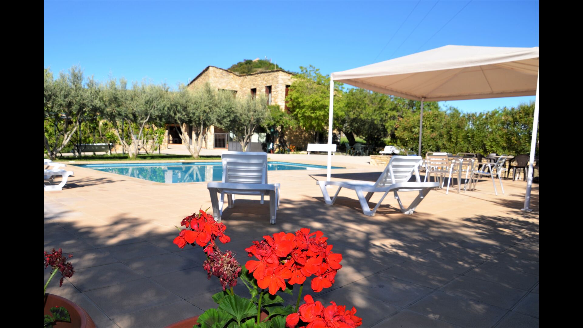 En el área común a las afueras de Can Soledad, se encuentra la gran piscina (6x10 metros), que no solo es ideal para nadar, sino también muy segura para los niños, ya que hay escalones romanos al final de la piscina, lo que significa que puede Entra a la piscina. Además, si no te gusta pasar un día junto a la piscina, sino que prefieres relajarte y leer tu libro, también puedes hacerlo: hay una encantadora sala de lectura. Además de la hermosa área de la piscina y la gran sala de lectura, la propiedad cuenta con varias áreas de terrazas diferentes donde la mayoría de ellas están cubiertas del sol, lo cual es muy agradable durante los días soleados.