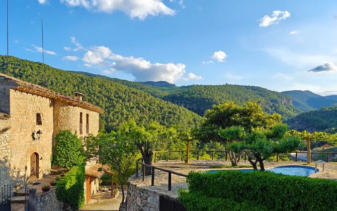 Can de Toriña es una impresionante masía catalana histórica del siglo X, situada en el hermoso paisaje montañoso de los Pirineos catalanes cerca del pueblo de Coll de Nargó, en la comarca del Alt Urgell. La casa ha sido cuidadosamente restaurada y combina la arquitectura tradicional pirenaica con el confort moderno, manteniendo al mismo tiempo su encanto original y su carácter histórico.