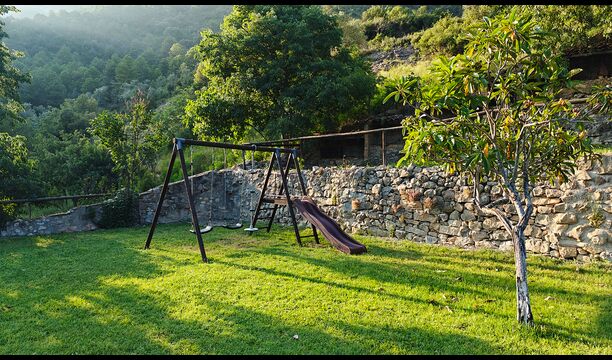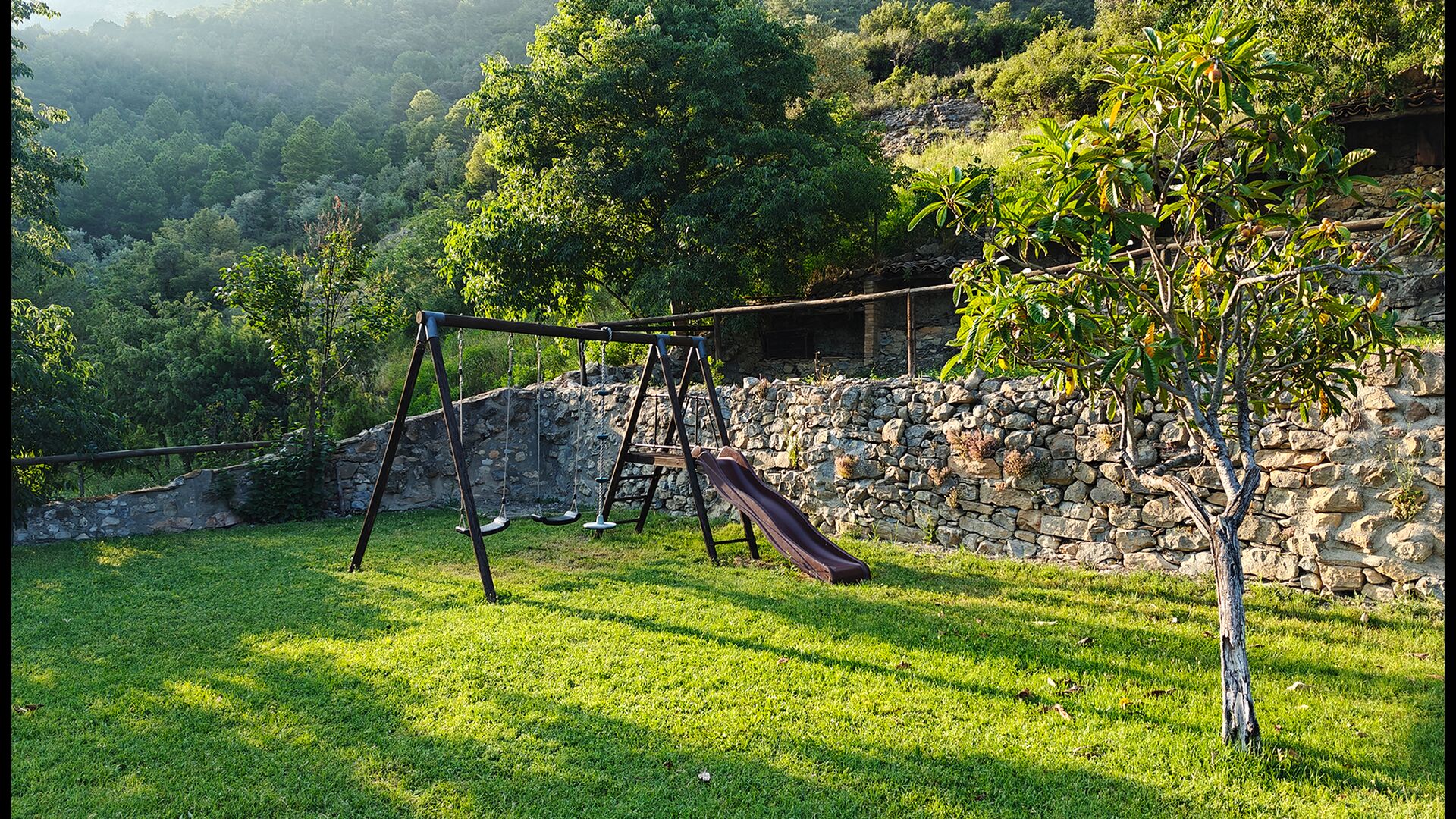 El espacio exterior de Can de Toriña está diseñado para el descanso y la vida al aire libre. Los huéspedes pueden disfrutar de un amplio jardín rodeado de vistas a las montañas, así como de varias terrazas y zonas de descanso a la sombra.