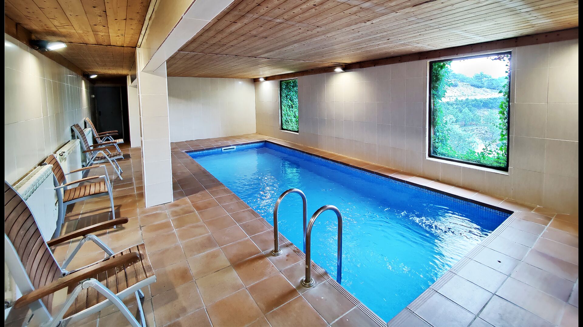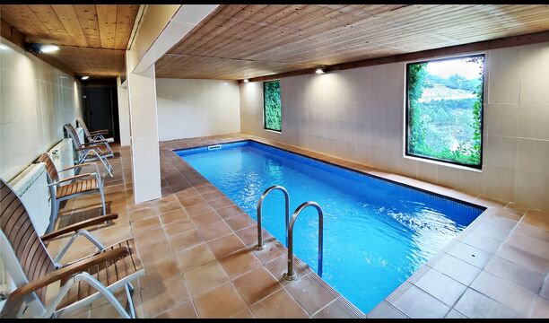 La propiedad incluye una piscina privada al aire libre con tumbonas y un jardín con columpios para niños. En un edificio adyacente los huéspedes también encontrarán una piscina interior climatizada y una terraza cubierta con barbacoa, lo que permite nadar y comer al aire libre durante todo el año.