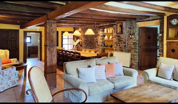 Can de Toriña ofrece amplios espacios interiores y exteriores rodeados de bosques y paisajes de montaña, lo que la convierte en un destino ideal para familias o grupos que desean disfrutar de la naturaleza, la historia y la tranquilidad de los Pirineos.